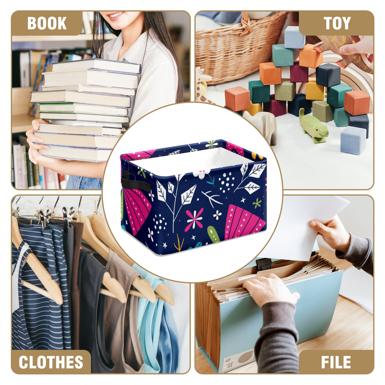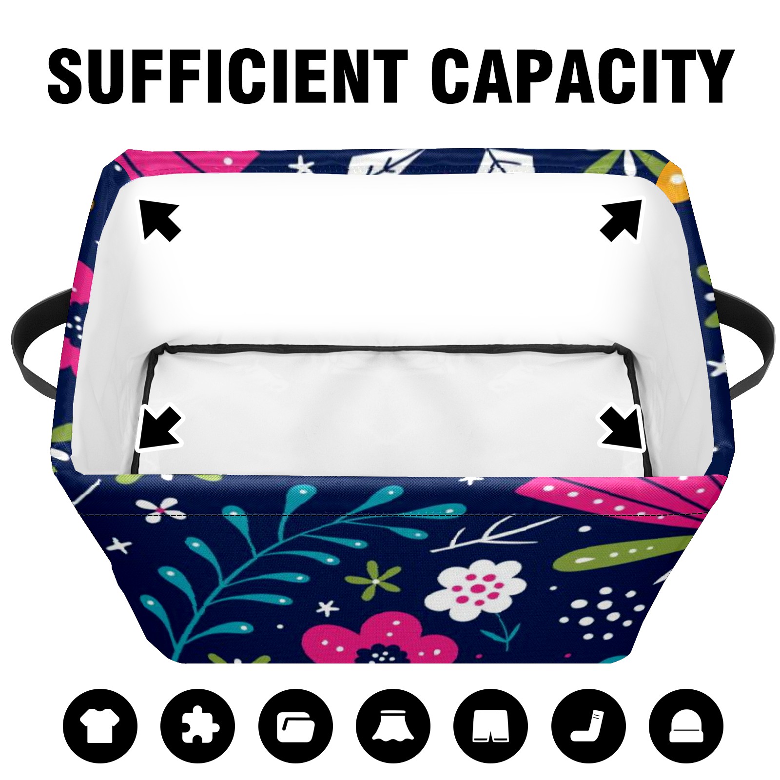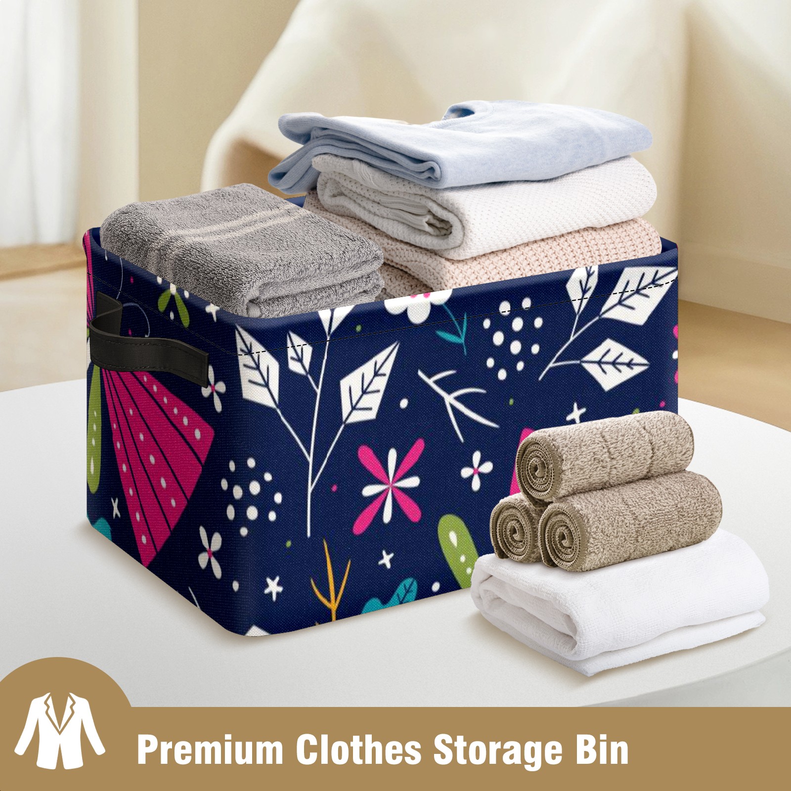 Collapsible 600D Oxford Storage Basket with Pink Butterfly Florals Pattern - Metal Frame 10"x14"x8" Reinforced Handles, Multi-Purpose Organizer