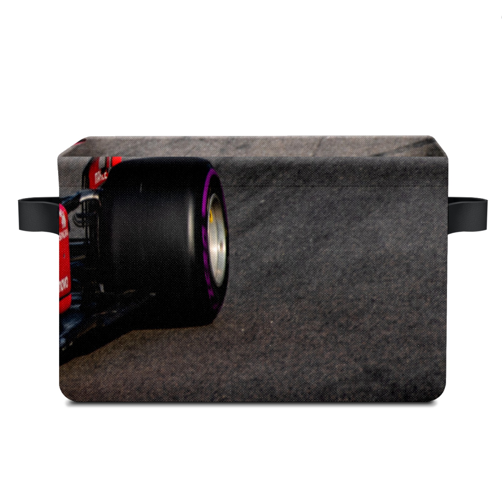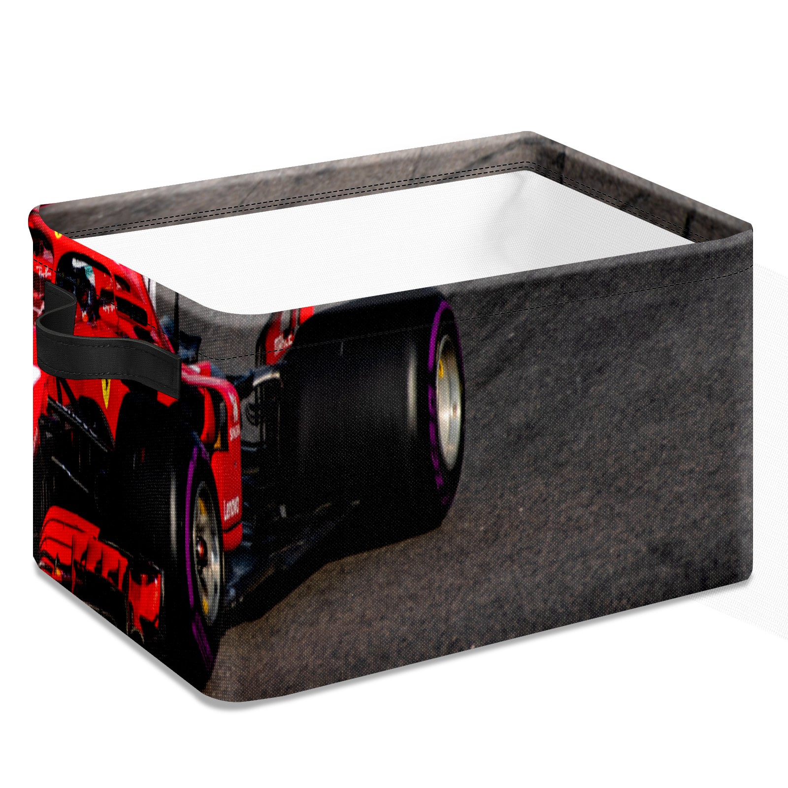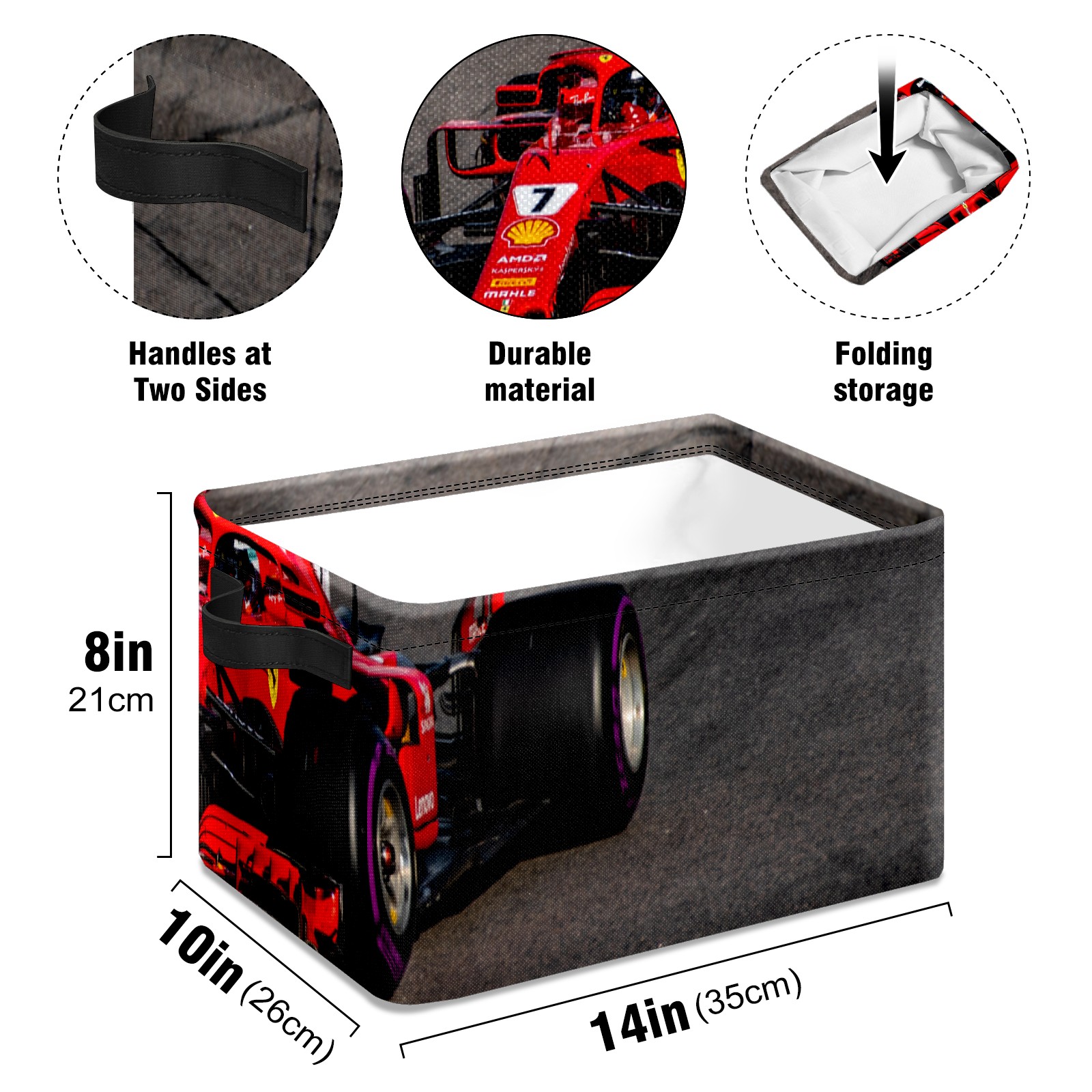 Collapsible 600D Oxford Storage Basket with Race Car - Metal Frame 10"x14"x8" Reinforced Handles, Multi-Purpose Organizer