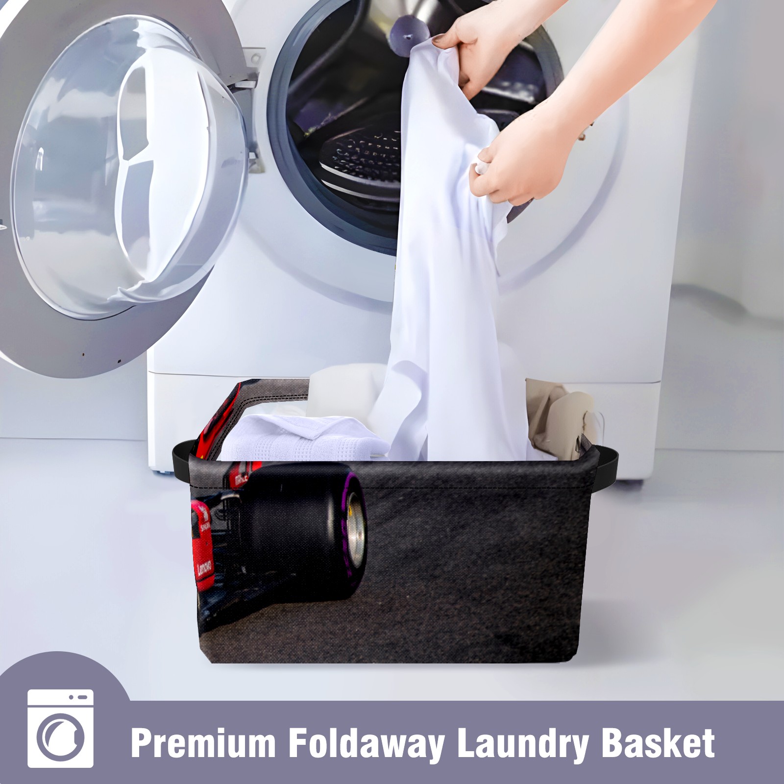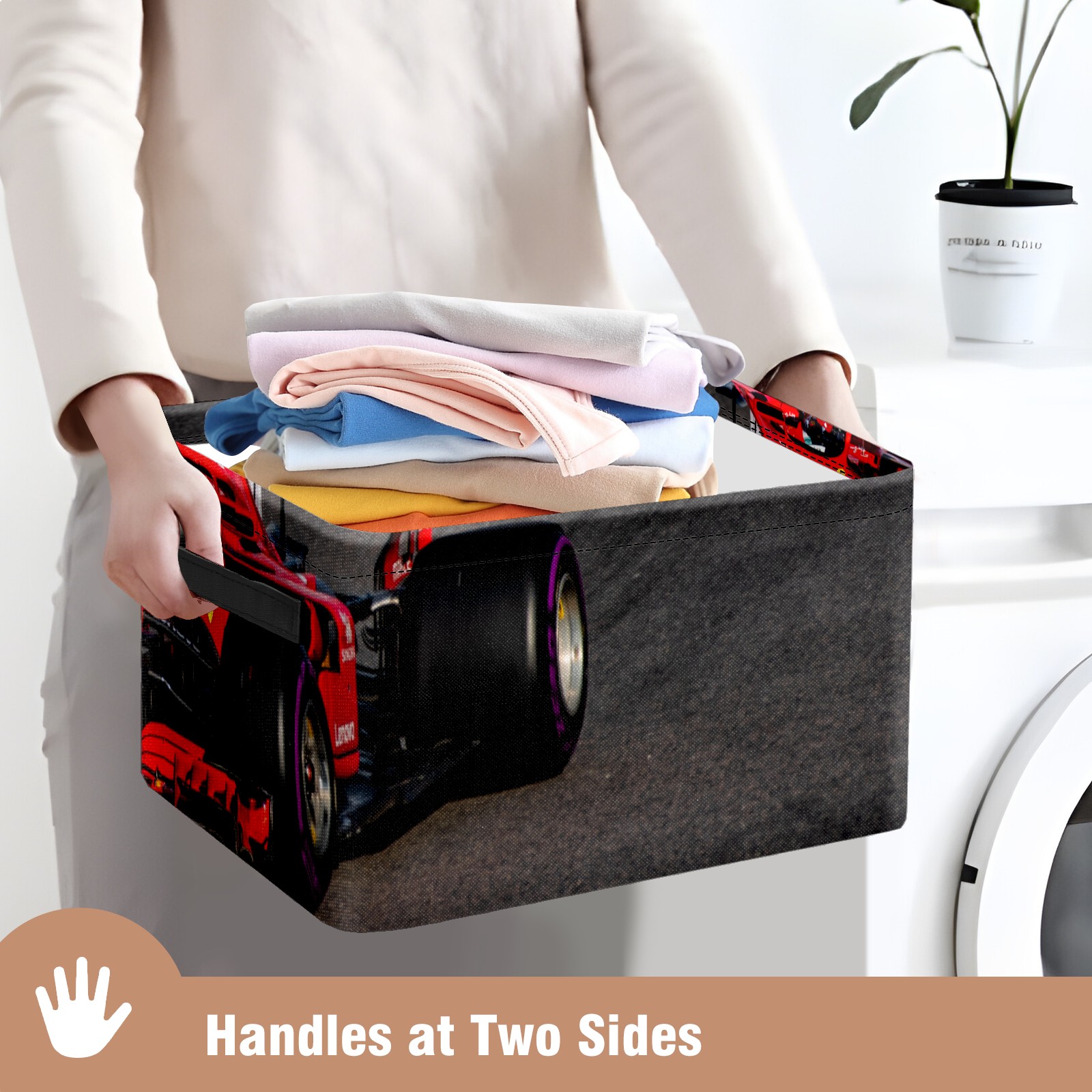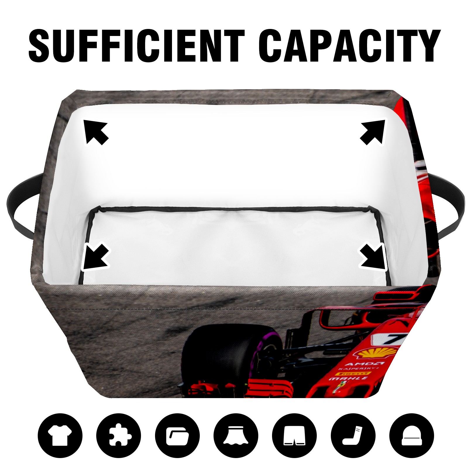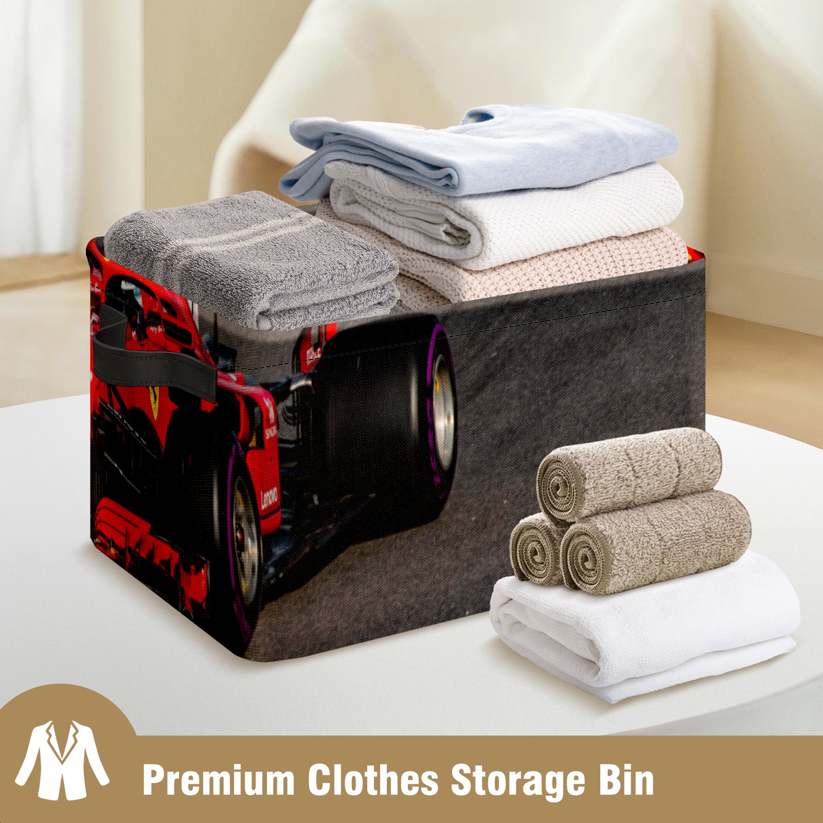 Collapsible 600D Oxford Storage Basket with Race Car - Metal Frame 10"x14"x8" Reinforced Handles, Multi-Purpose Organizer