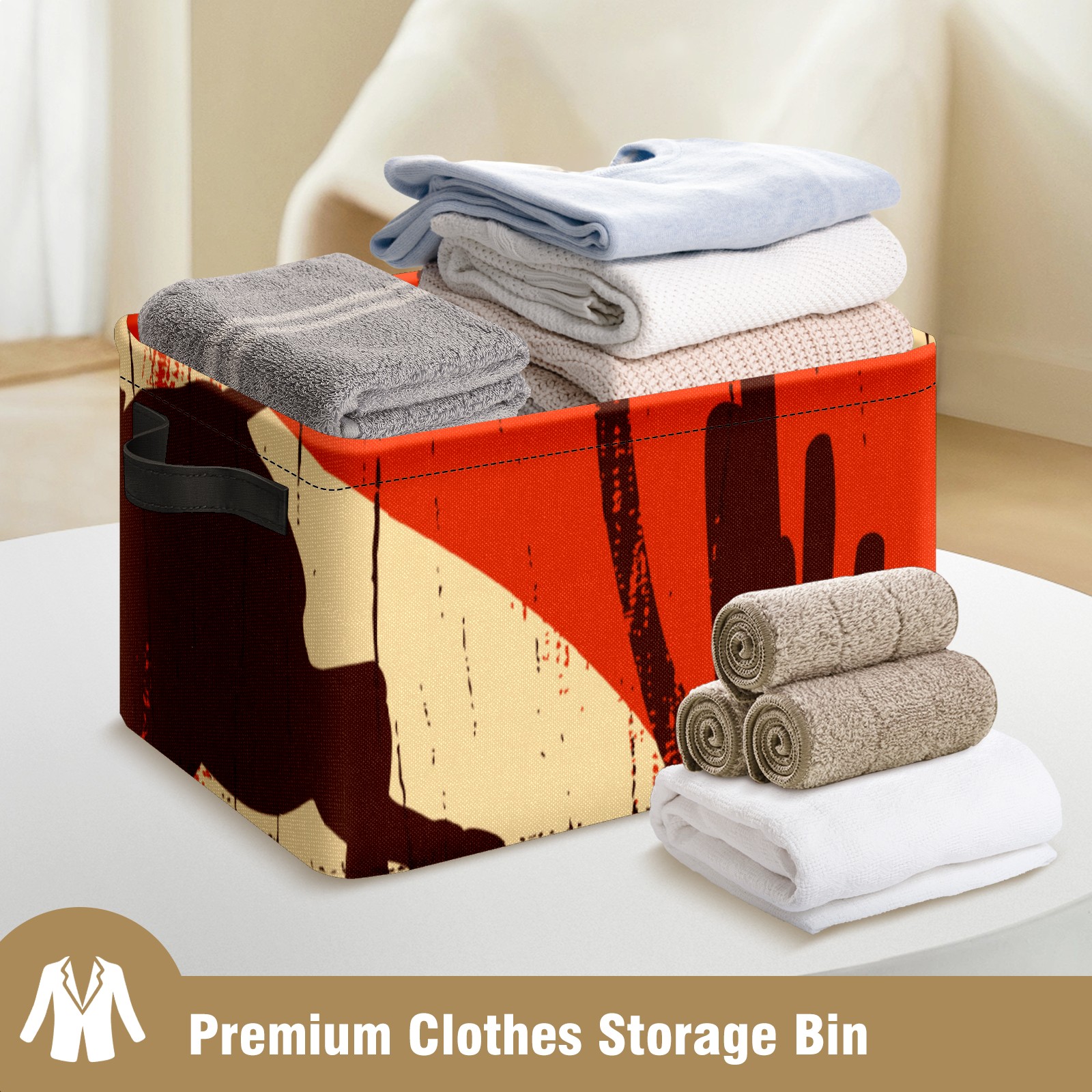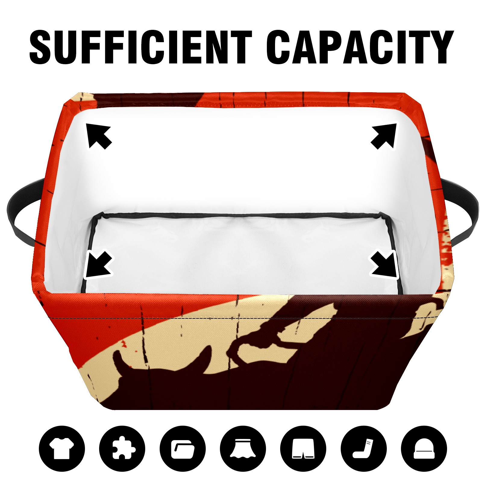 Collapsible 600D Oxford Storage Basket with Wild West RODEO Cowboy - Metal Frame 10"x14"x8" Reinforced Handles, Multi-Purpose Organizer