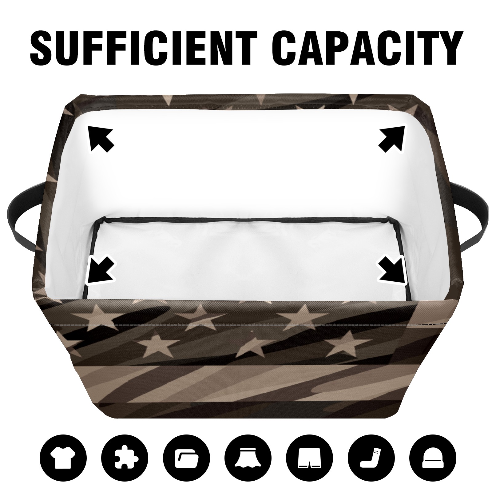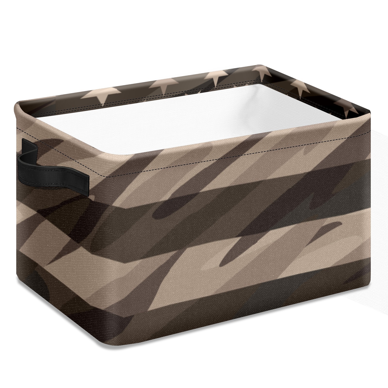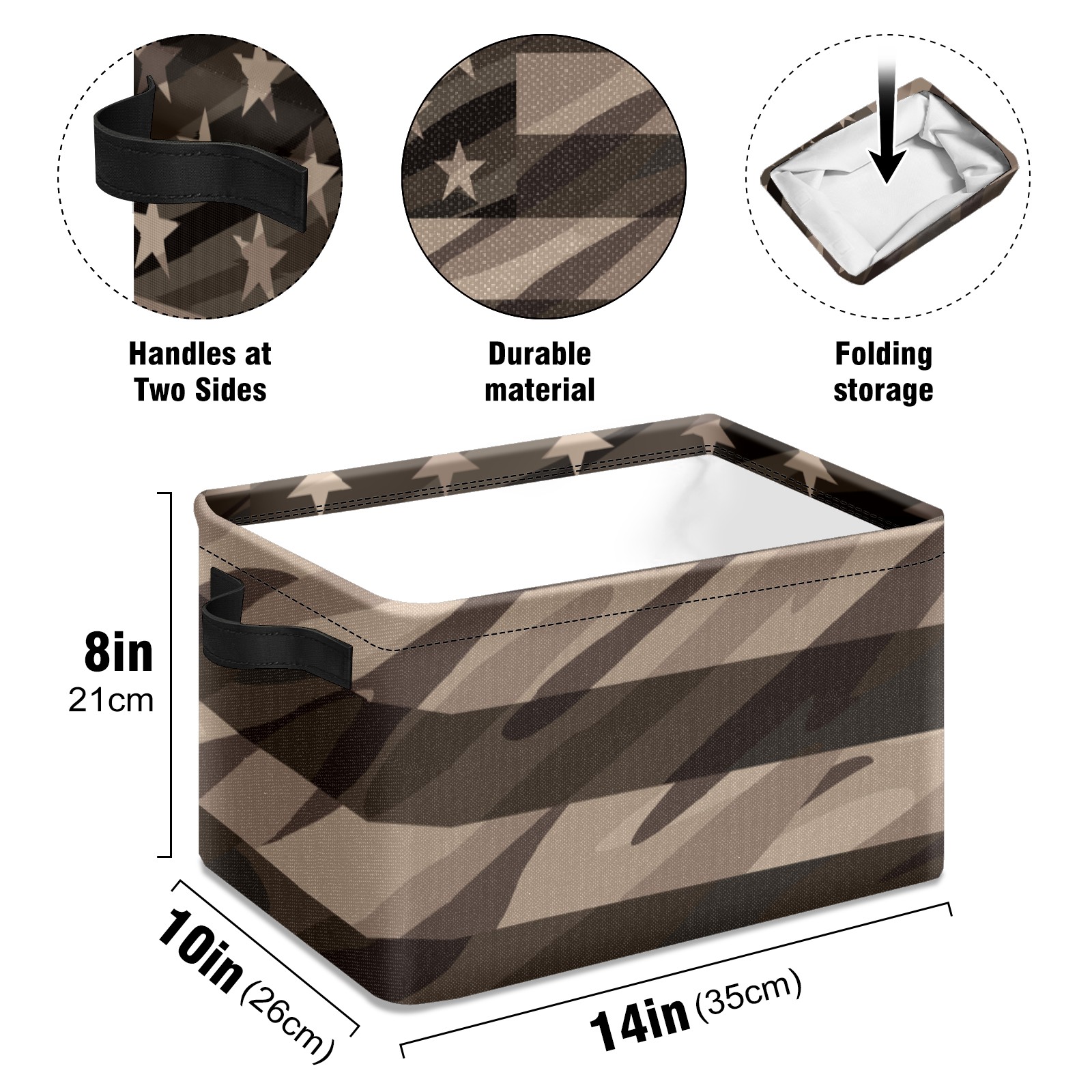 Collapsible 600D Oxford Storage Basket with Rustic American Flag - Metal Frame 10"x14"x8" Reinforced Handles, Multi-Purpose Organizer