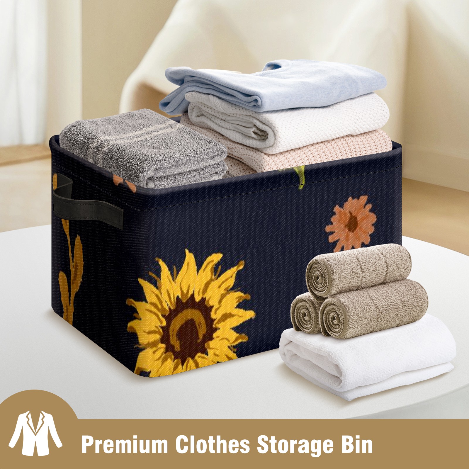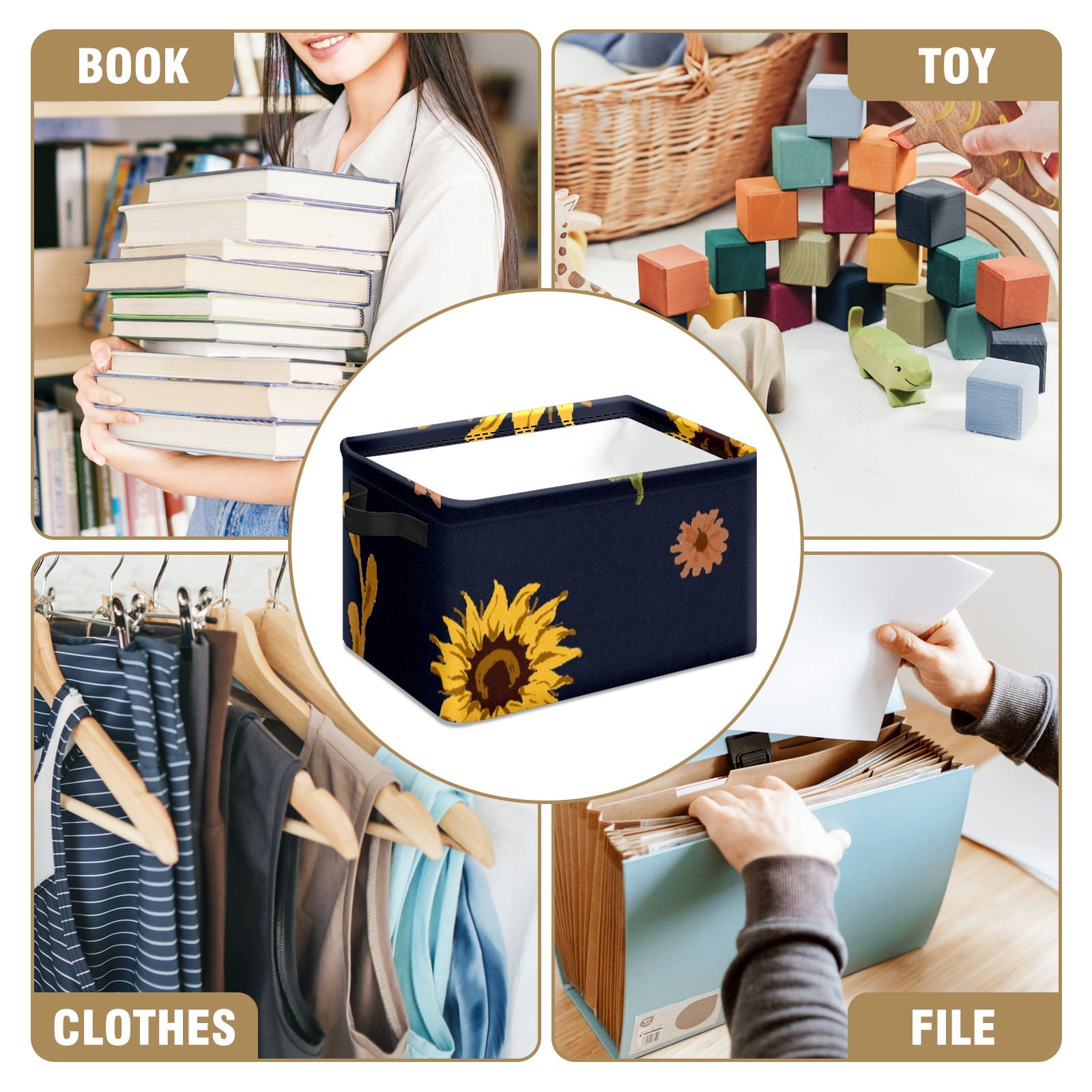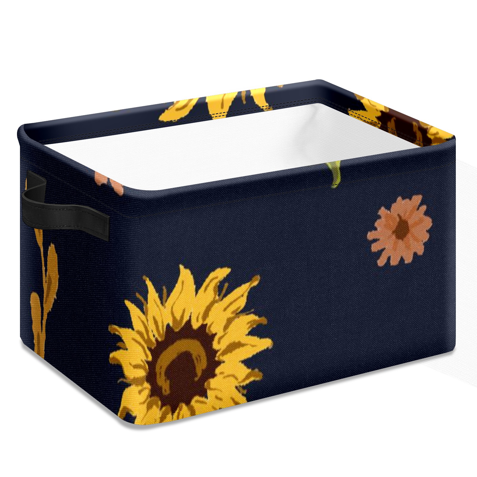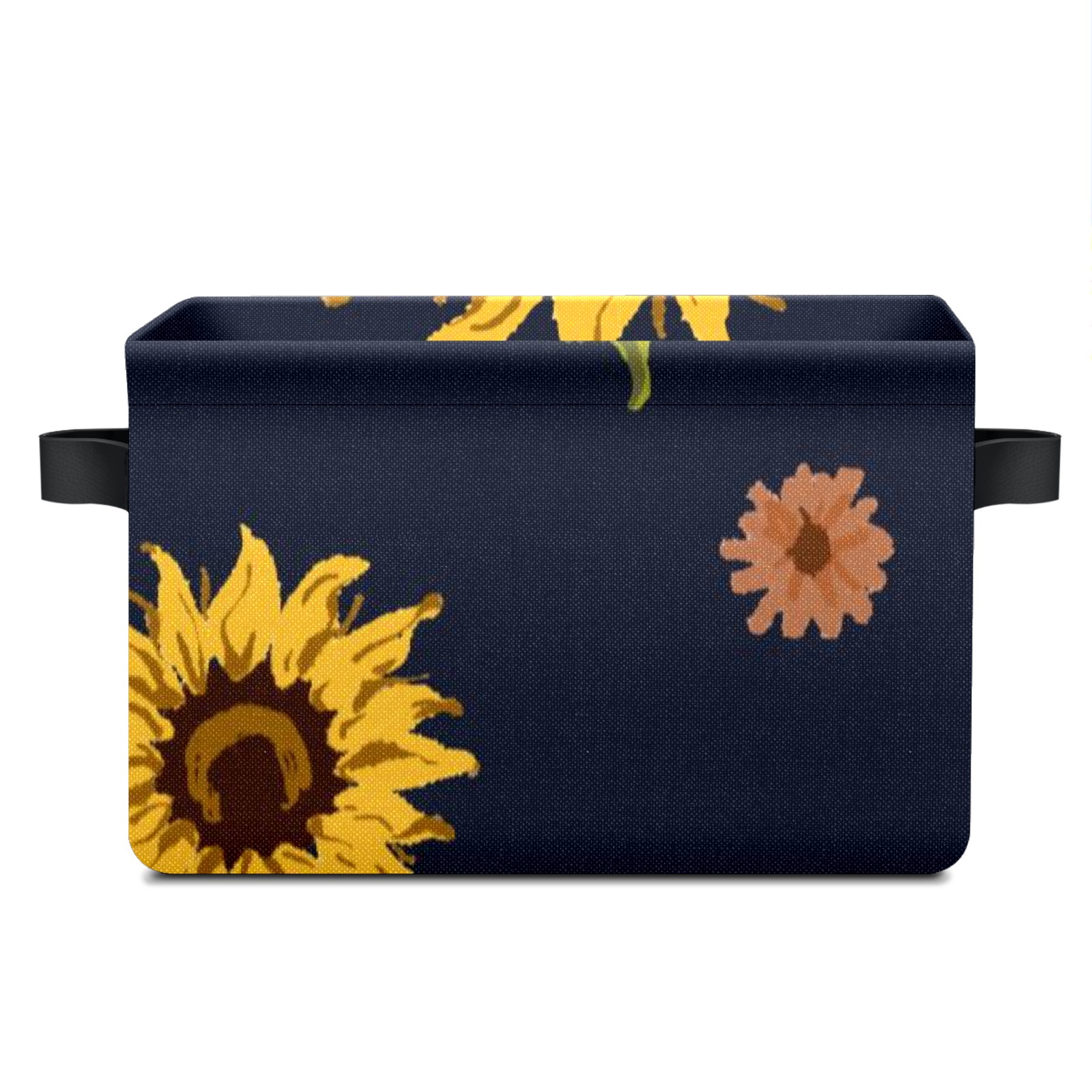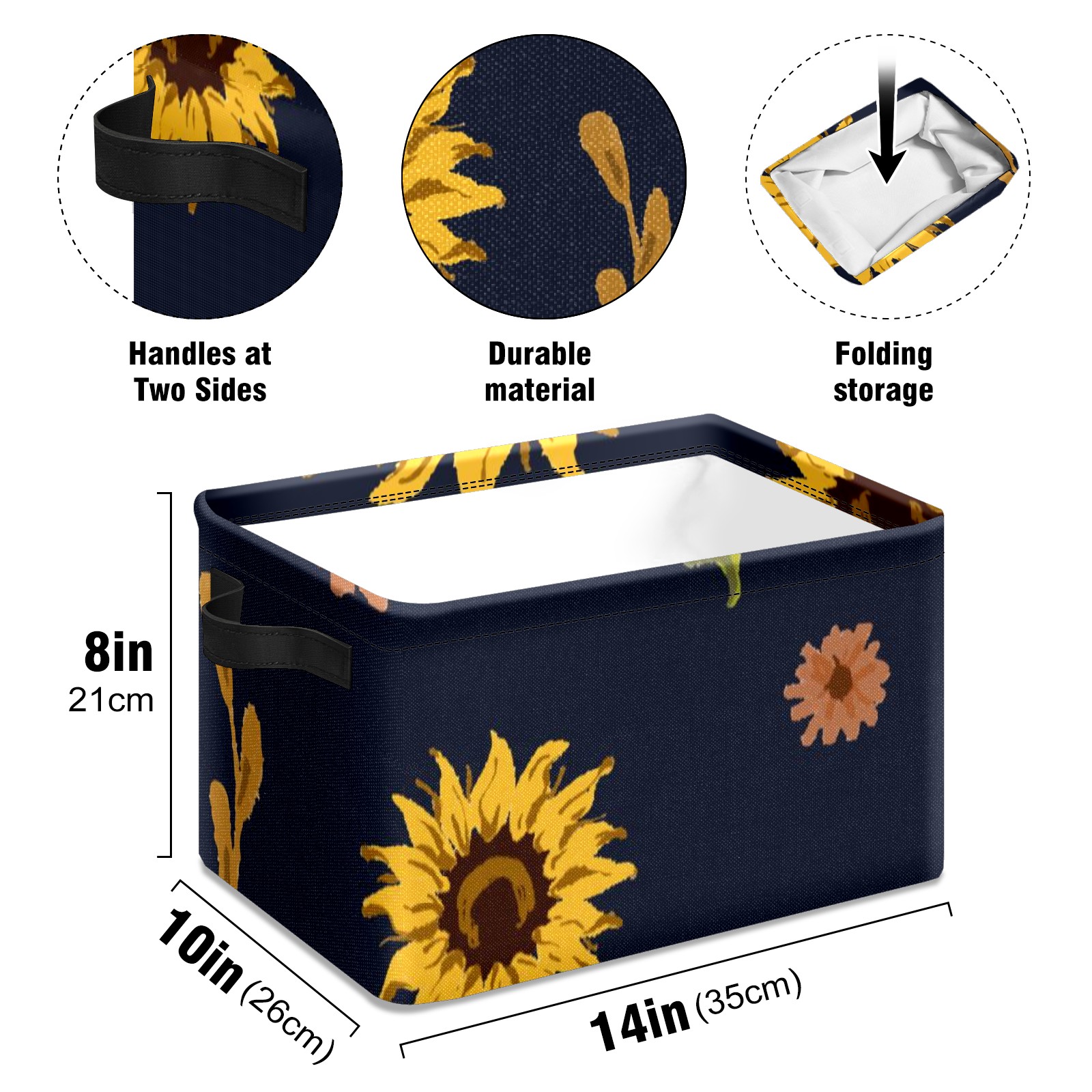Collapsible 600D Oxford Storage Basket with Yellow Sunflower Plant - Metal Frame 10"x14"x8" Reinforced Handles, Multi-Purpose Organizer