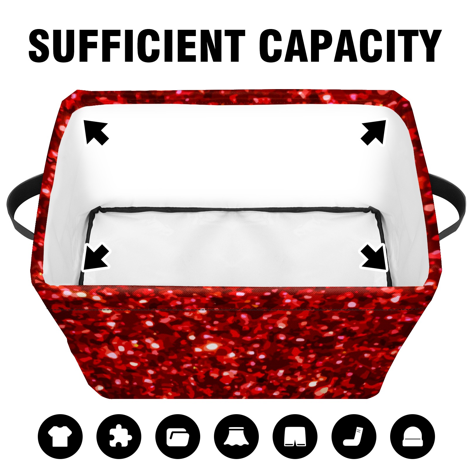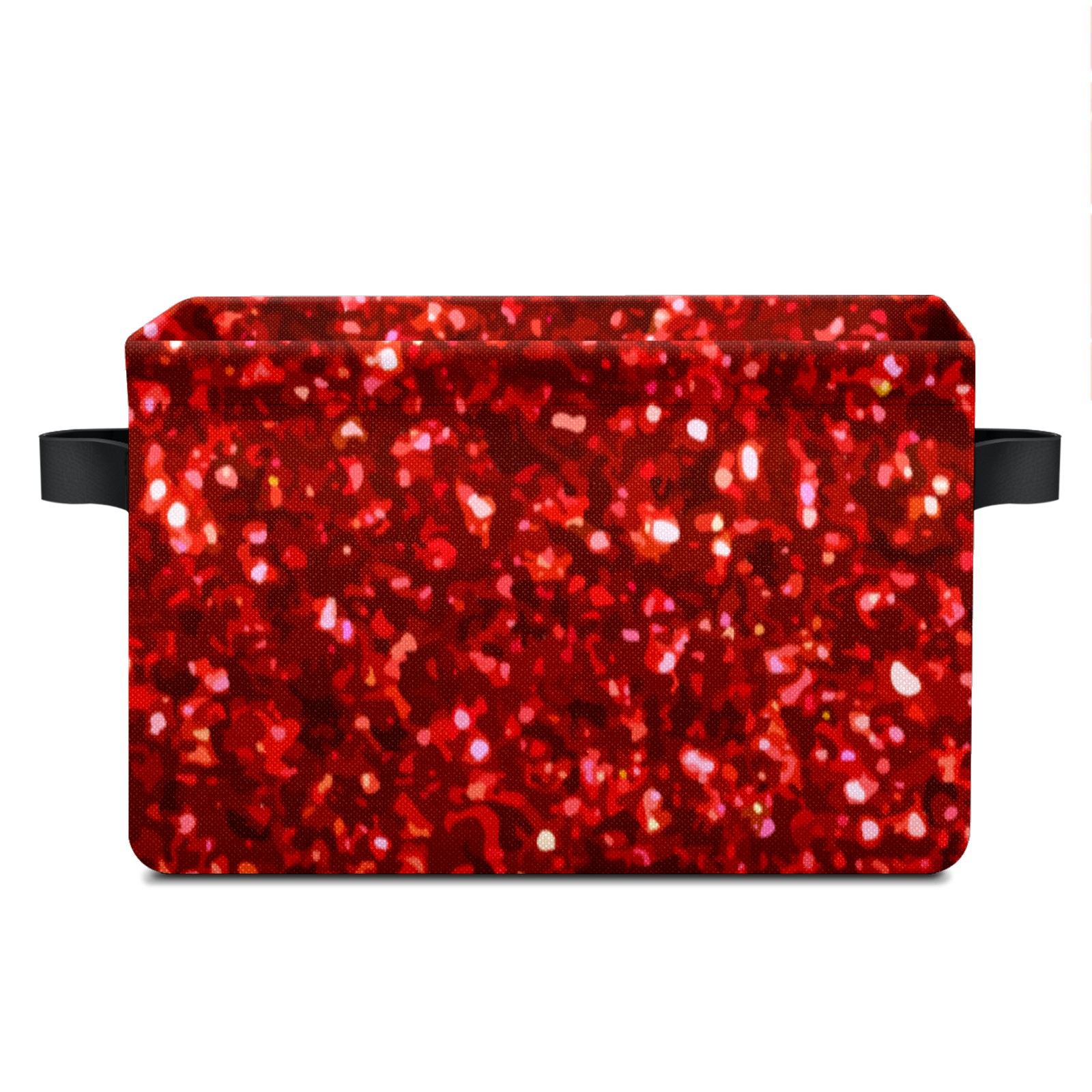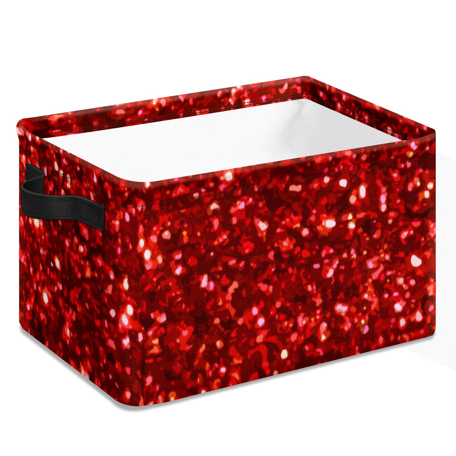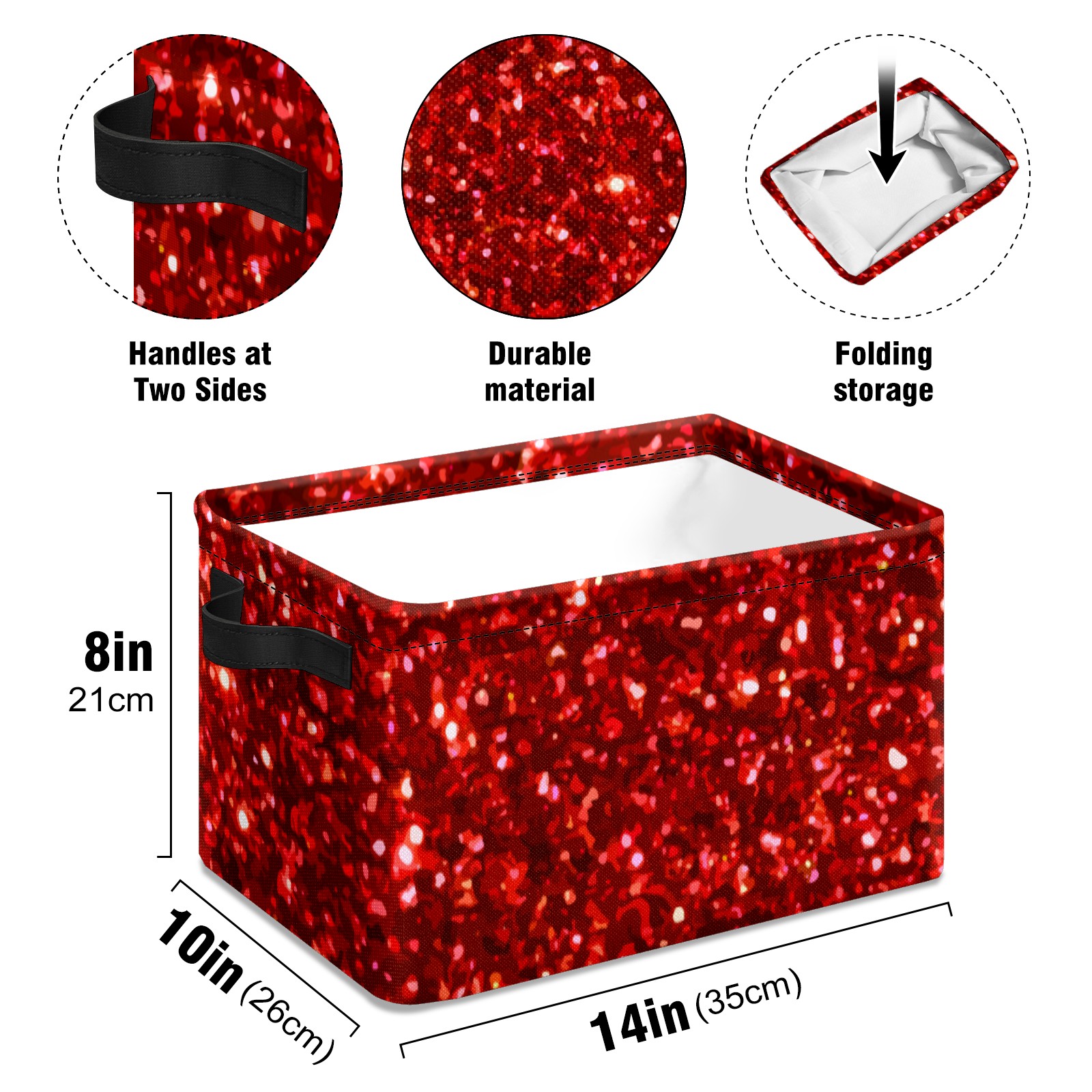 Collapsible 600D Oxford Storage Basket with Red Glitter Sequins - Metal Frame 10"x14"x8" Reinforced Handles, Multi-Purpose Organizer