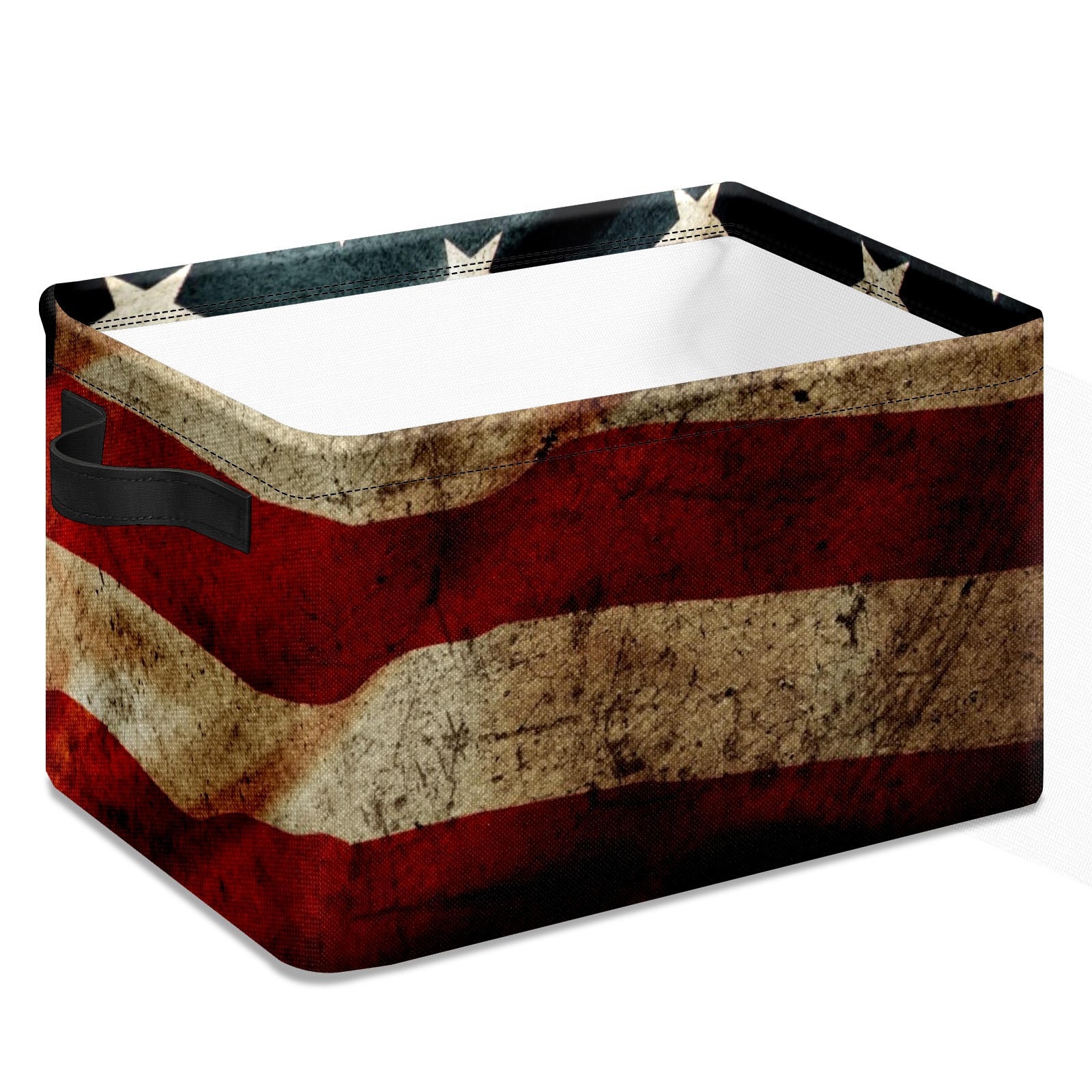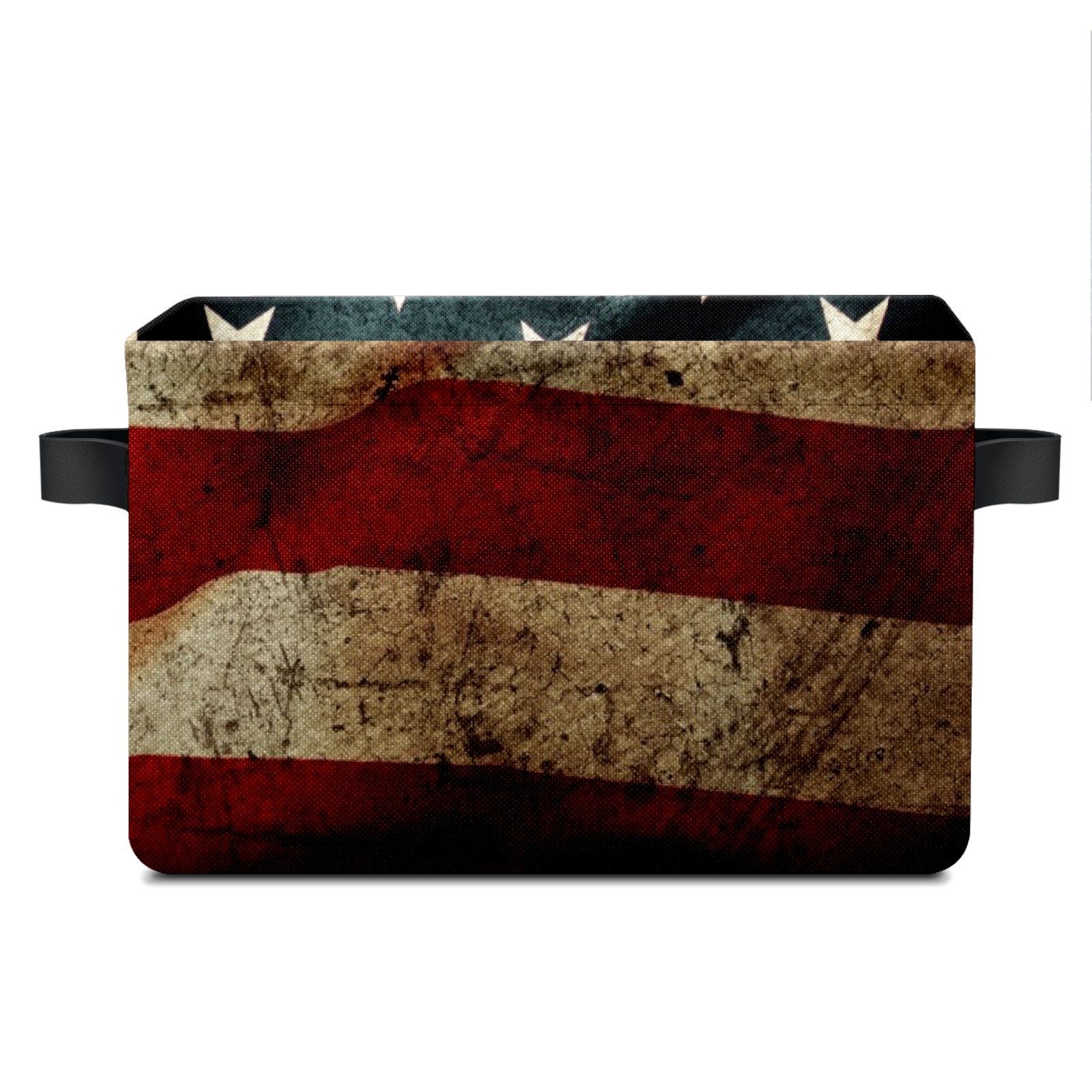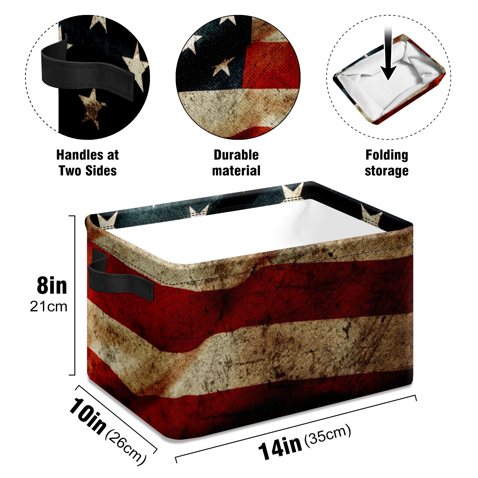 Collapsible 600D Oxford Storage Basket with American Flag Retro Grunge - Metal Frame 10"x14"x8" Reinforced Handles, Multi-Purpose Organizer