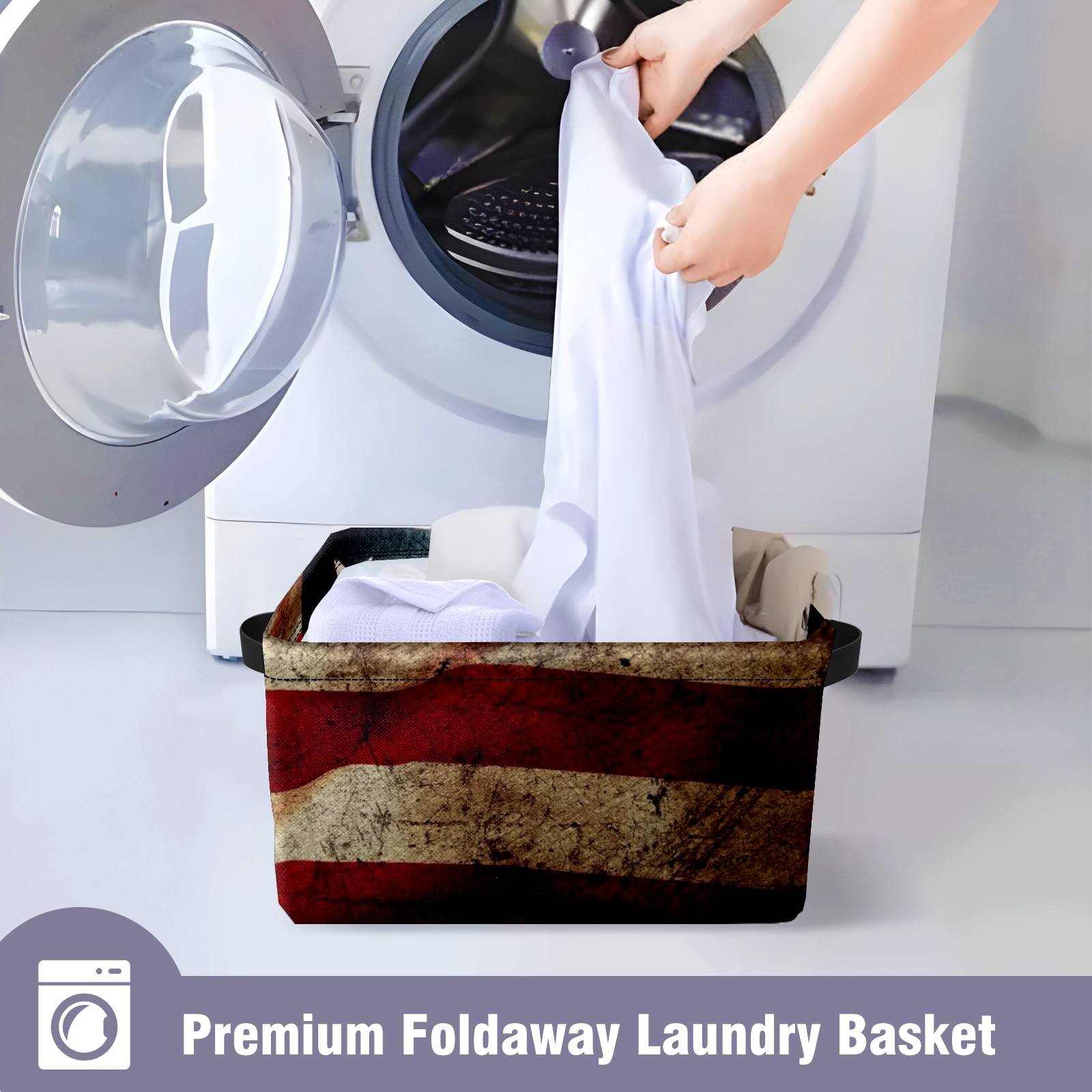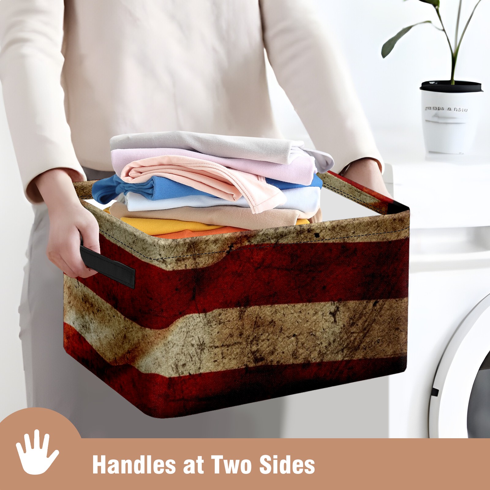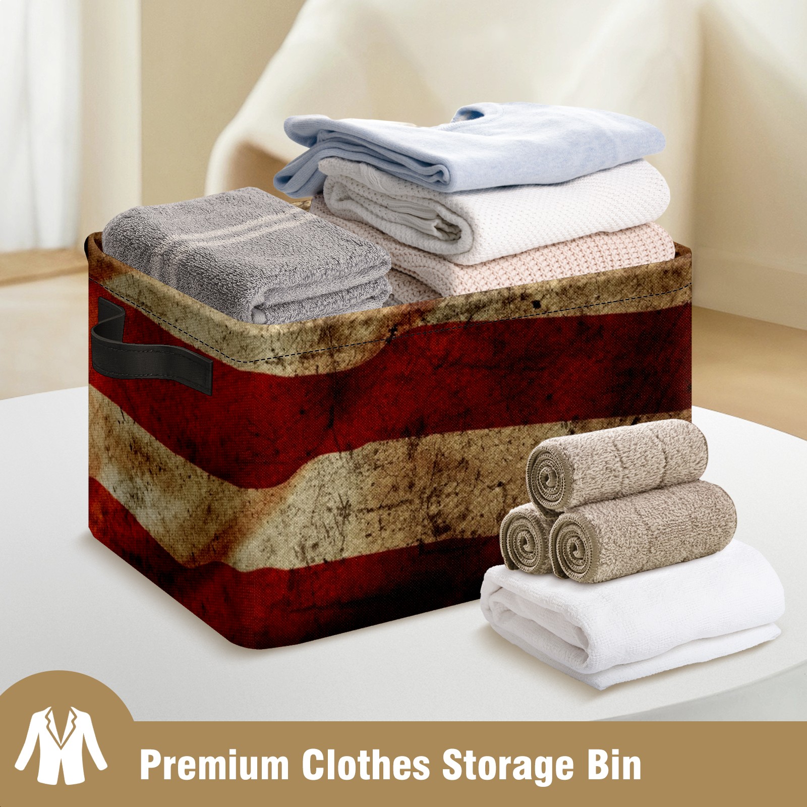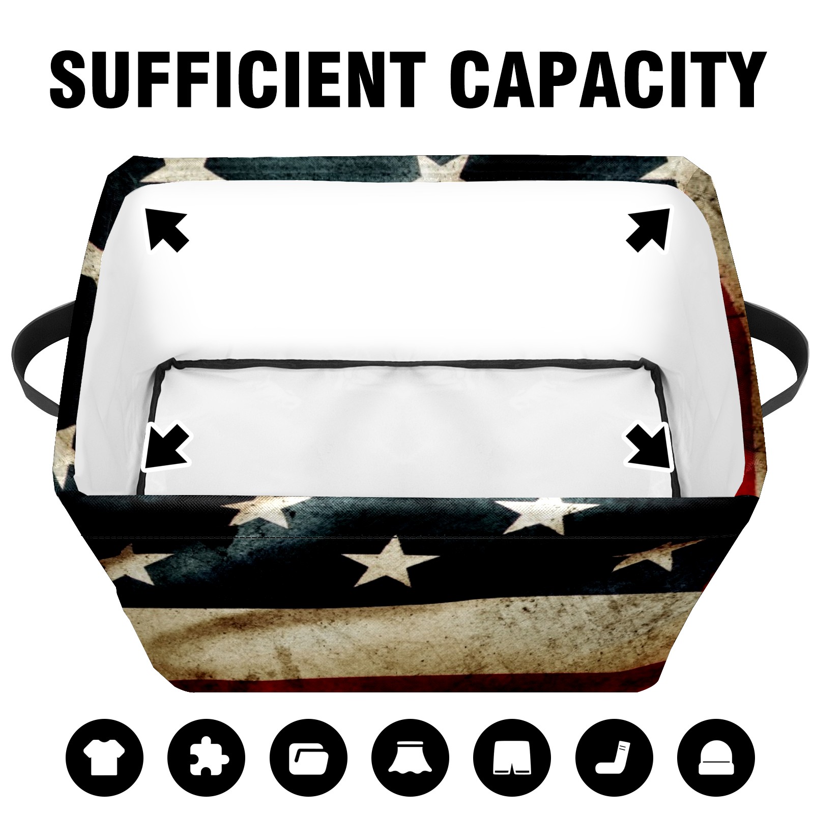Collapsible 600D Oxford Storage Basket with American Flag Retro Grunge - Metal Frame 10"x14"x8" Reinforced Handles, Multi-Purpose Organizer