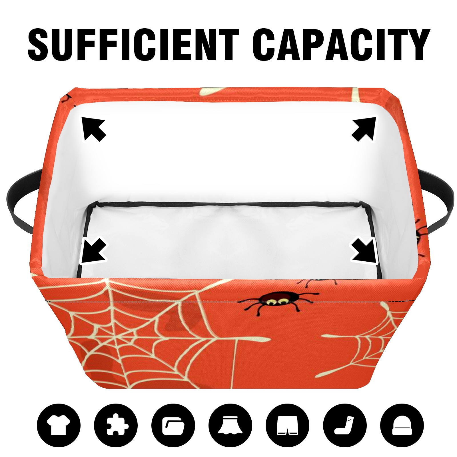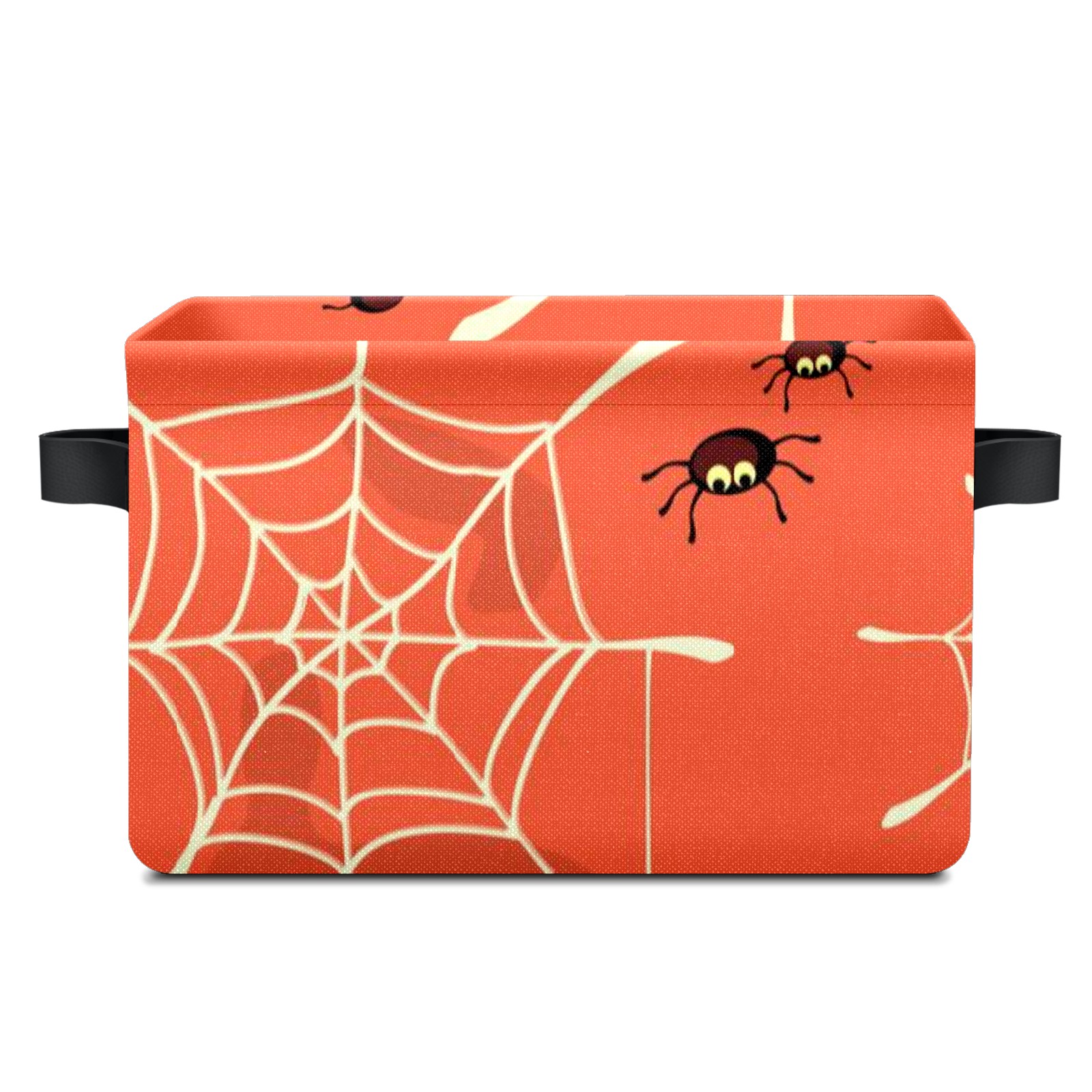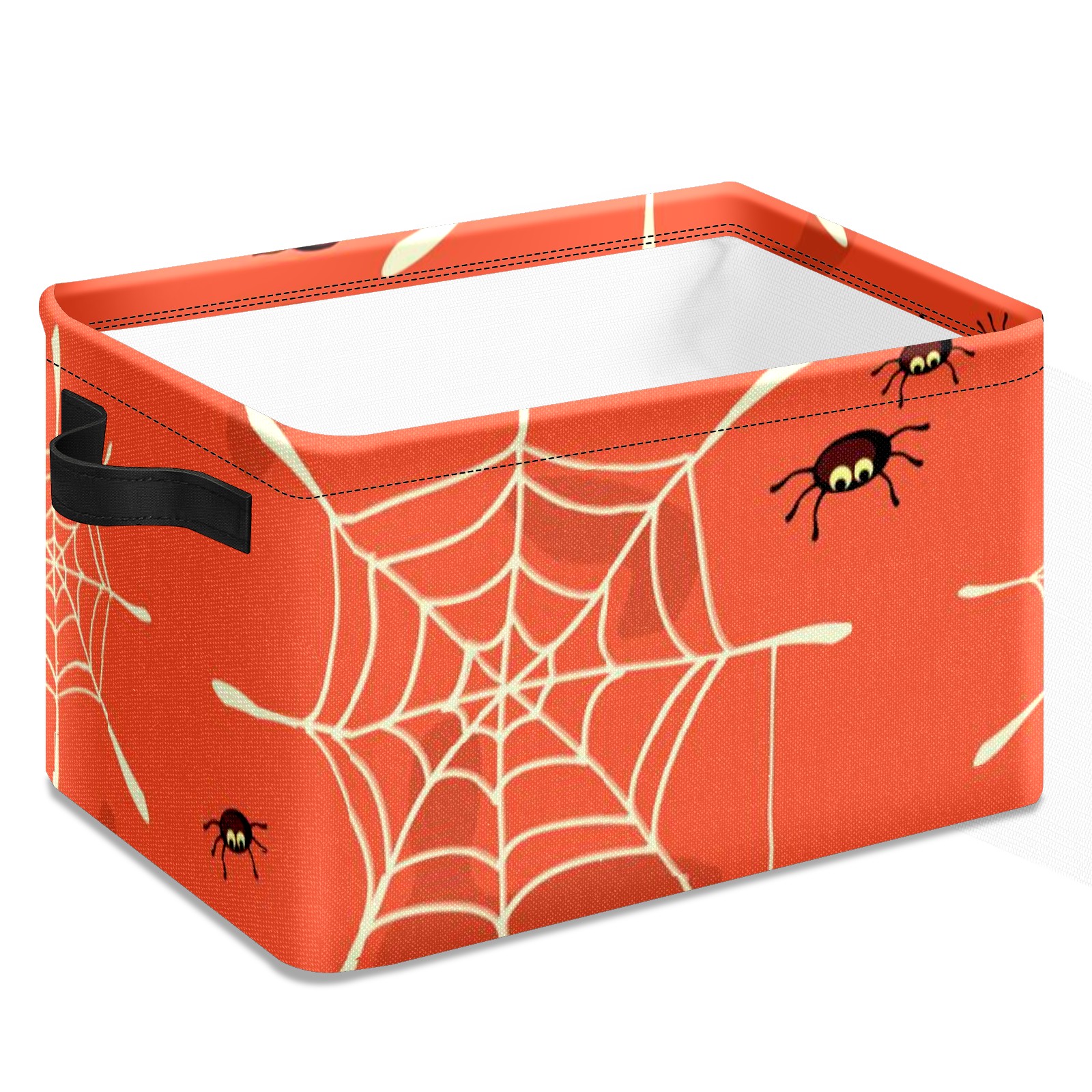 Collapsible 600D Oxford Storage Basket with Halloween Spider Web - Metal Frame 10"x14"x8" Reinforced Handles, Multi-Purpose Organizer