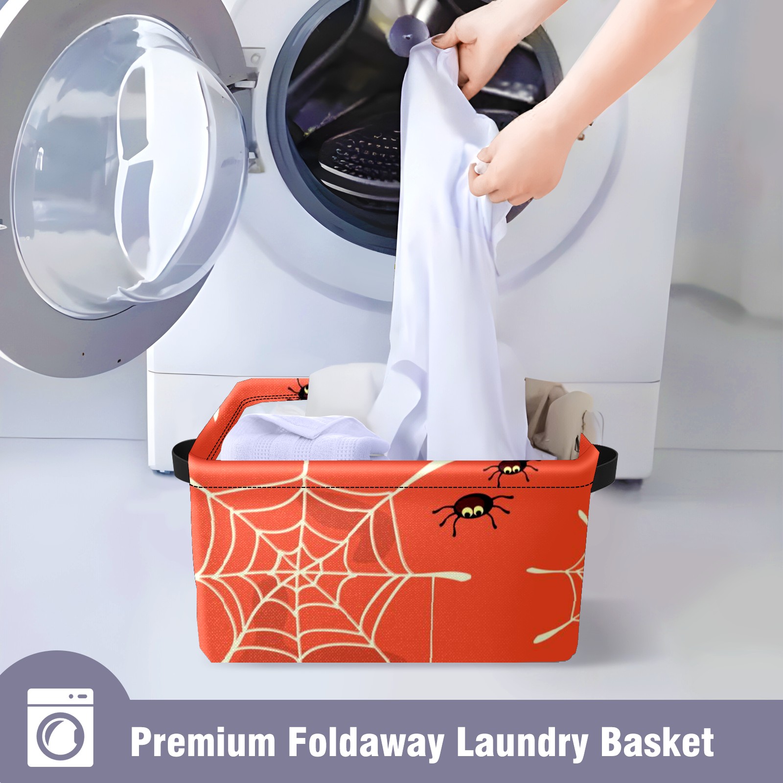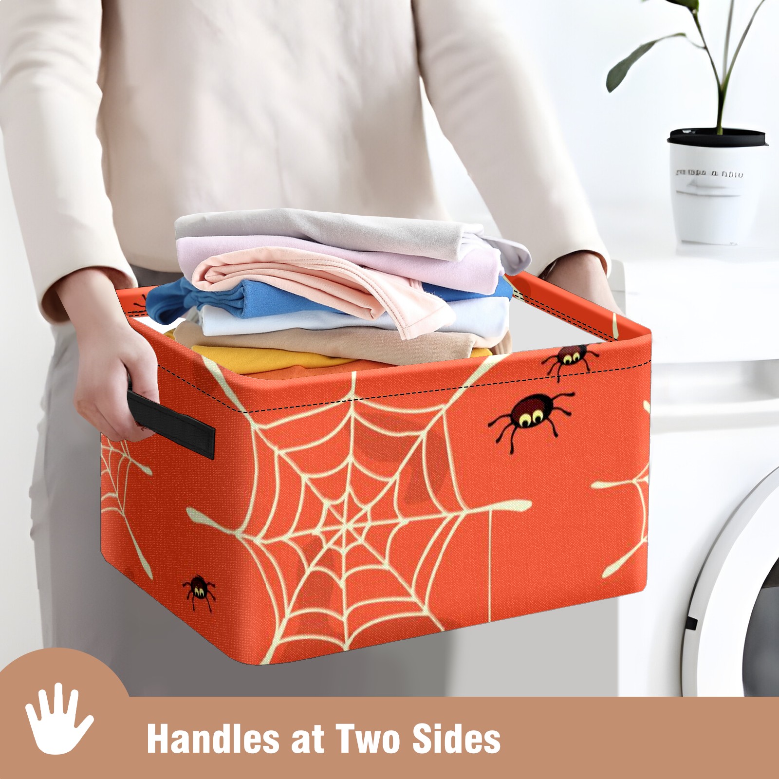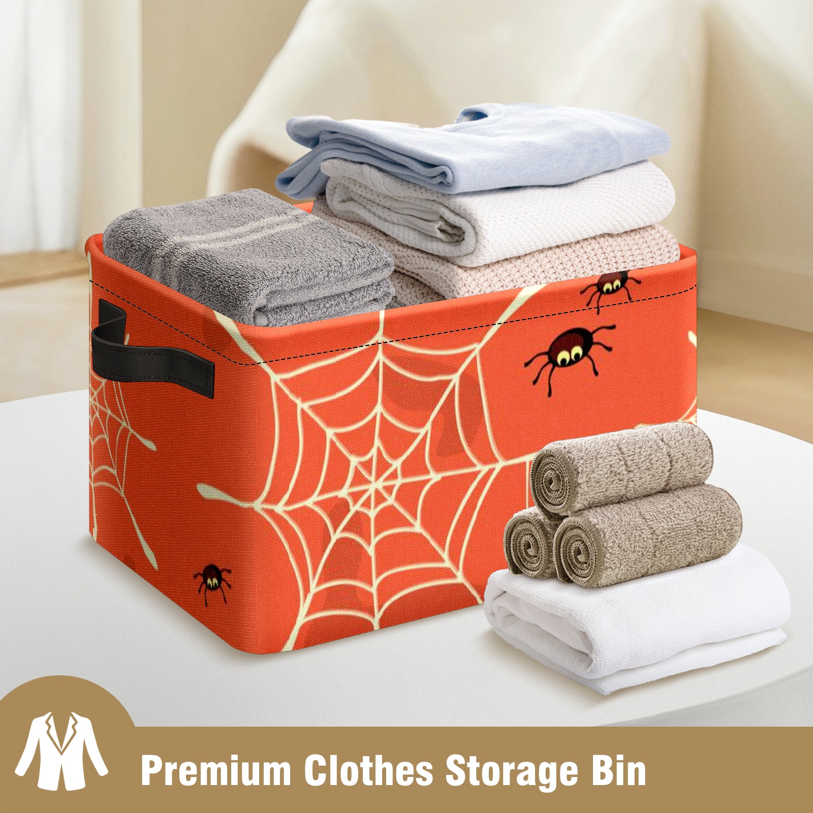 Collapsible 600D Oxford Storage Basket with Halloween Spider Web - Metal Frame 10"x14"x8" Reinforced Handles, Multi-Purpose Organizer
