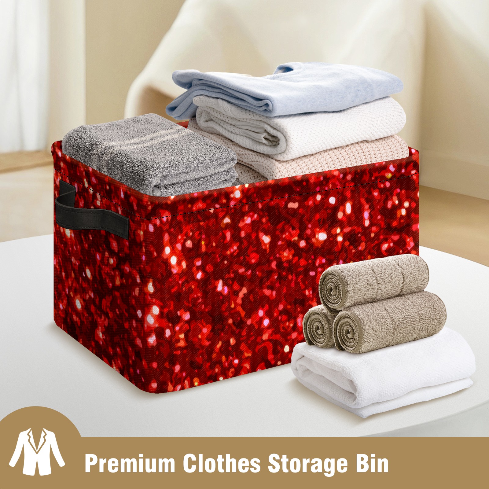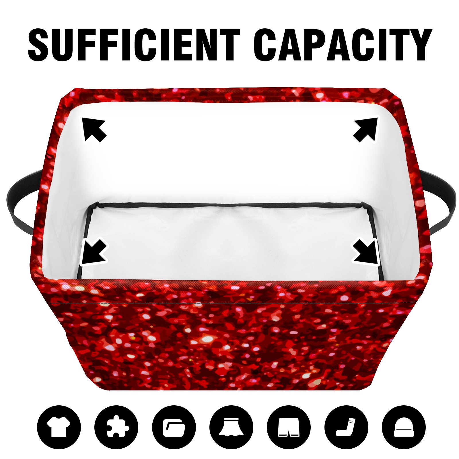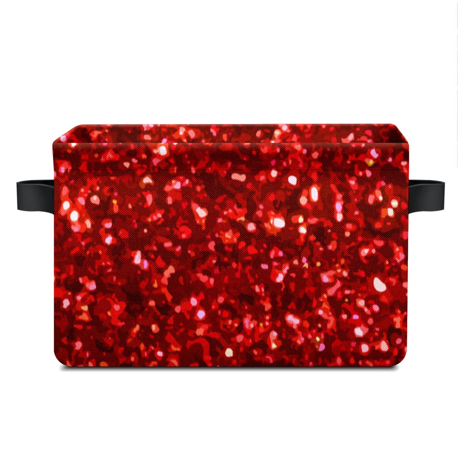 Collapsible 600D Oxford Storage Basket with Red Glitter Sequins Pattern - Metal Frame 10"x14"x8" Reinforced Handles, Multi-Purpose Organizer