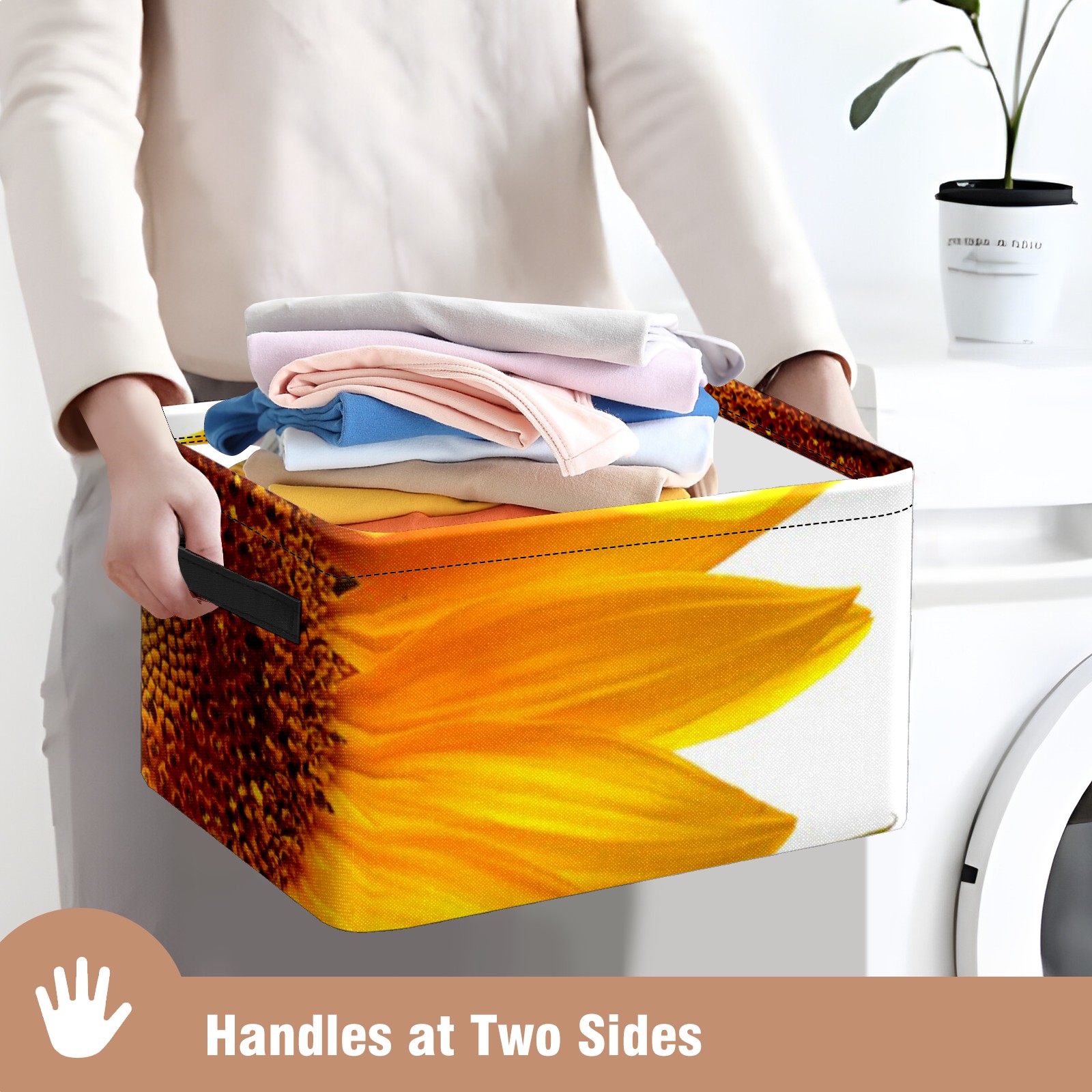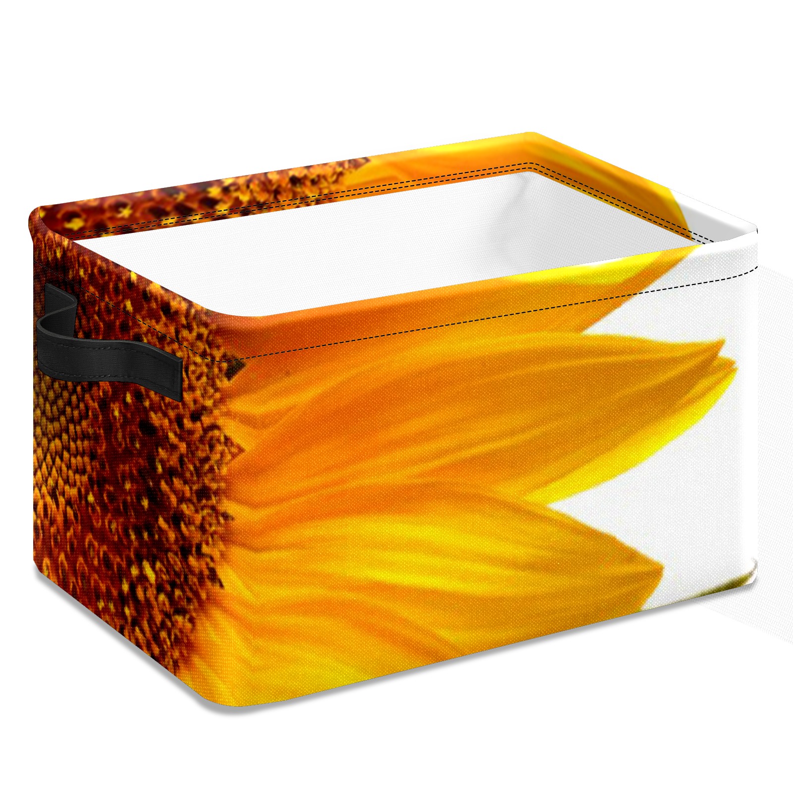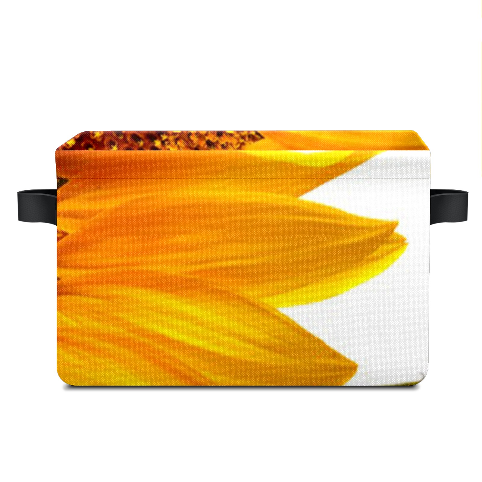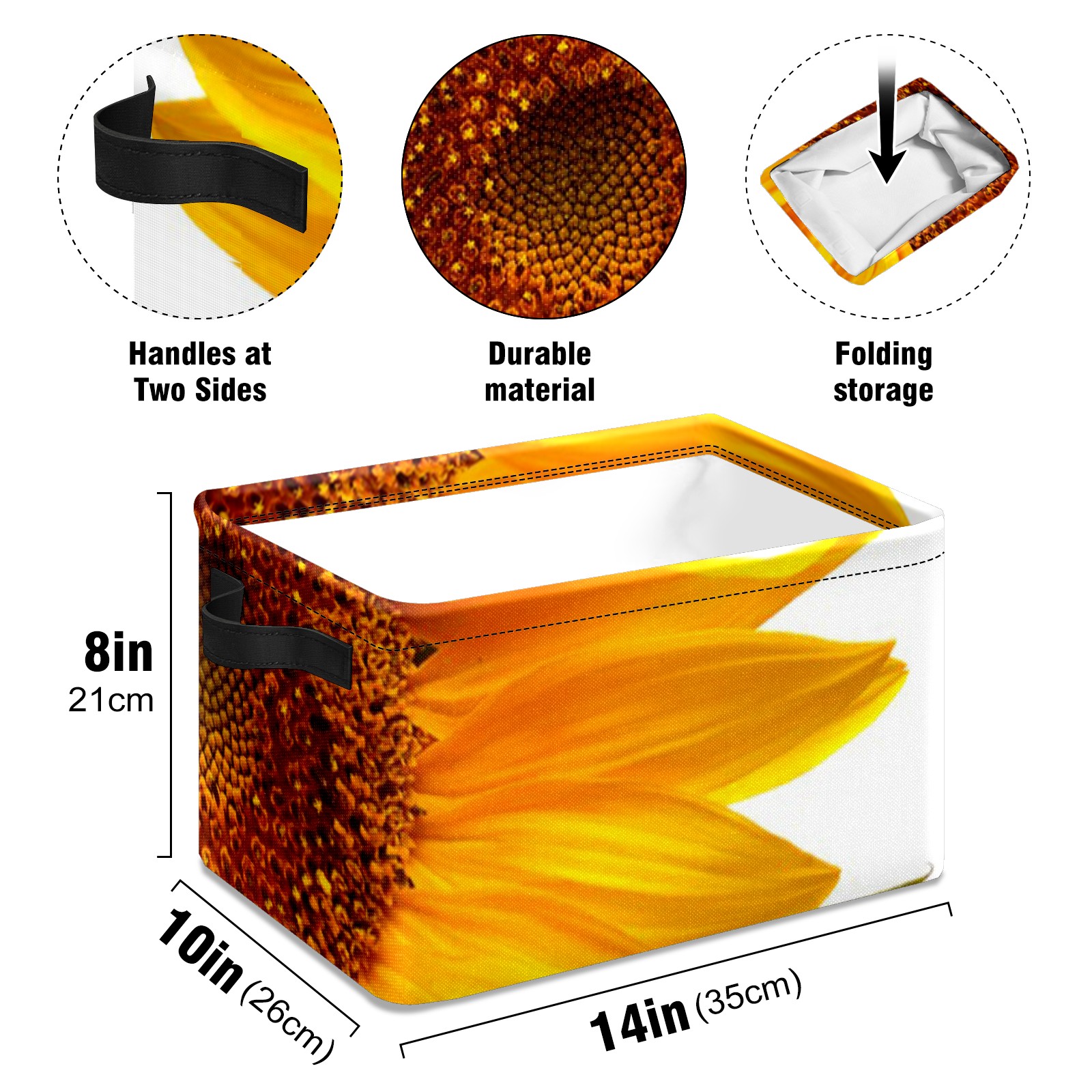 Collapsible 600D Oxford Storage Basket with Yellow Sunflower - Metal Frame 10"x14"x8" Reinforced Handles, Multi-Purpose Organizer