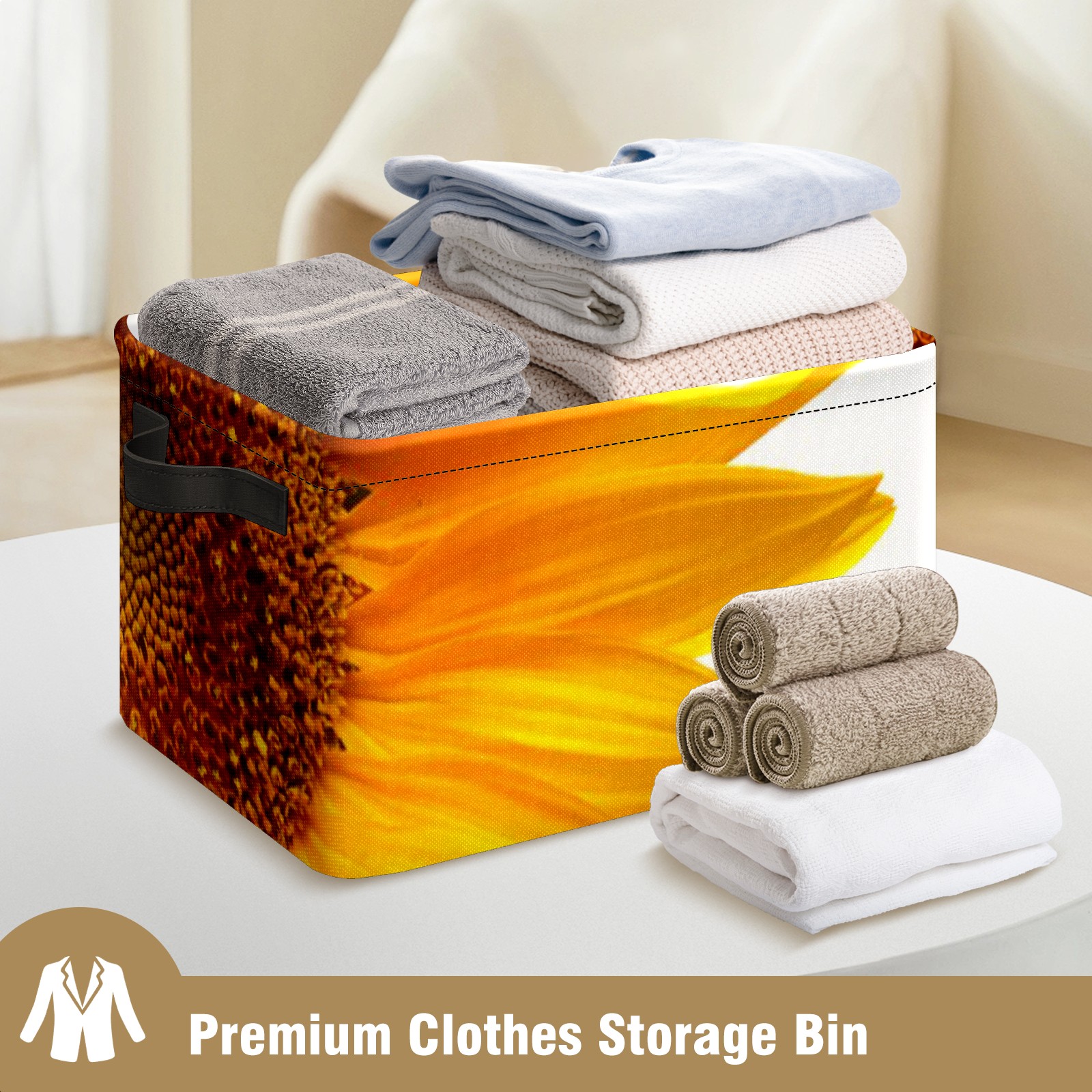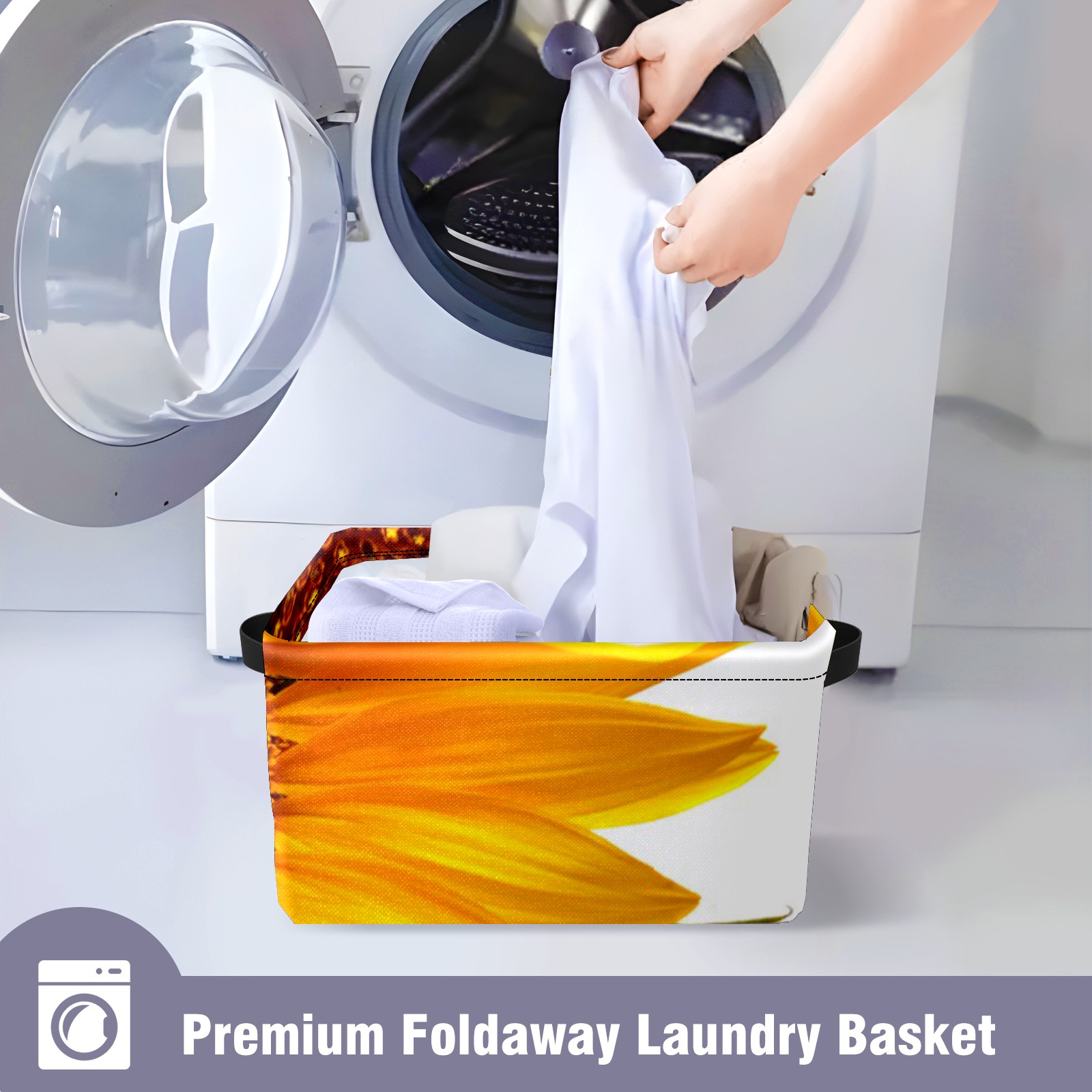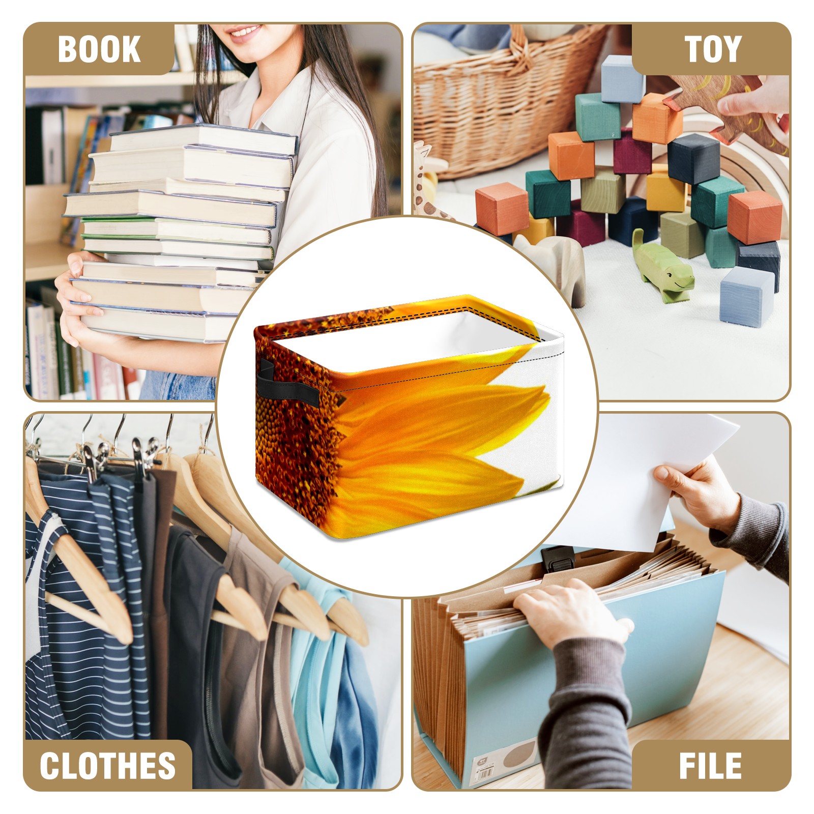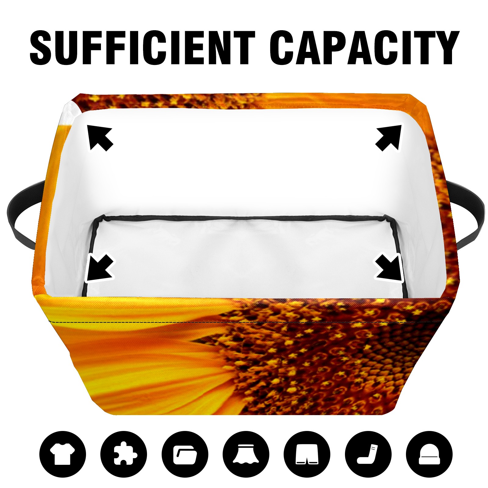 Collapsible 600D Oxford Storage Basket with Yellow Sunflower - Metal Frame 10"x14"x8" Reinforced Handles, Multi-Purpose Organizer
