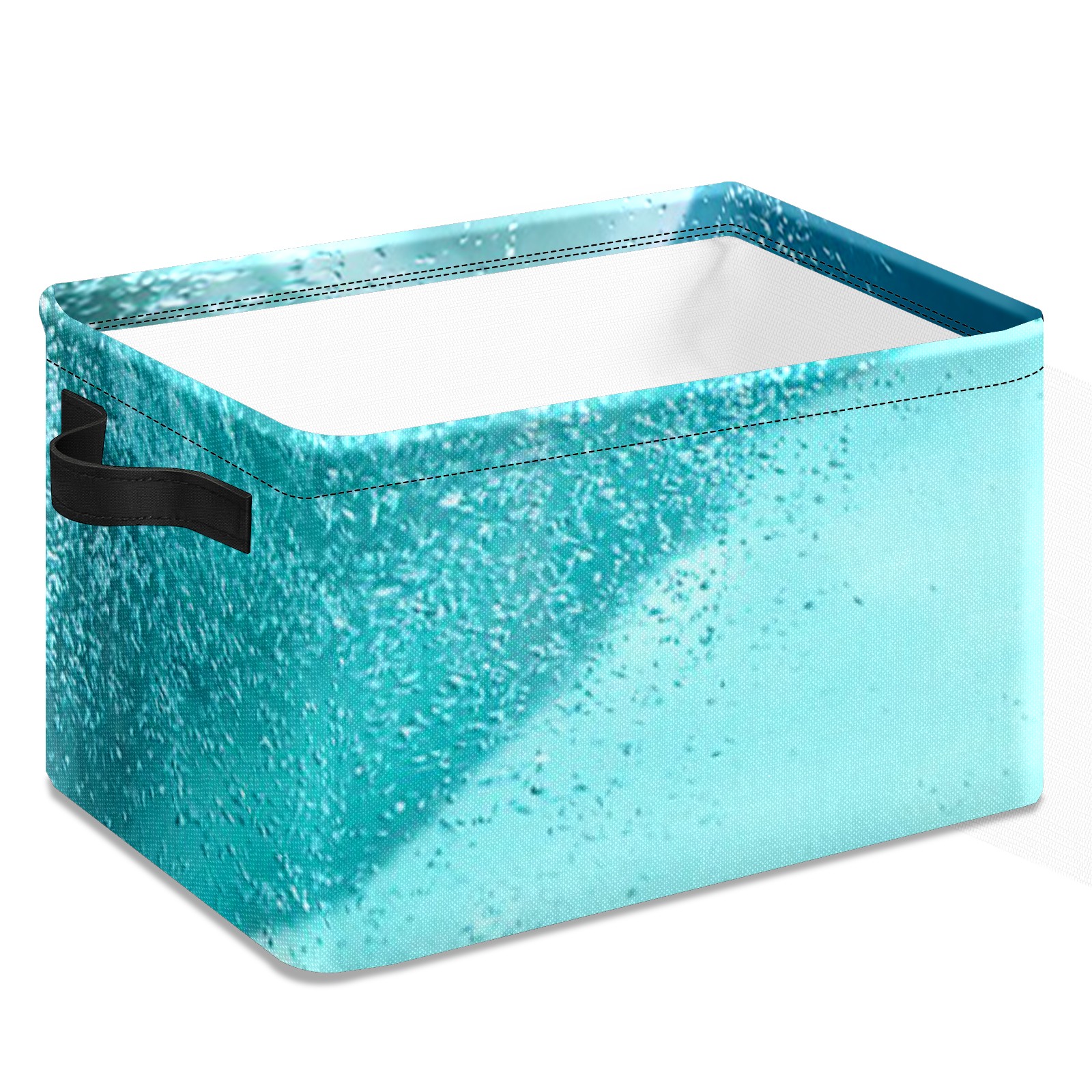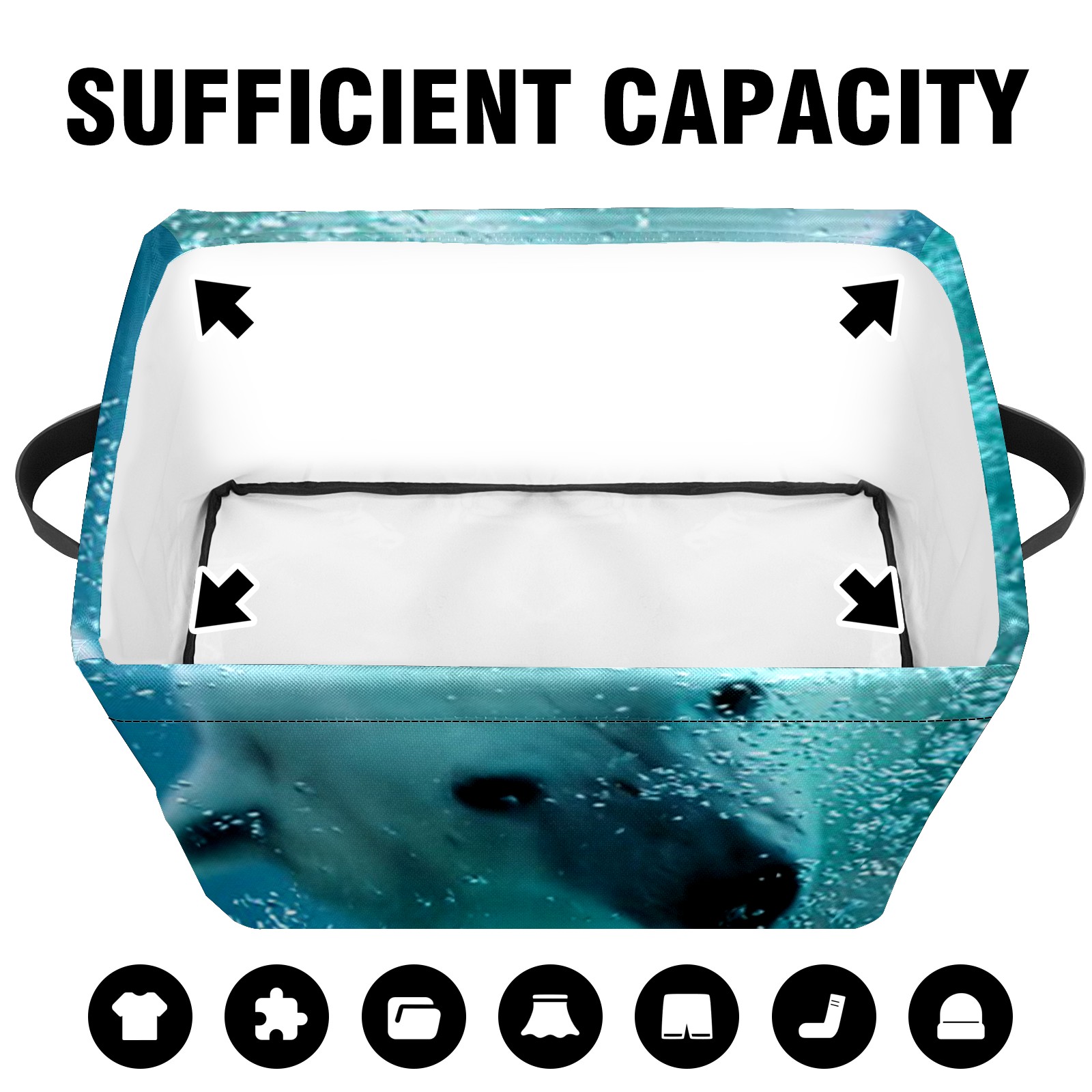 Collapsible 600D Oxford Storage Basket with Funny Polar Bear Swimming - Metal Frame 10"x14"x8" Reinforced Handles, Multi-Purpose Organizer