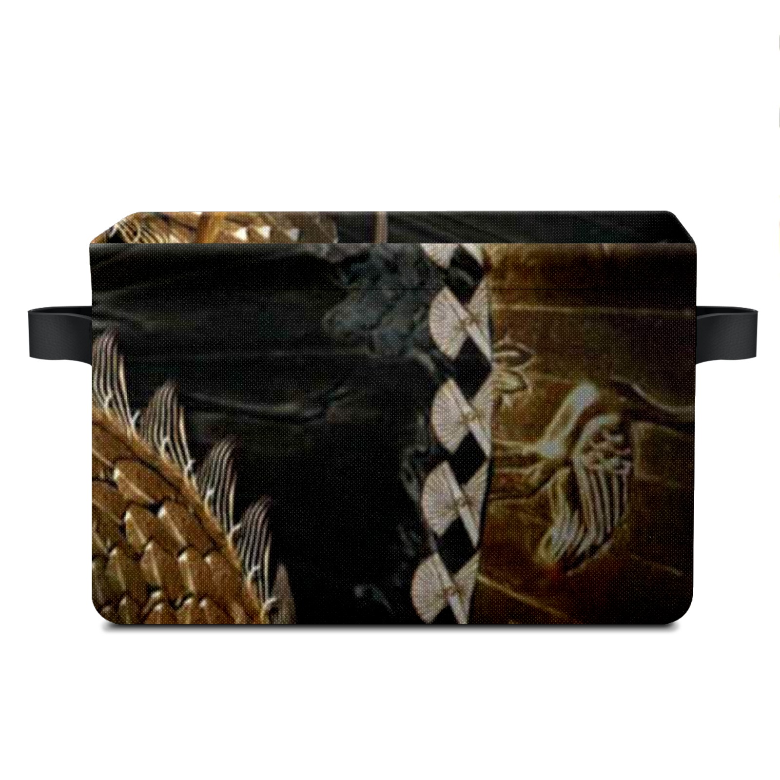 Collapsible 600D Oxford Storage Basket with Taditional Chinese Golden Dragon - Metal Frame 10"x14"x8" Reinforced Handles, Multi-Purpose Organizer