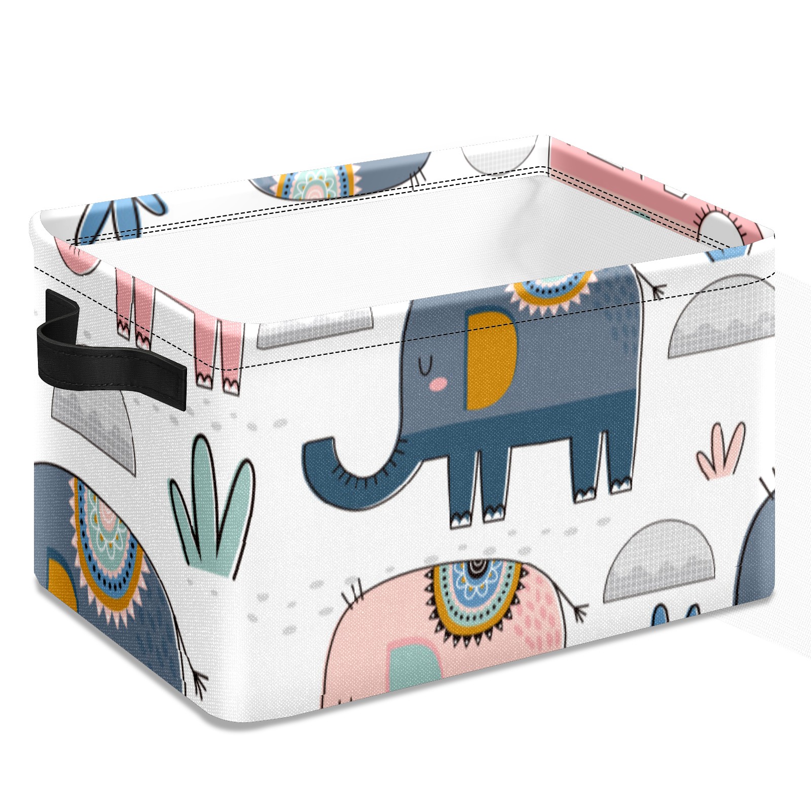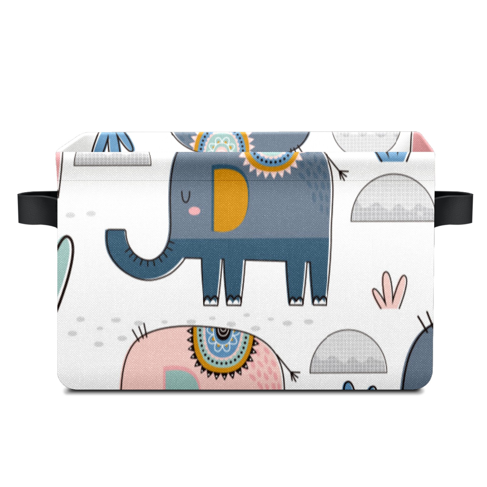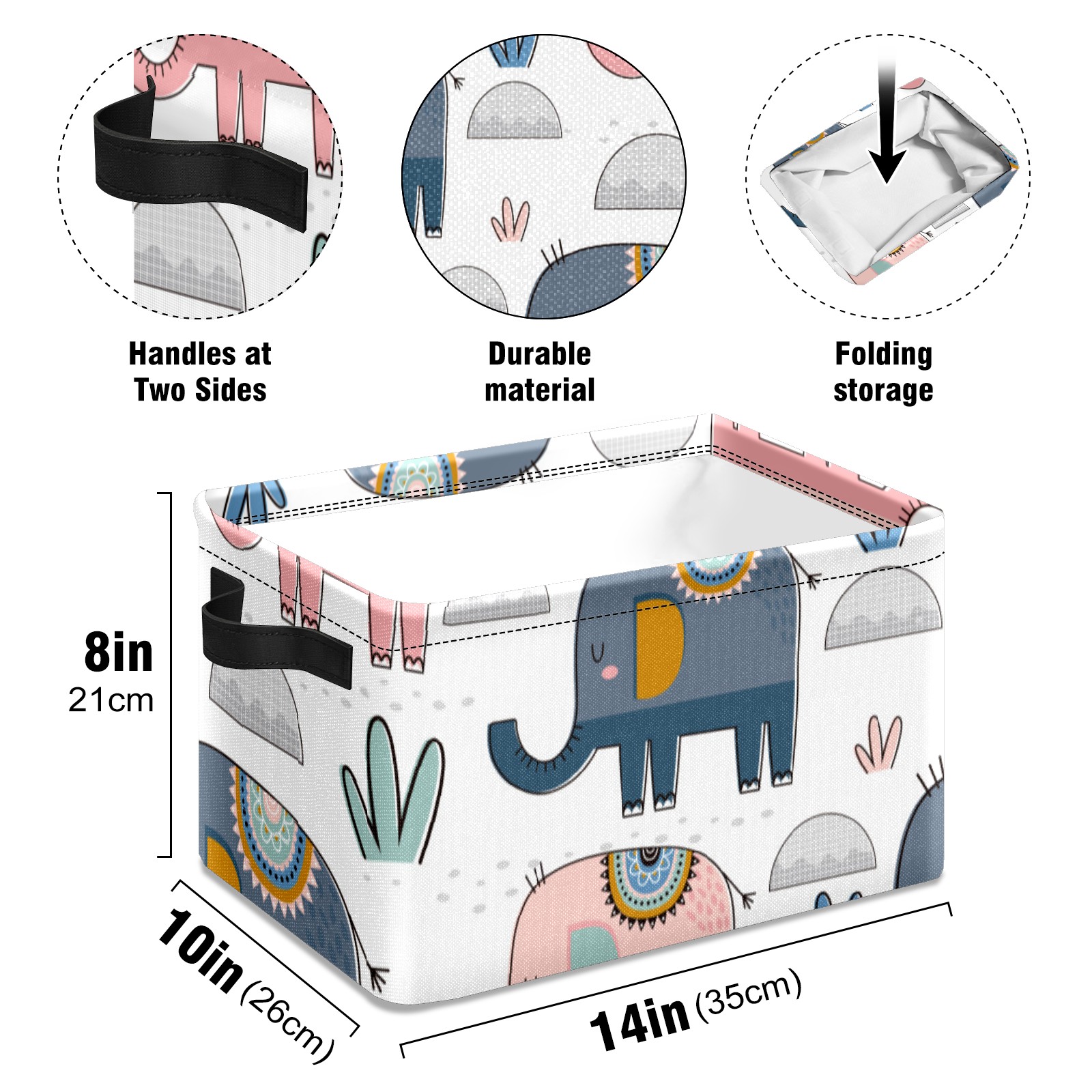 Collapsible 600D Oxford Storage Basket with Pink Green Navy Elephants Cactus - Metal Frame 10"x14"x8" Reinforced Handles, Multi-Purpose Organizer