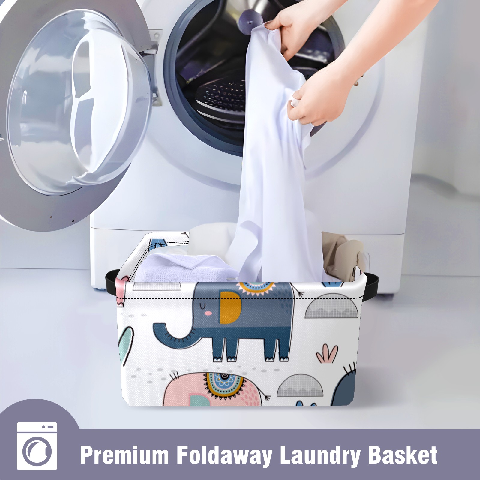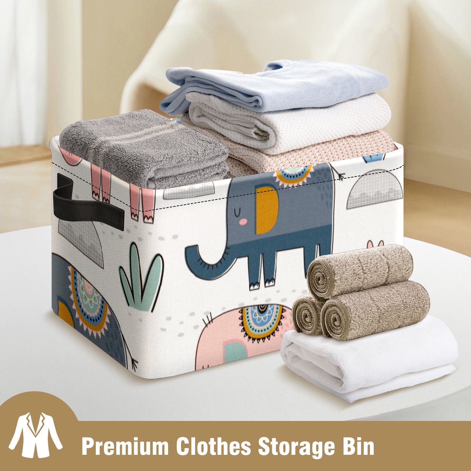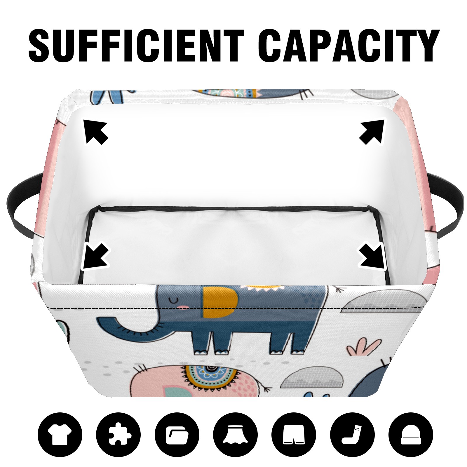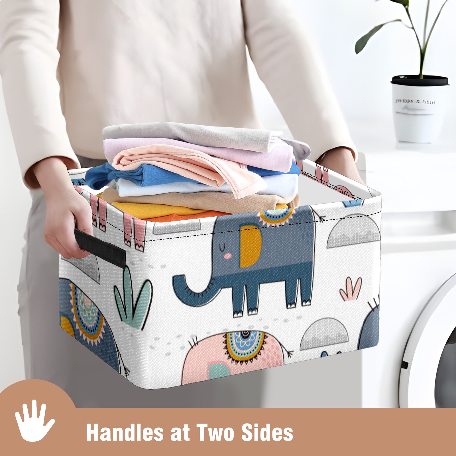 Collapsible 600D Oxford Storage Basket with Pink Green Navy Elephants Cactus - Metal Frame 10"x14"x8" Reinforced Handles, Multi-Purpose Organizer