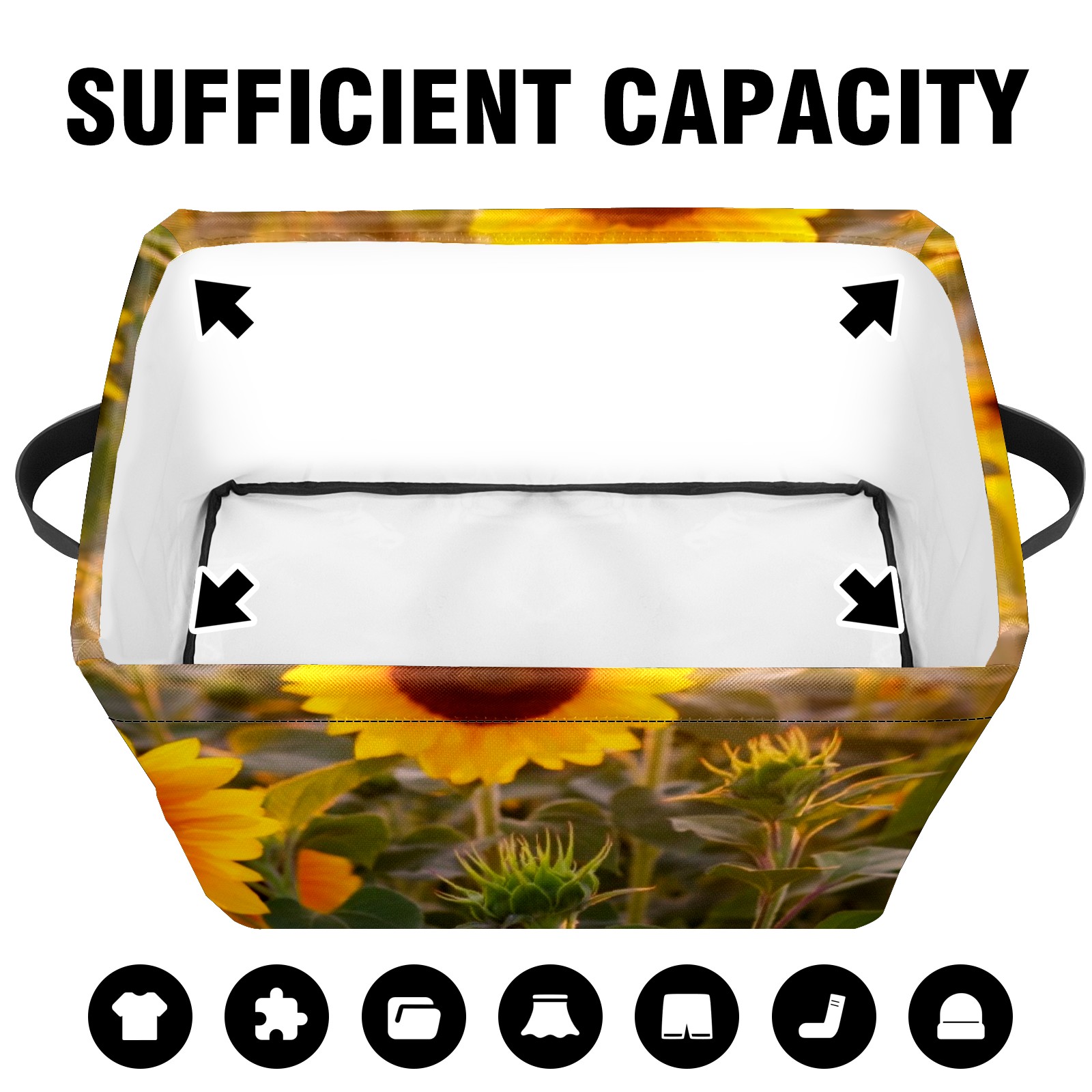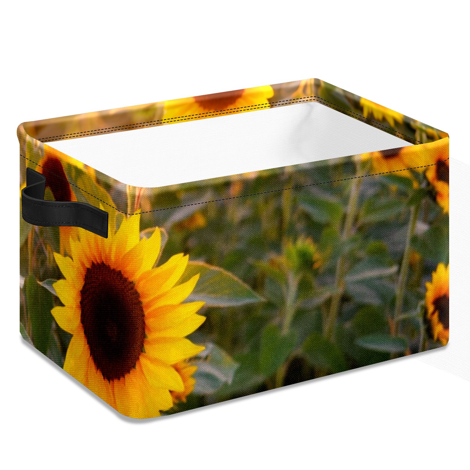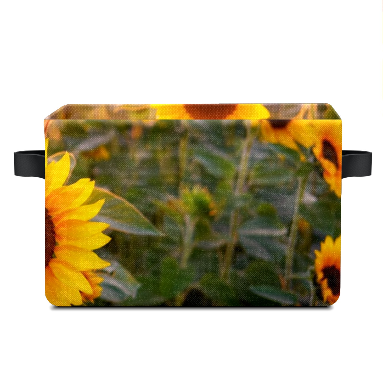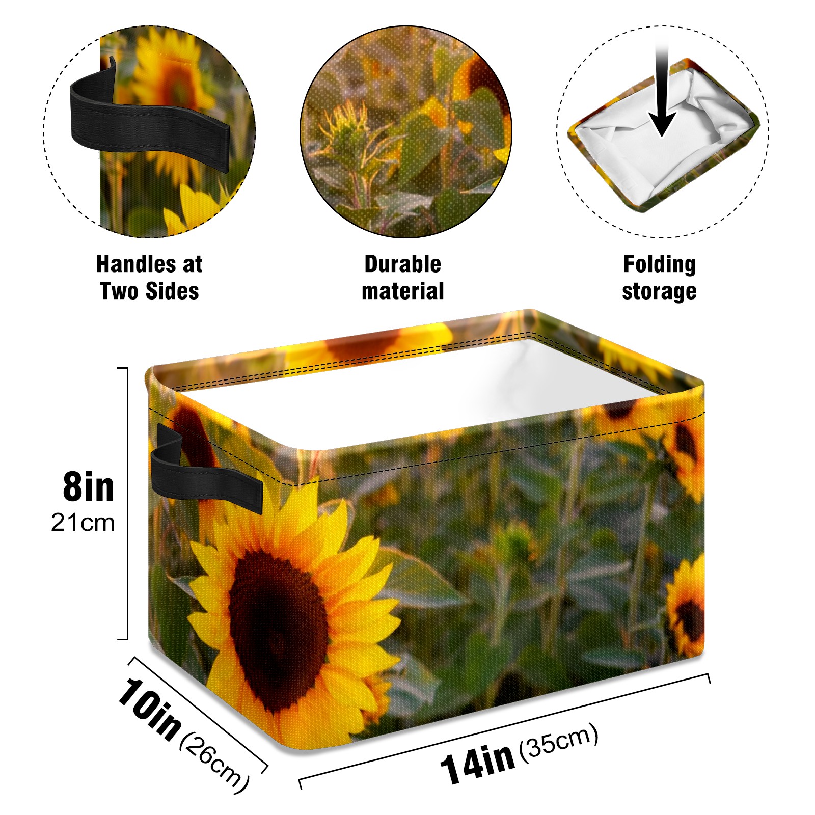 Collapsible 600D Oxford Storage Basket with Sunflowers Blooming Sunset - Metal Frame 10"x14"x8" Reinforced Handles, Multi-Purpose Organizer