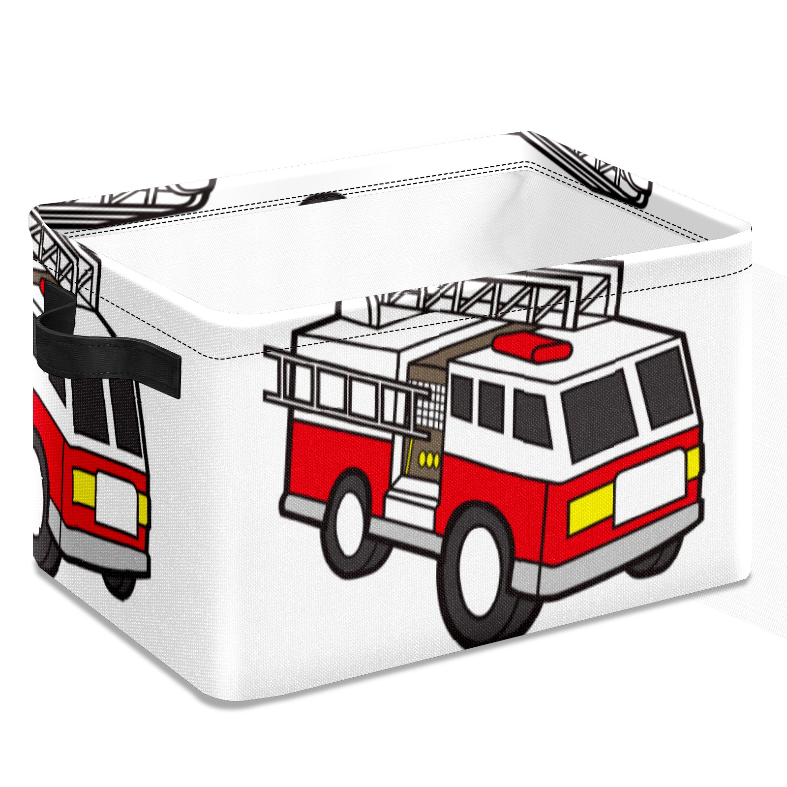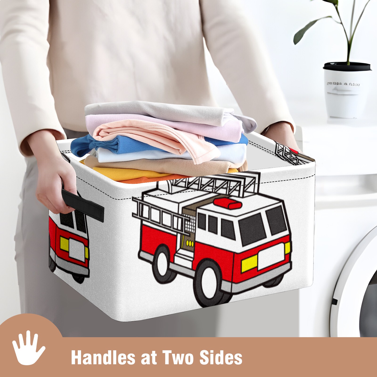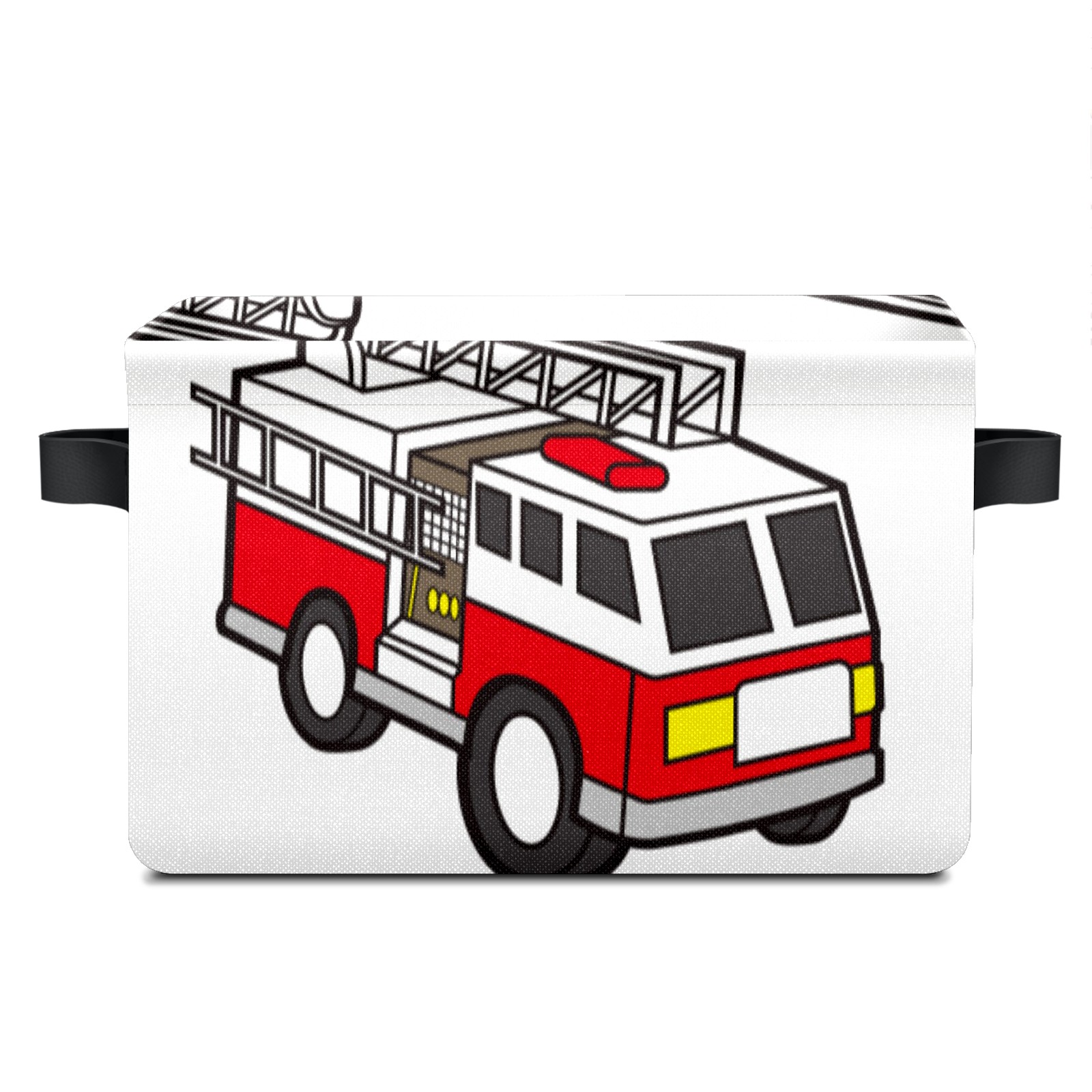 Collapsible 600D Oxford Storage Basket with Fire Truck - Metal Frame 10"x14"x8" Reinforced Handles, Multi-Purpose Organizer
