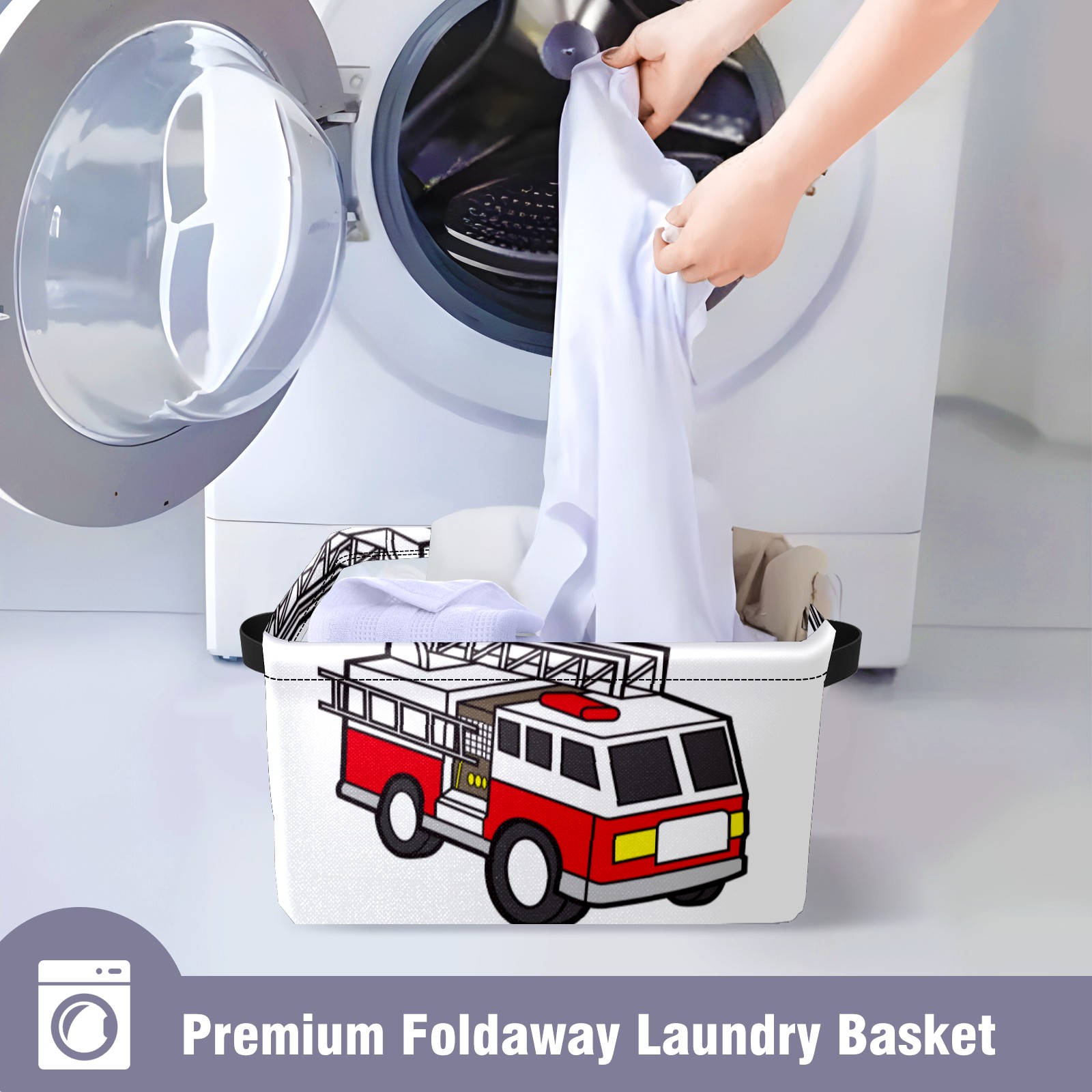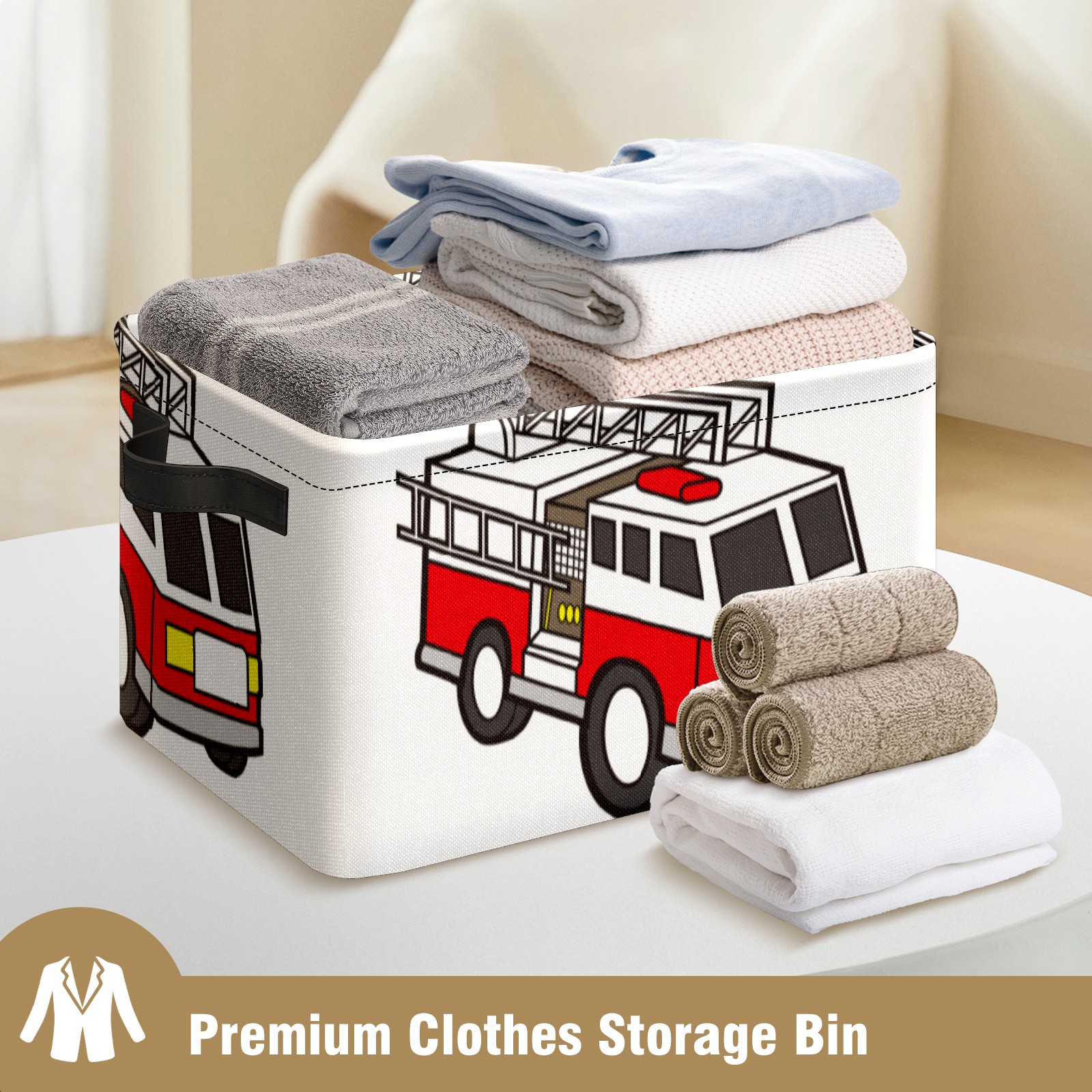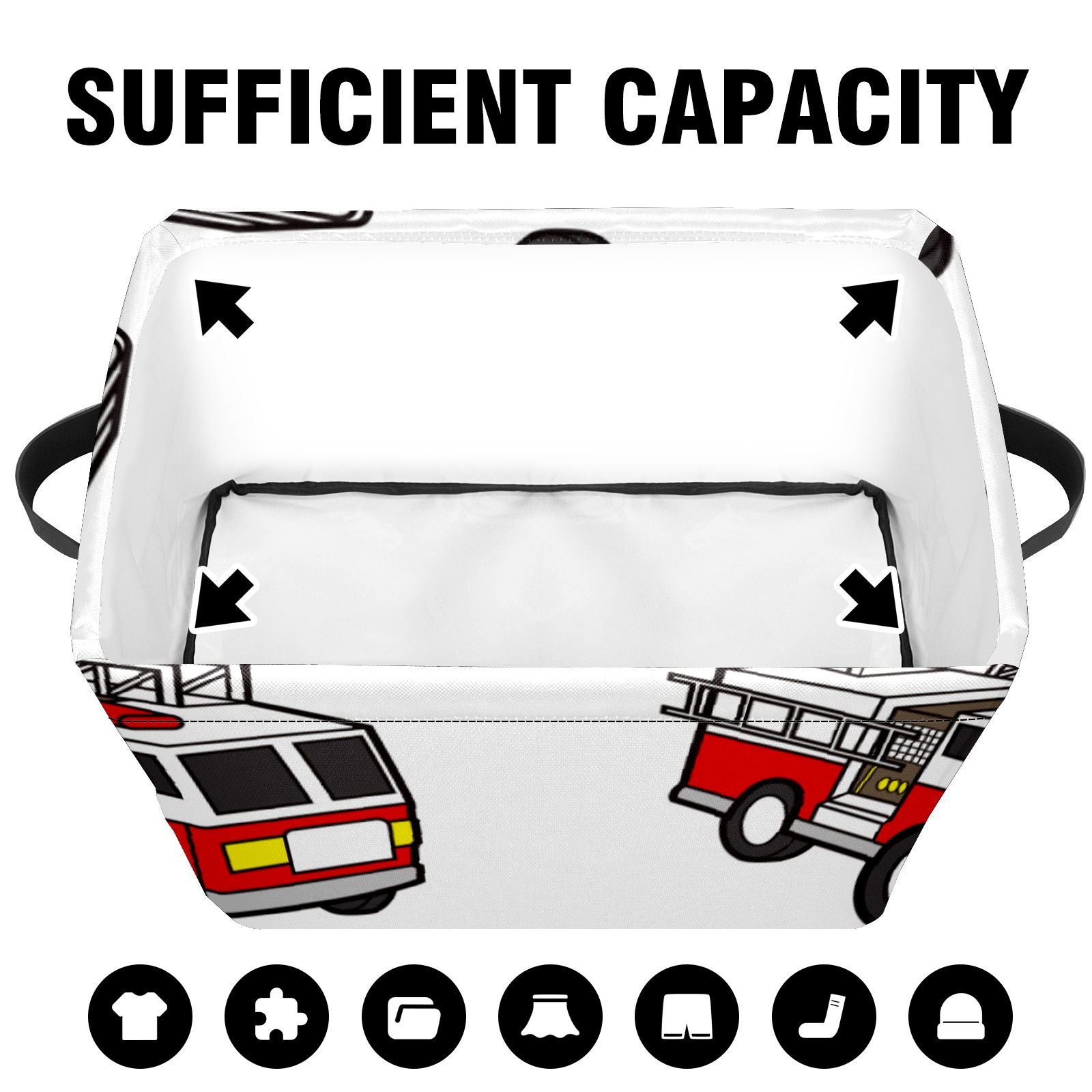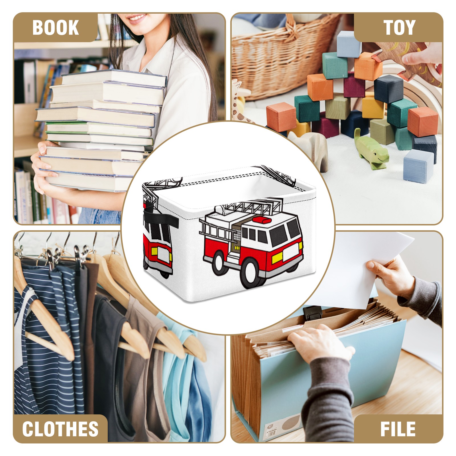 Collapsible 600D Oxford Storage Basket with Fire Truck - Metal Frame 10"x14"x8" Reinforced Handles, Multi-Purpose Organizer