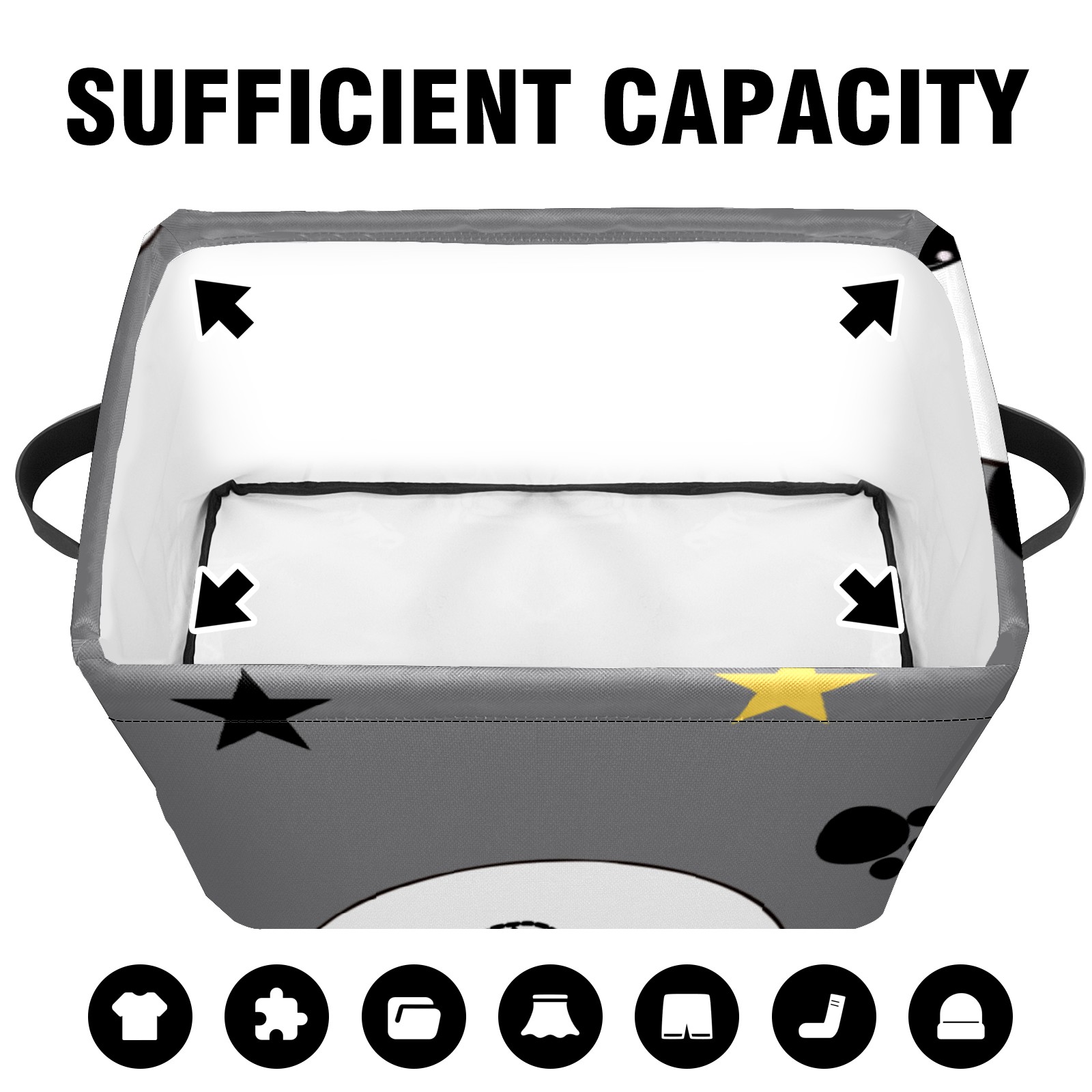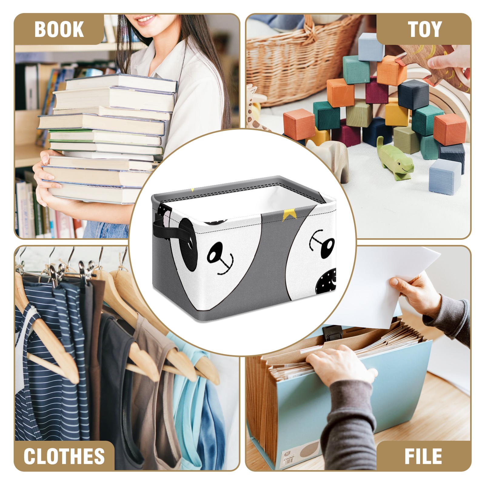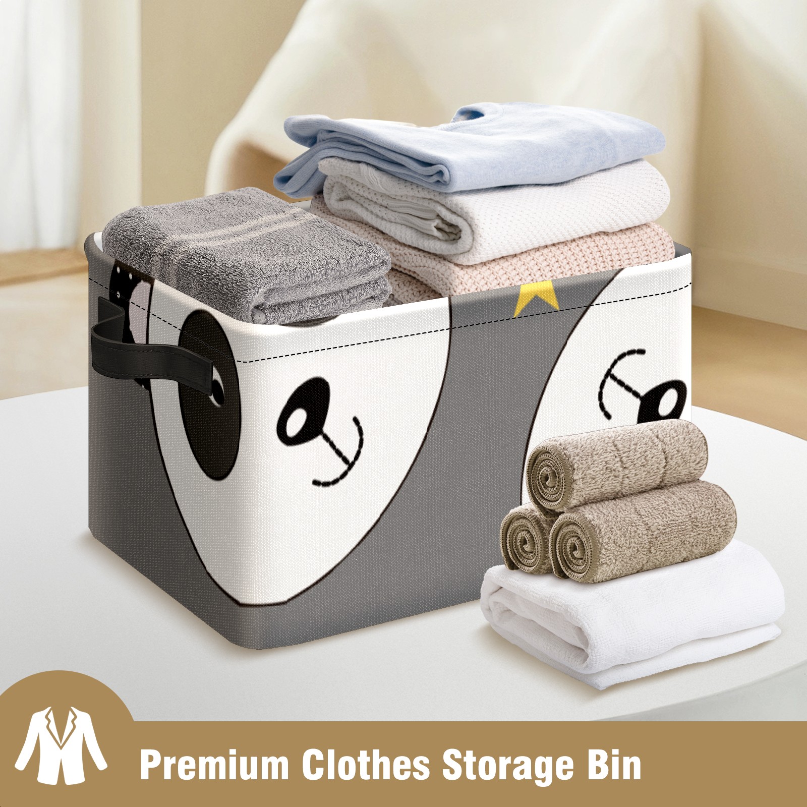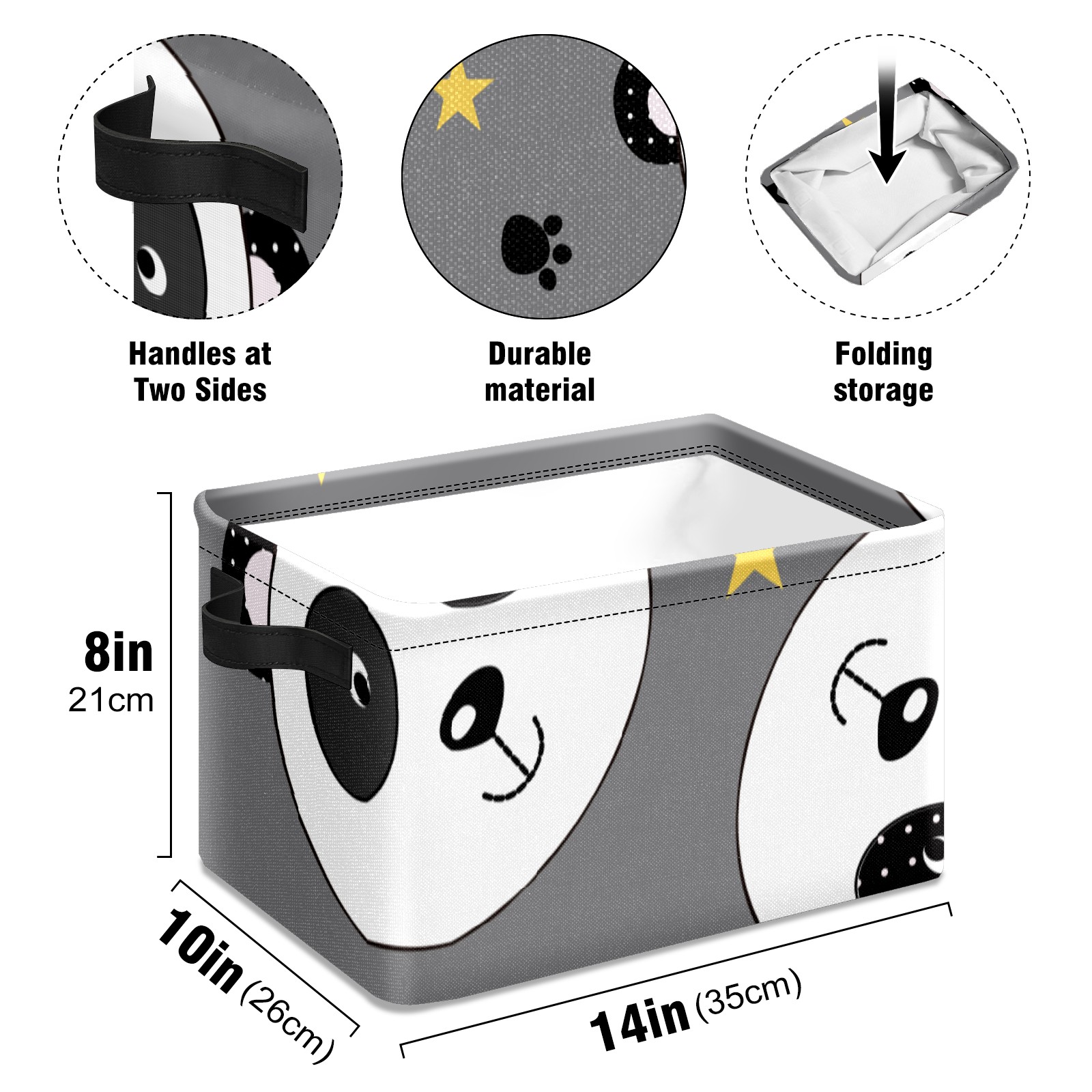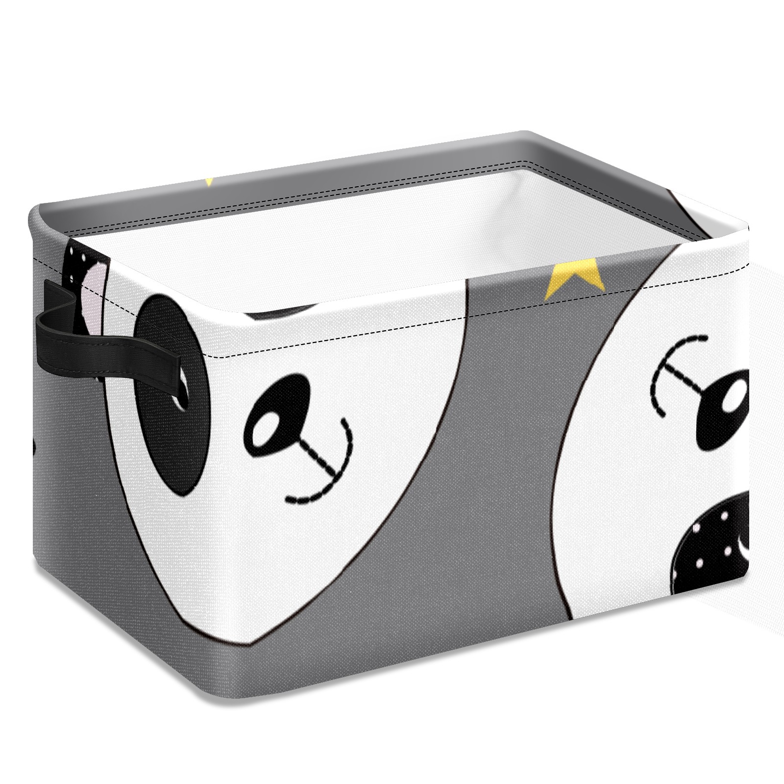 Collapsible 600D Oxford Storage Basket with Cute Panda Wearing Crown - Metal Frame 10"x14"x8" Reinforced Handles, Multi-Purpose Organizer
