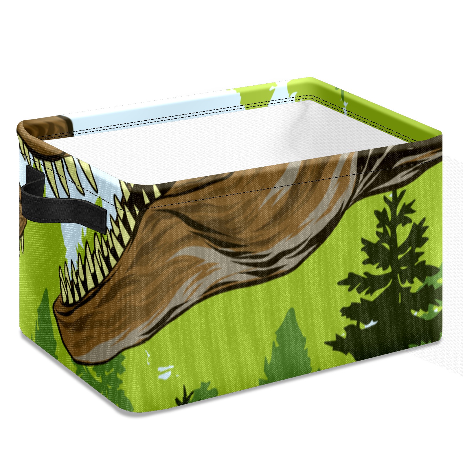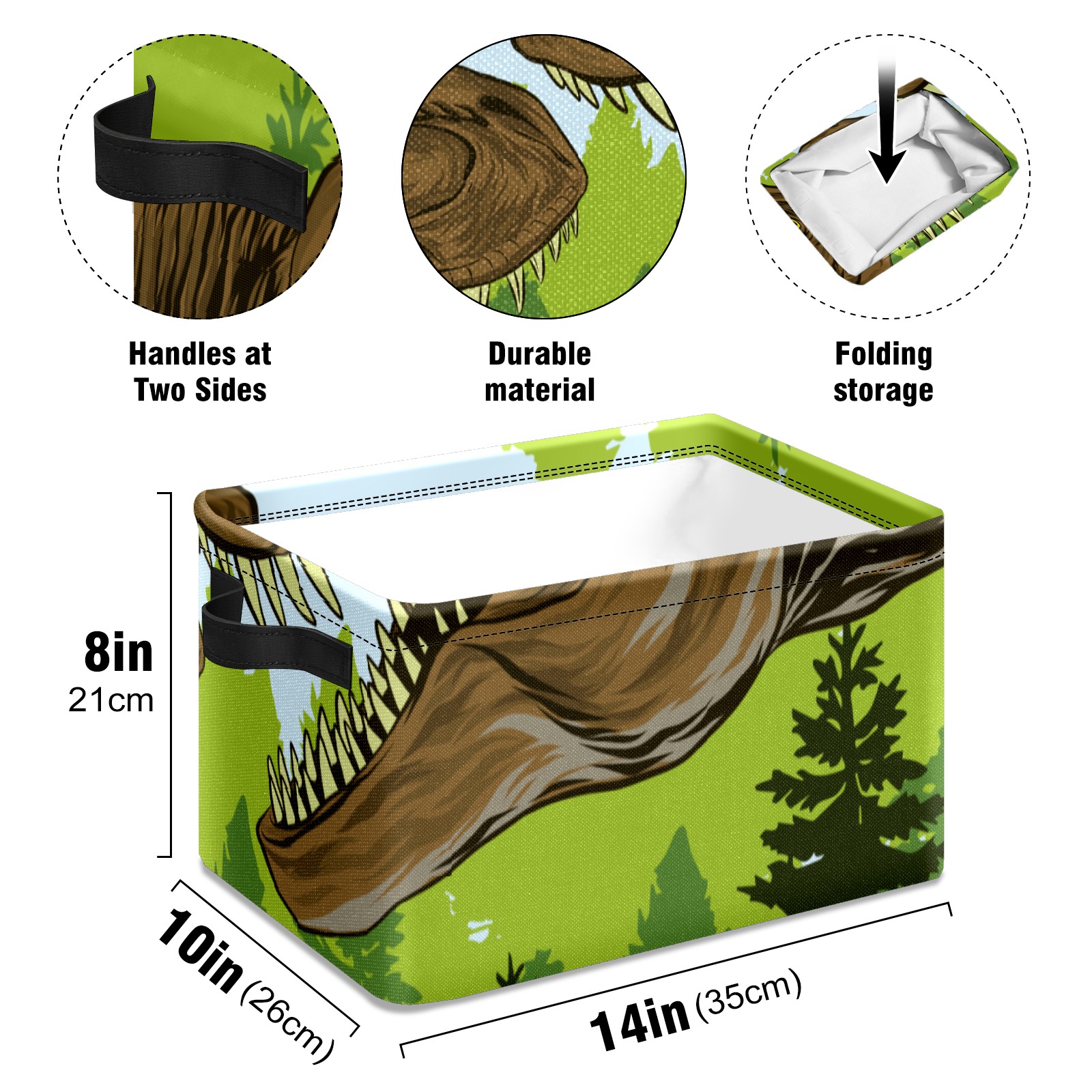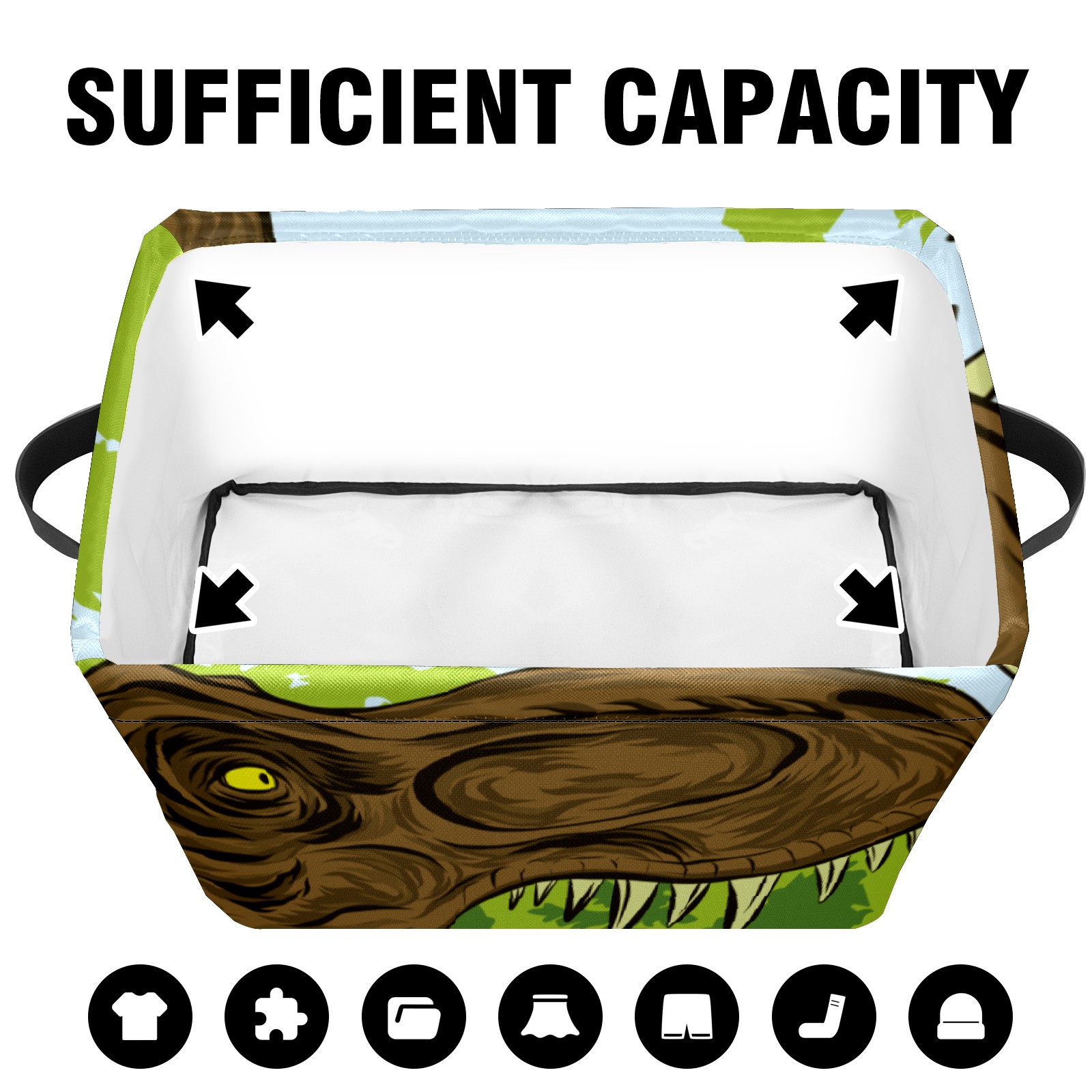 Collapsible 600D Oxford Storage Basket with Catoon Dinosaur-01 - Metal Frame 10"x14"x8" Reinforced Handles, Multi-Purpose Organizer