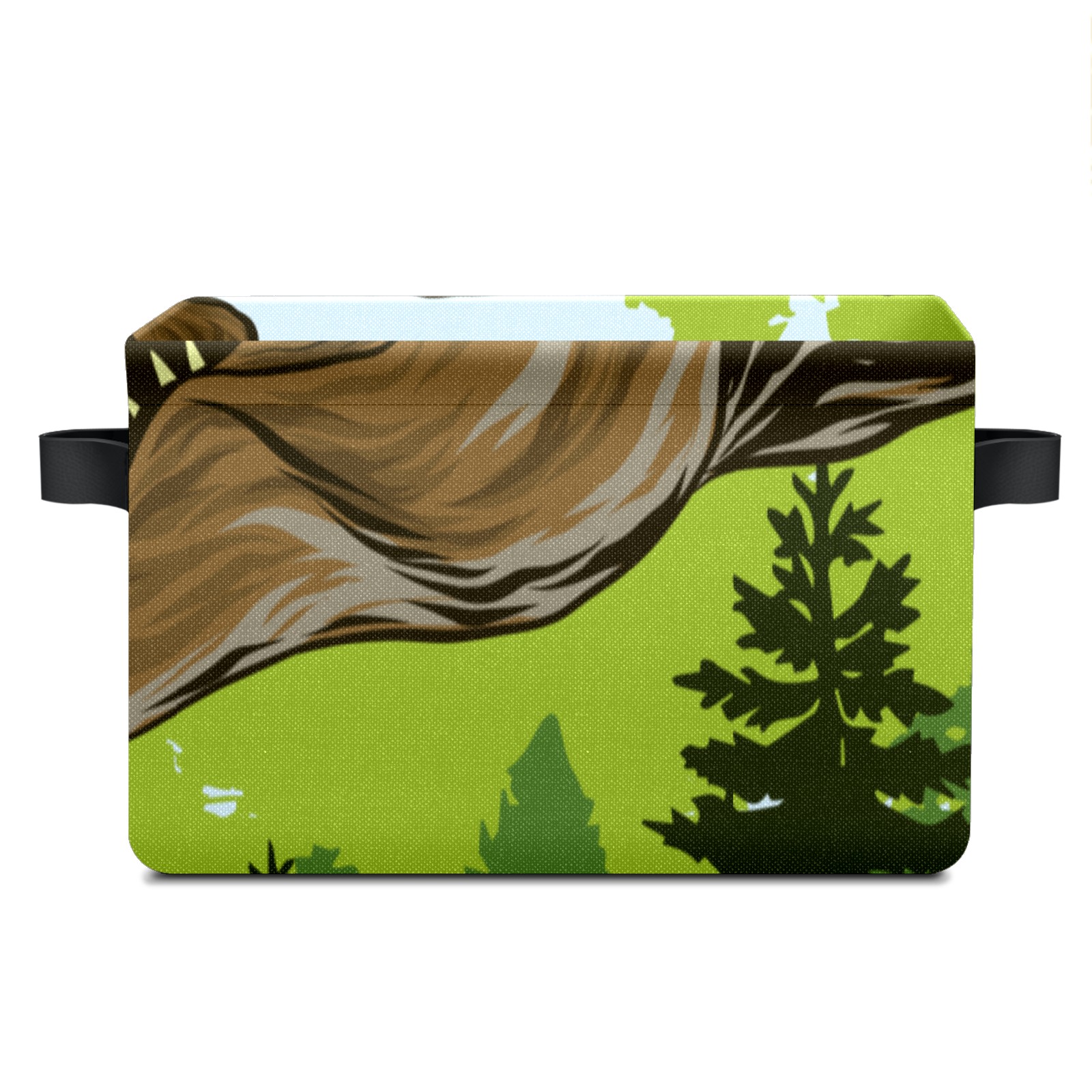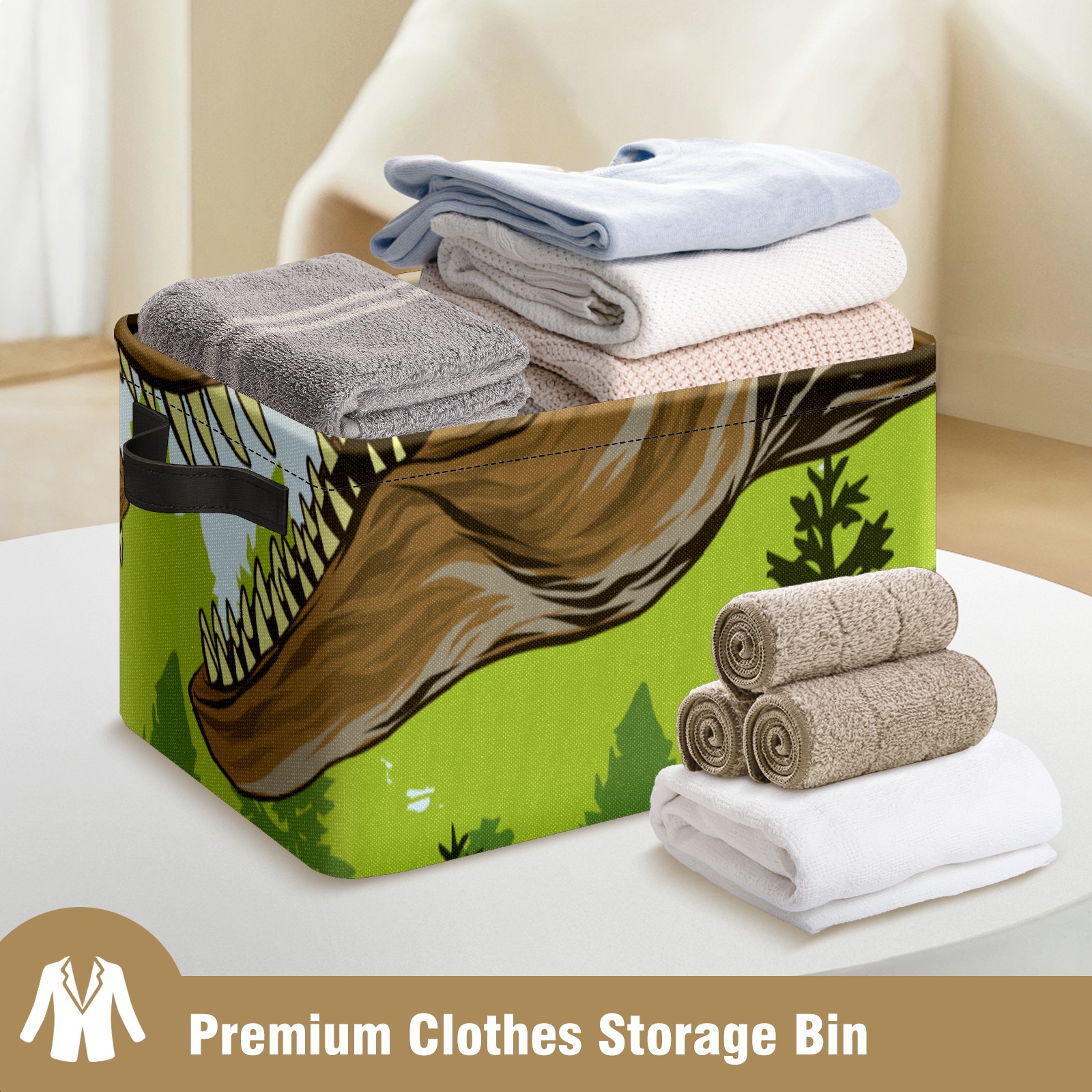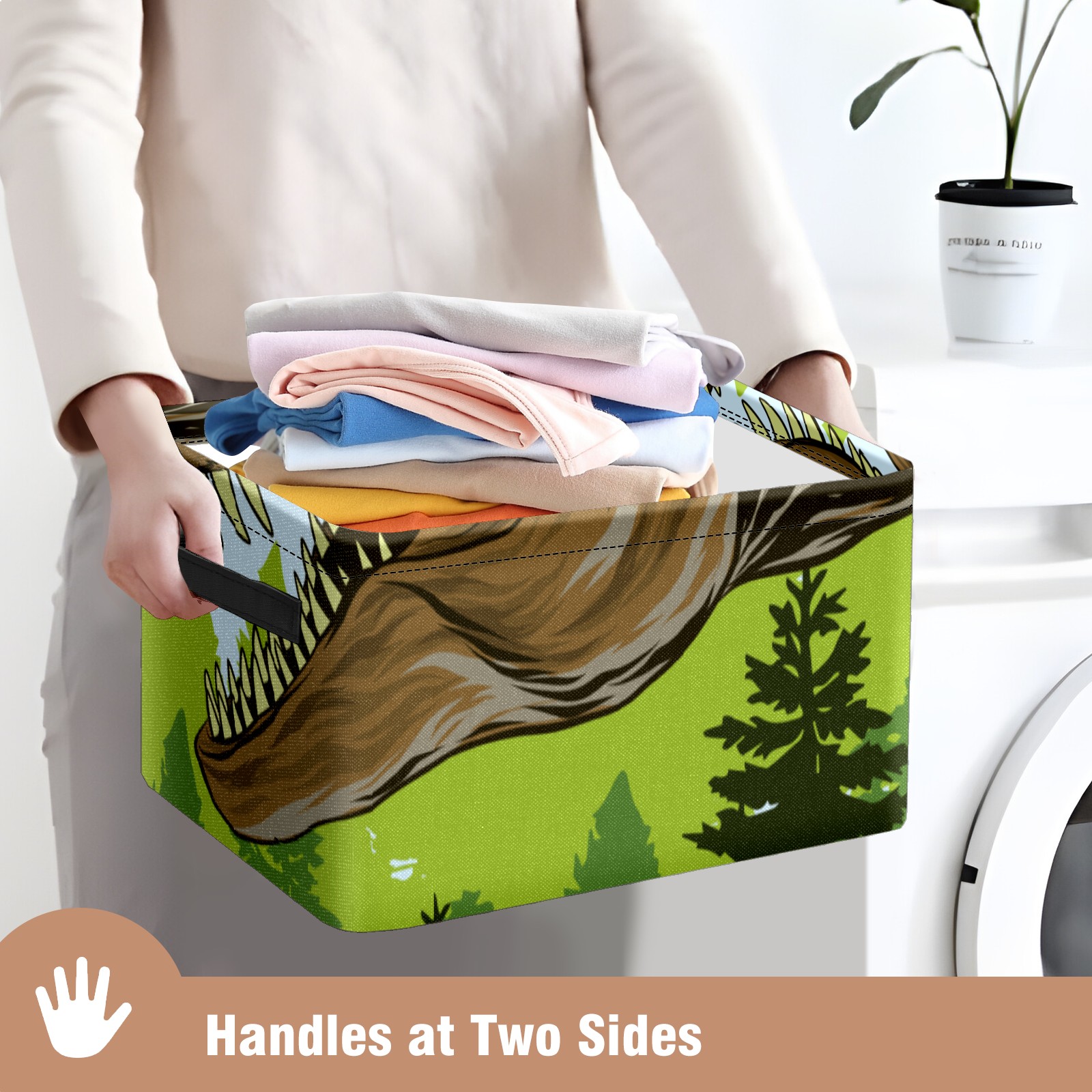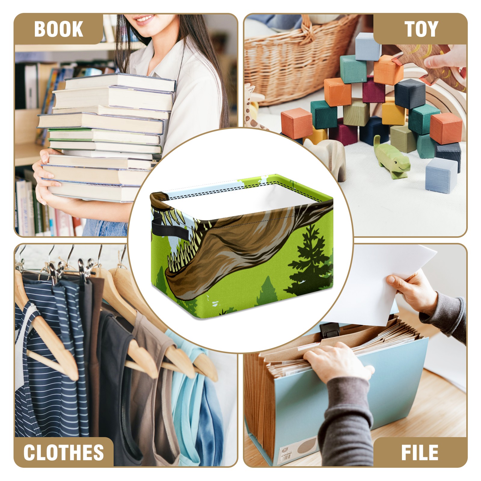 Collapsible 600D Oxford Storage Basket with Catoon Dinosaur-01 - Metal Frame 10"x14"x8" Reinforced Handles, Multi-Purpose Organizer