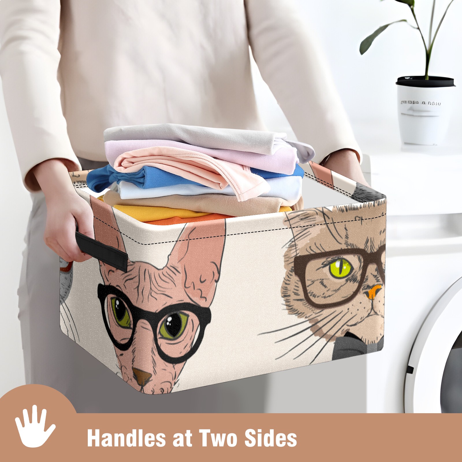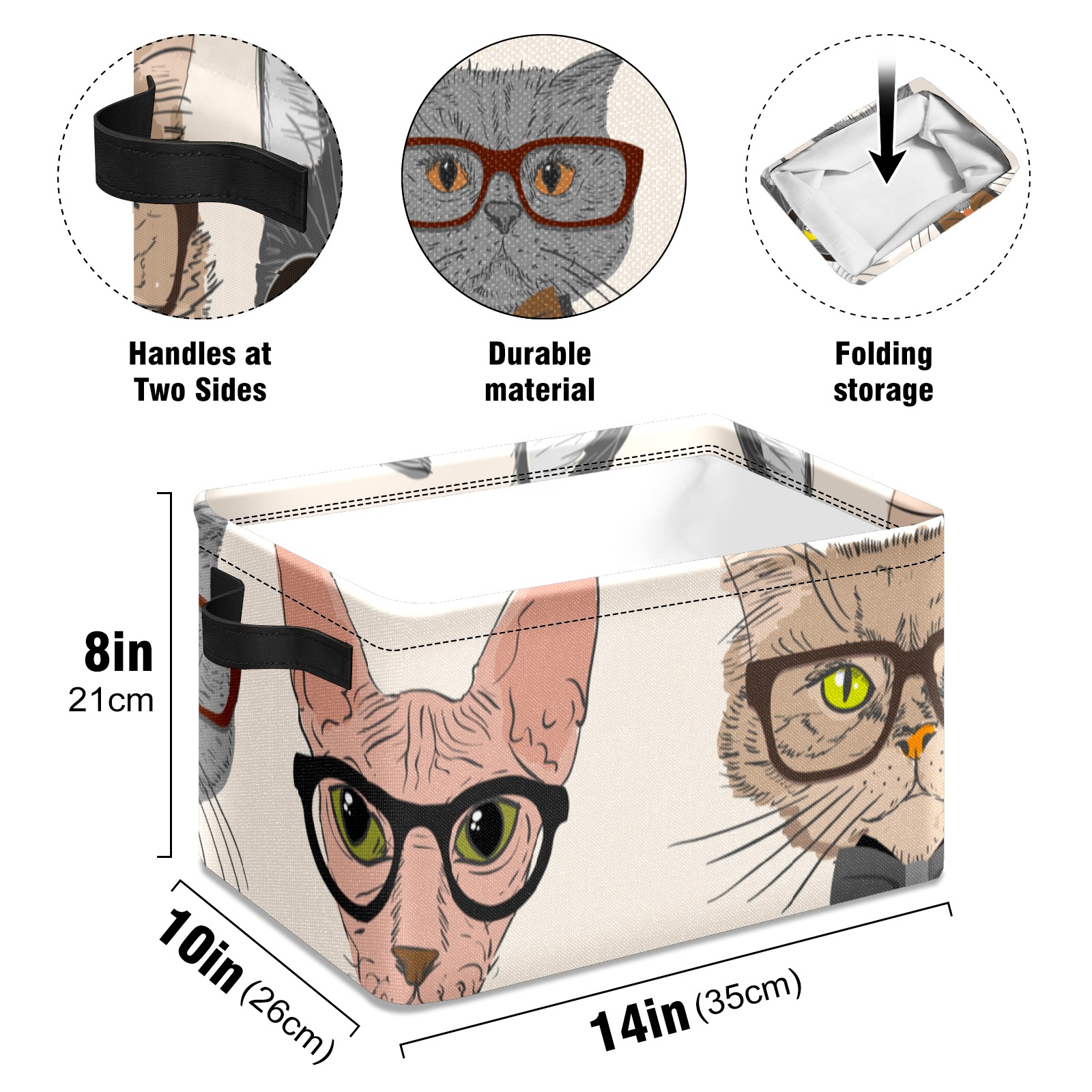 Collapsible 600D Oxford Storage Basket with Cartoon Cats - Metal Frame 10"x14"x8" Reinforced Handles, Multi-Purpose Organizer