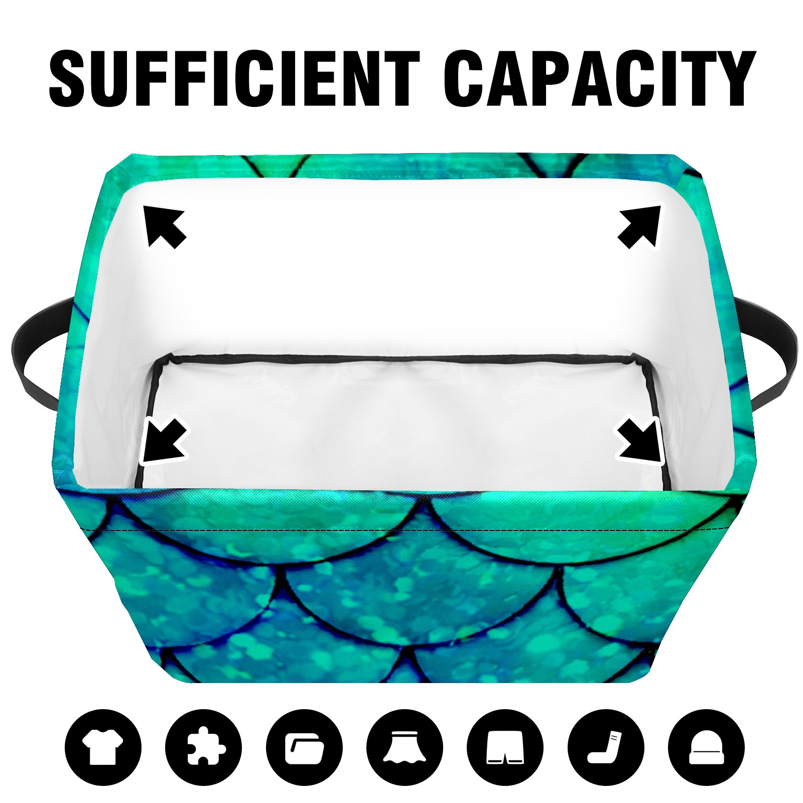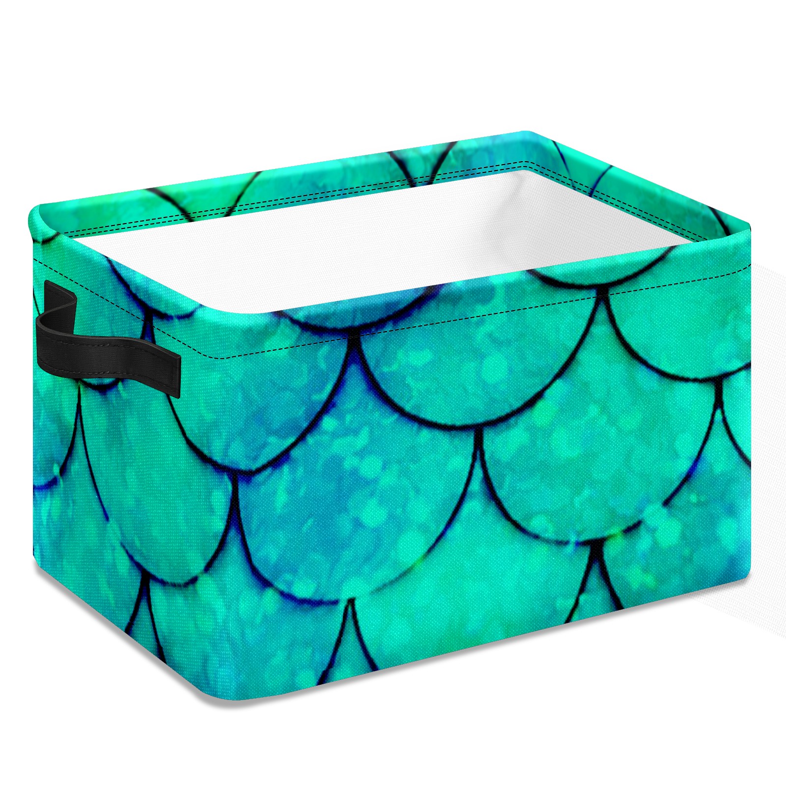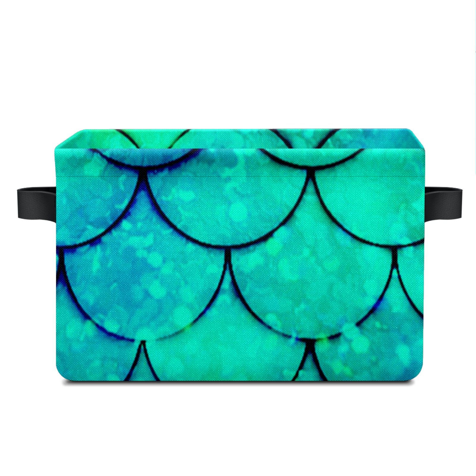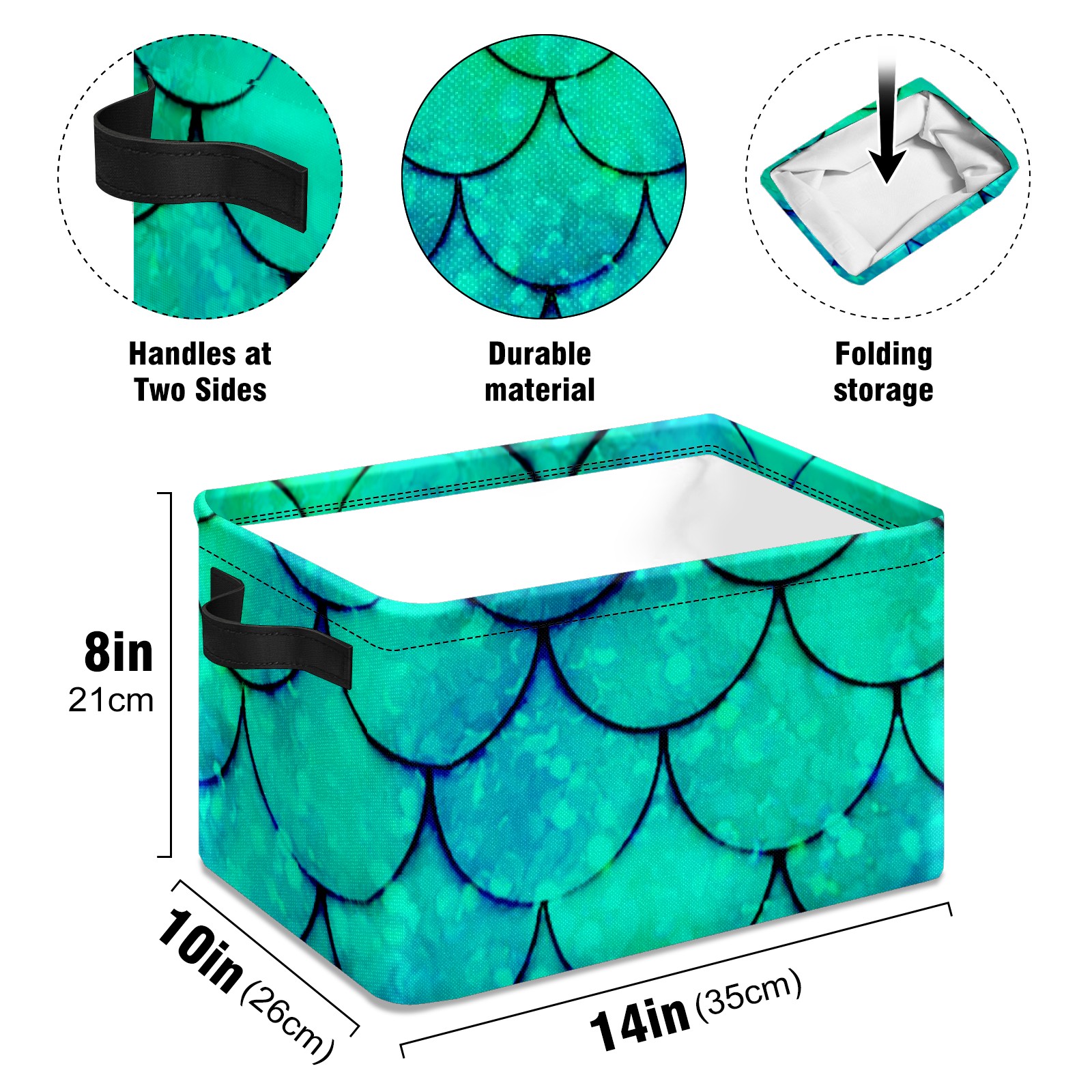 Collapsible 600D Oxford Storage Basket with Mermaid Green Scales - Metal Frame 10"x14"x8" Reinforced Handles, Multi-Purpose Organizer