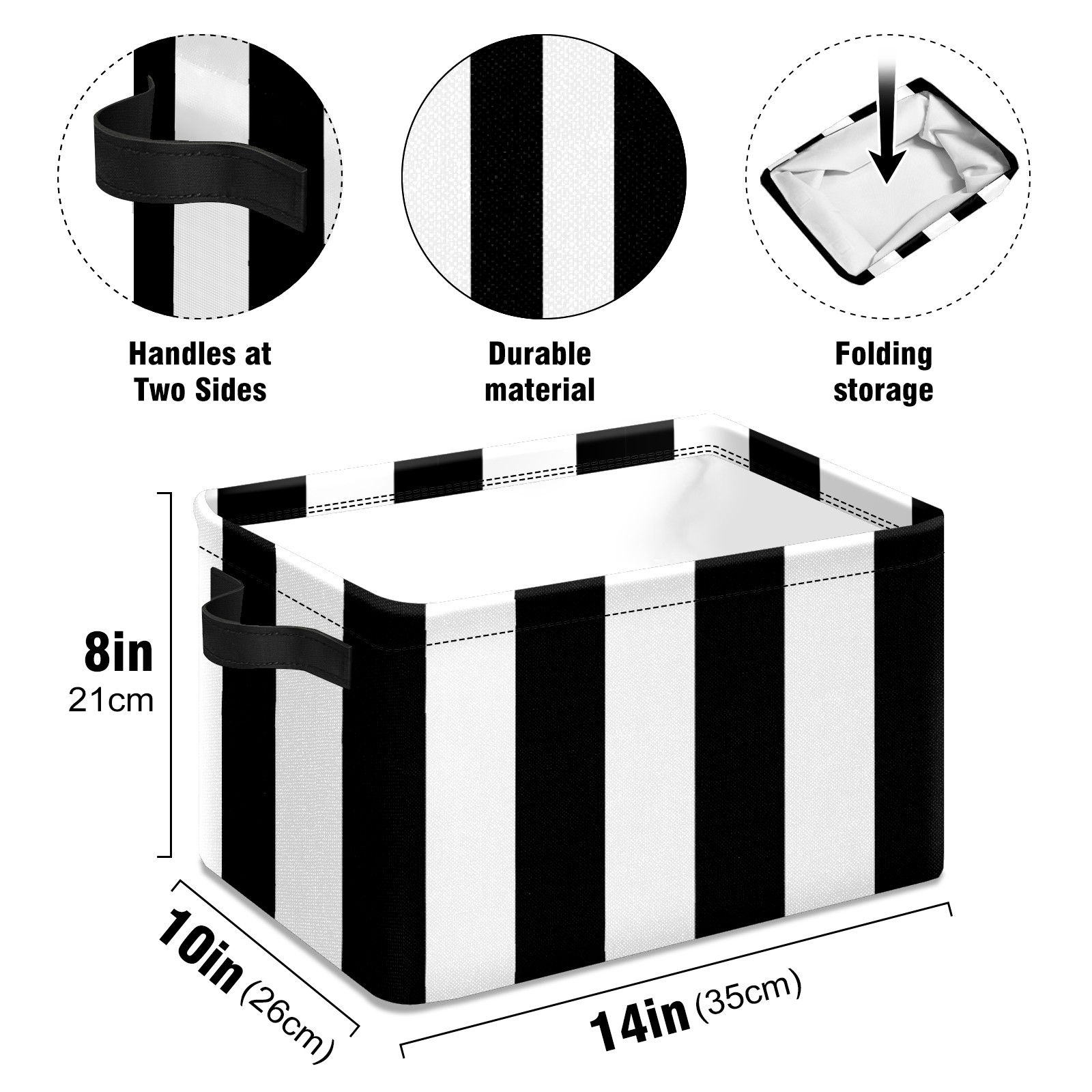 Collapsible 600D Oxford Storage Basket with Black & White Vertical Stripes - Metal Frame 10"x14"x8" Reinforced Handles, Multi-Purpose Organizer