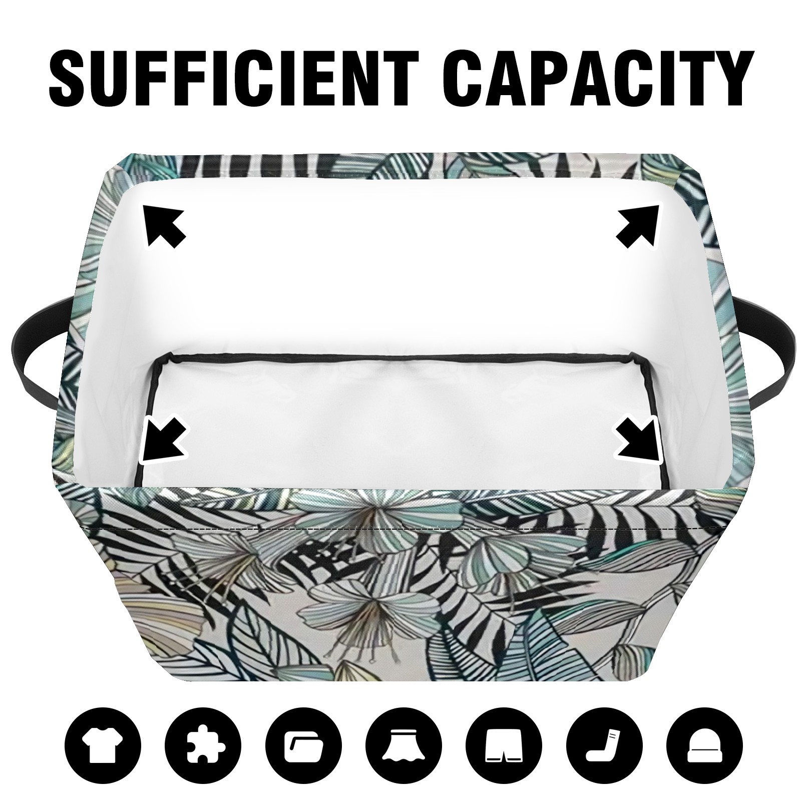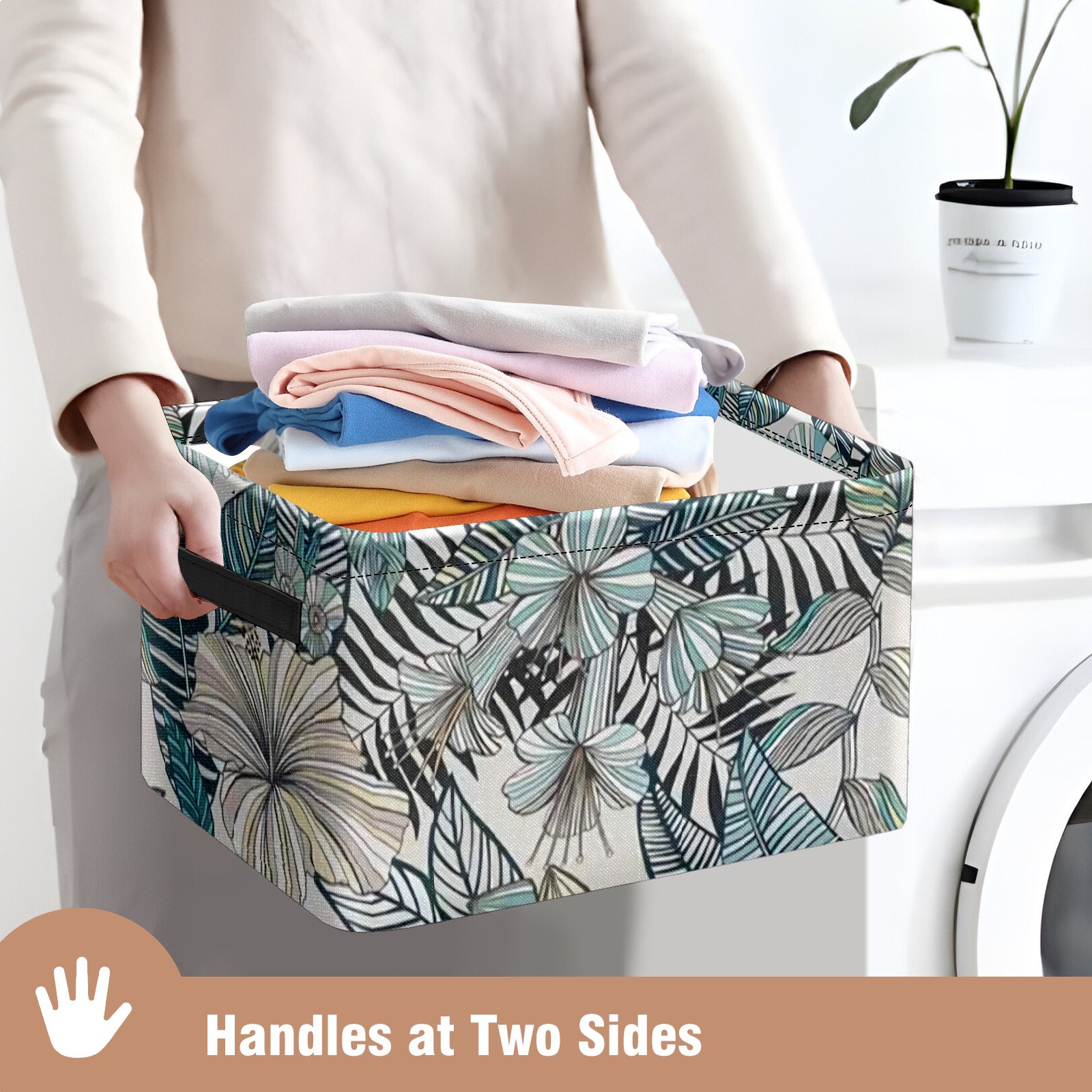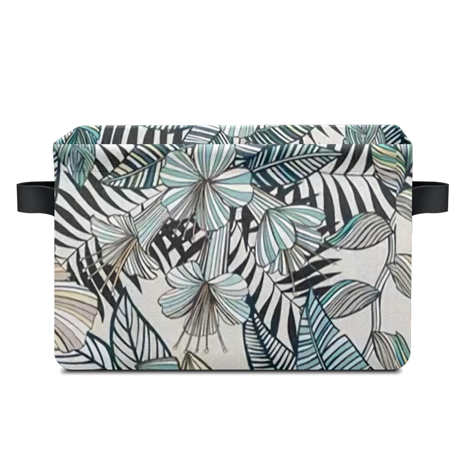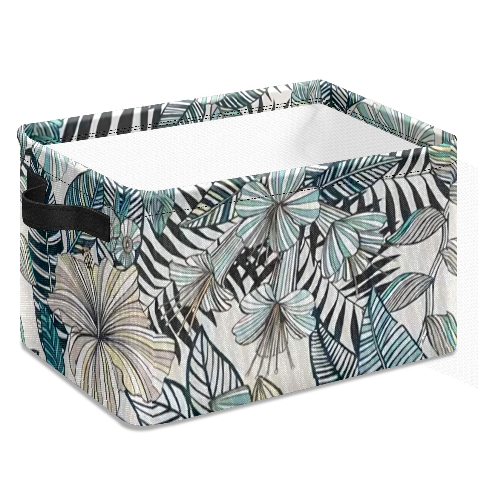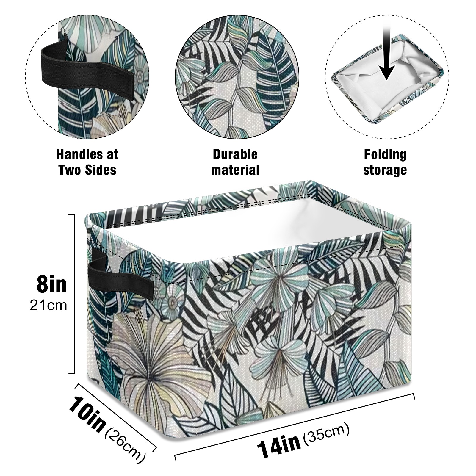Collapsible 600D Oxford Storage Basket with Tropical Floral Pattern - Metal Frame 10"x14"x8" Reinforced Handles, Multi-Purpose Organizer