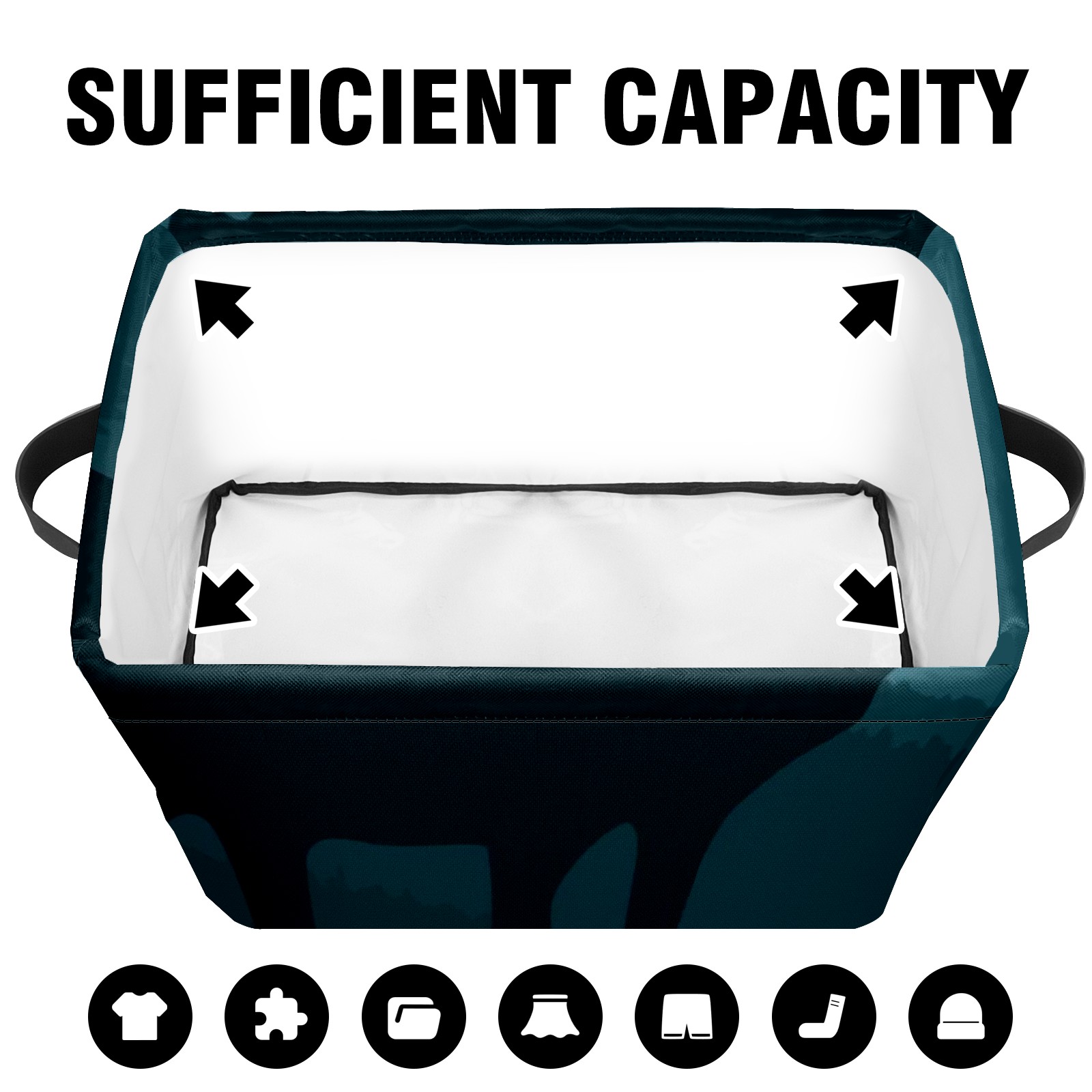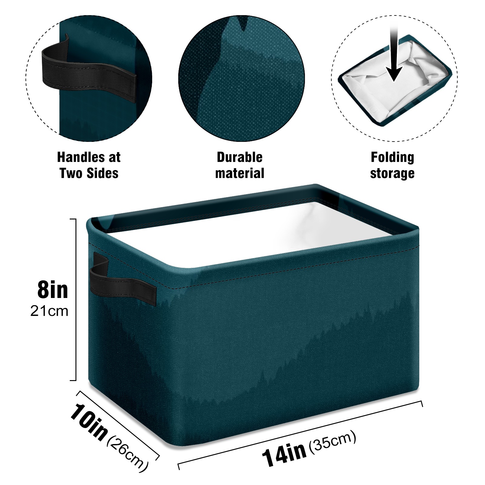 Collapsible 600D Oxford Storage Basket with Silhouette Moose On Rolling Hills Night - Metal Frame 10"x14"x8" Reinforced Handles, Multi-Purpose Organizer