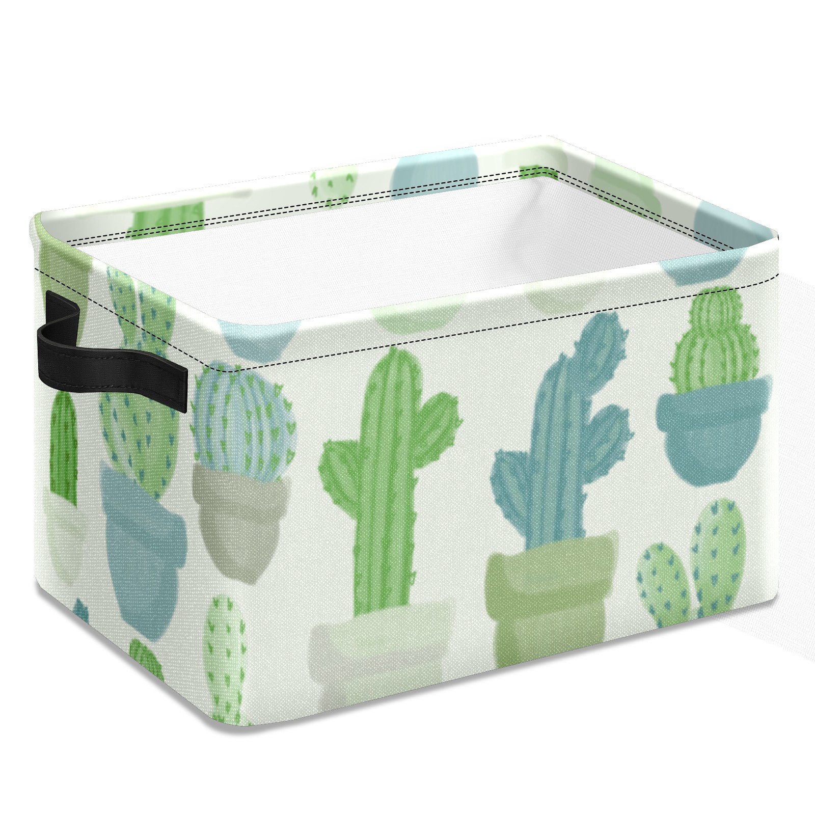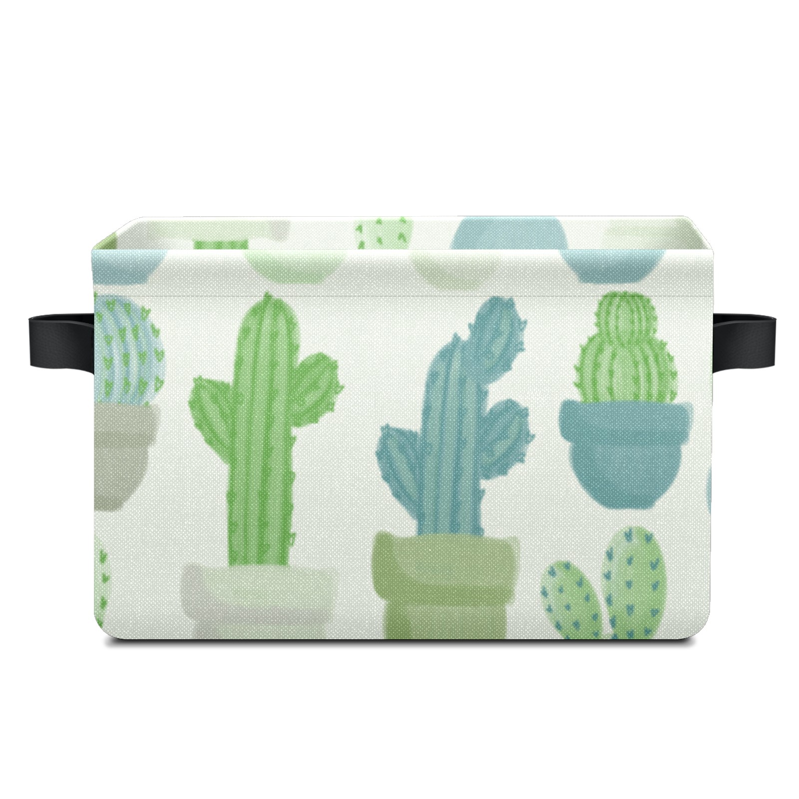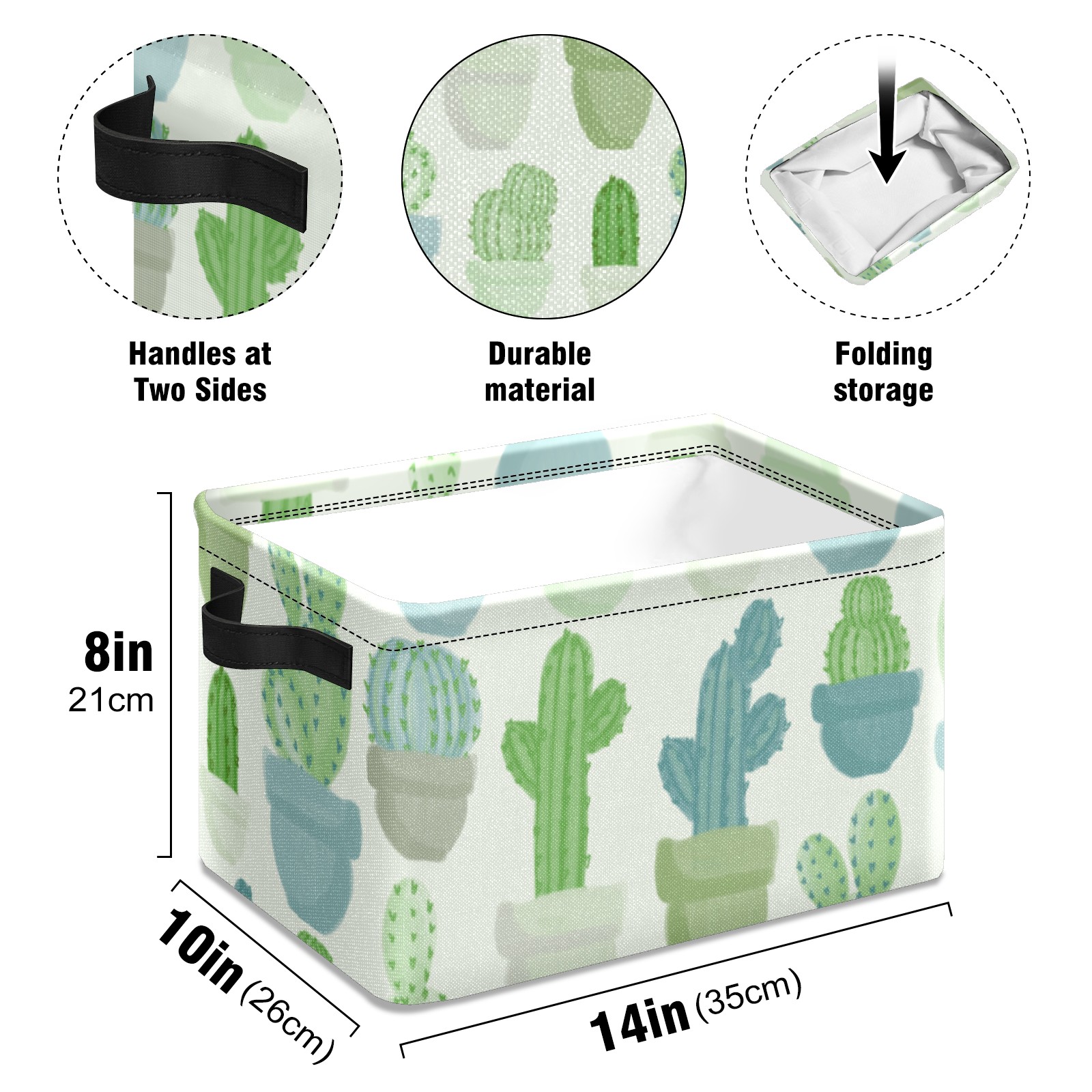 Collapsible 600D Oxford Storage Basket with Cacti Pattern - Metal Frame 10"x14"x8" Reinforced Handles, Multi-Purpose Organizer