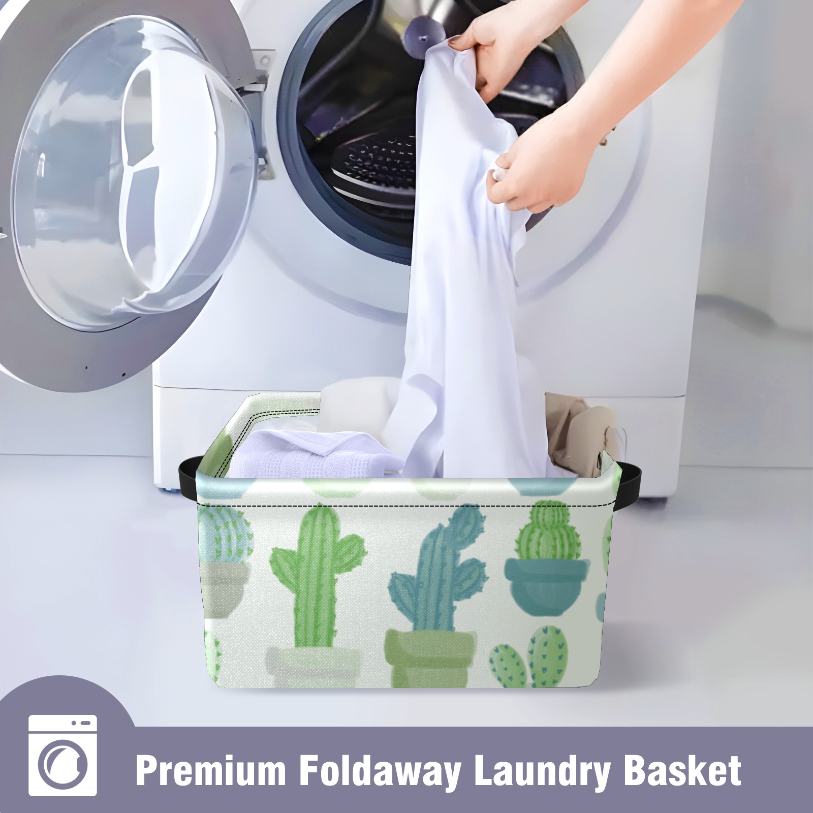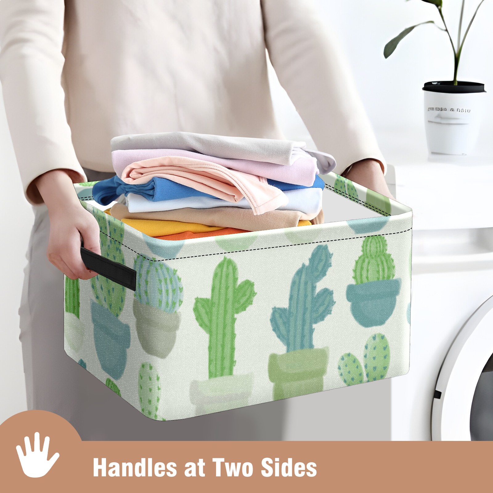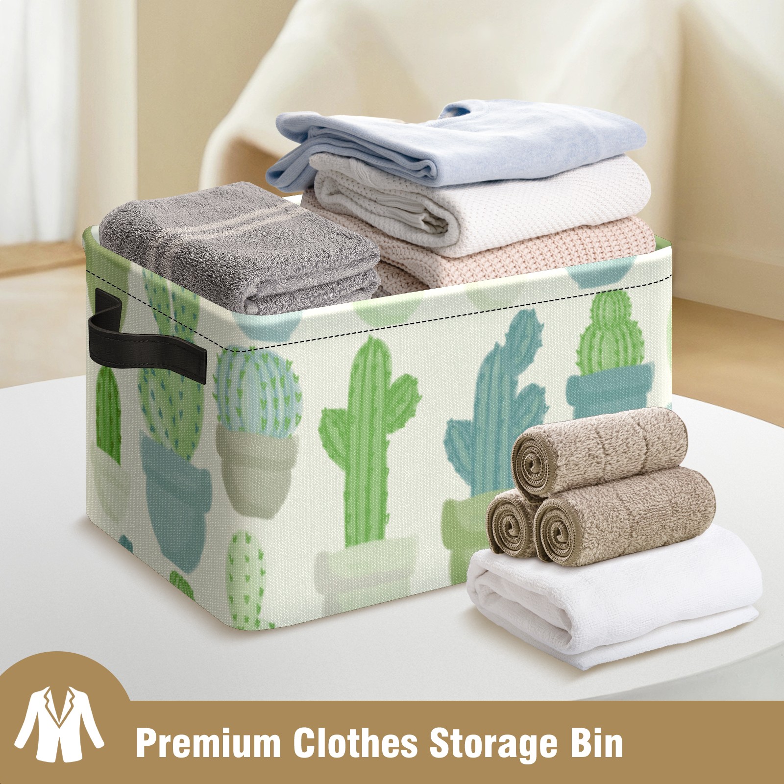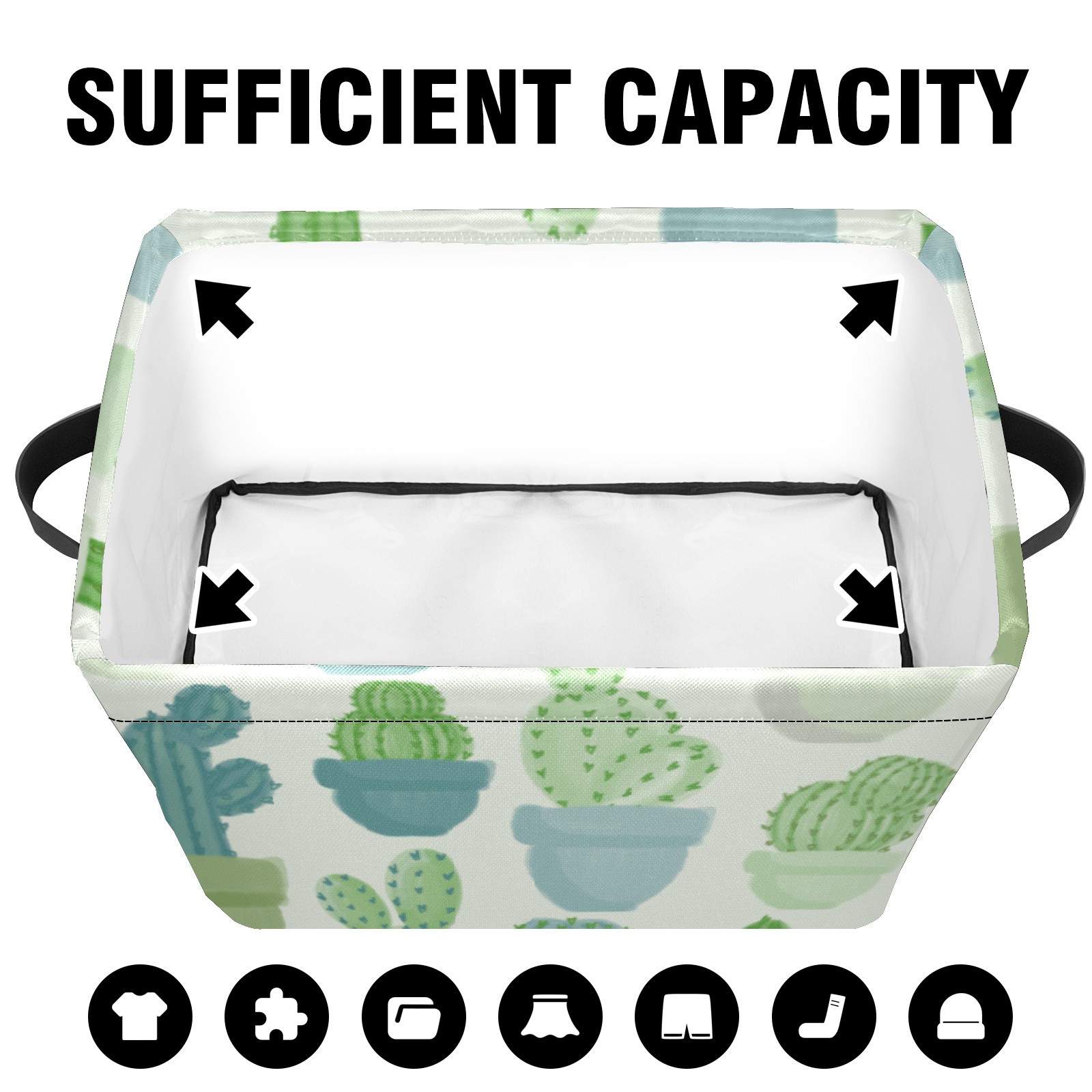 Collapsible 600D Oxford Storage Basket with Cacti Pattern - Metal Frame 10"x14"x8" Reinforced Handles, Multi-Purpose Organizer