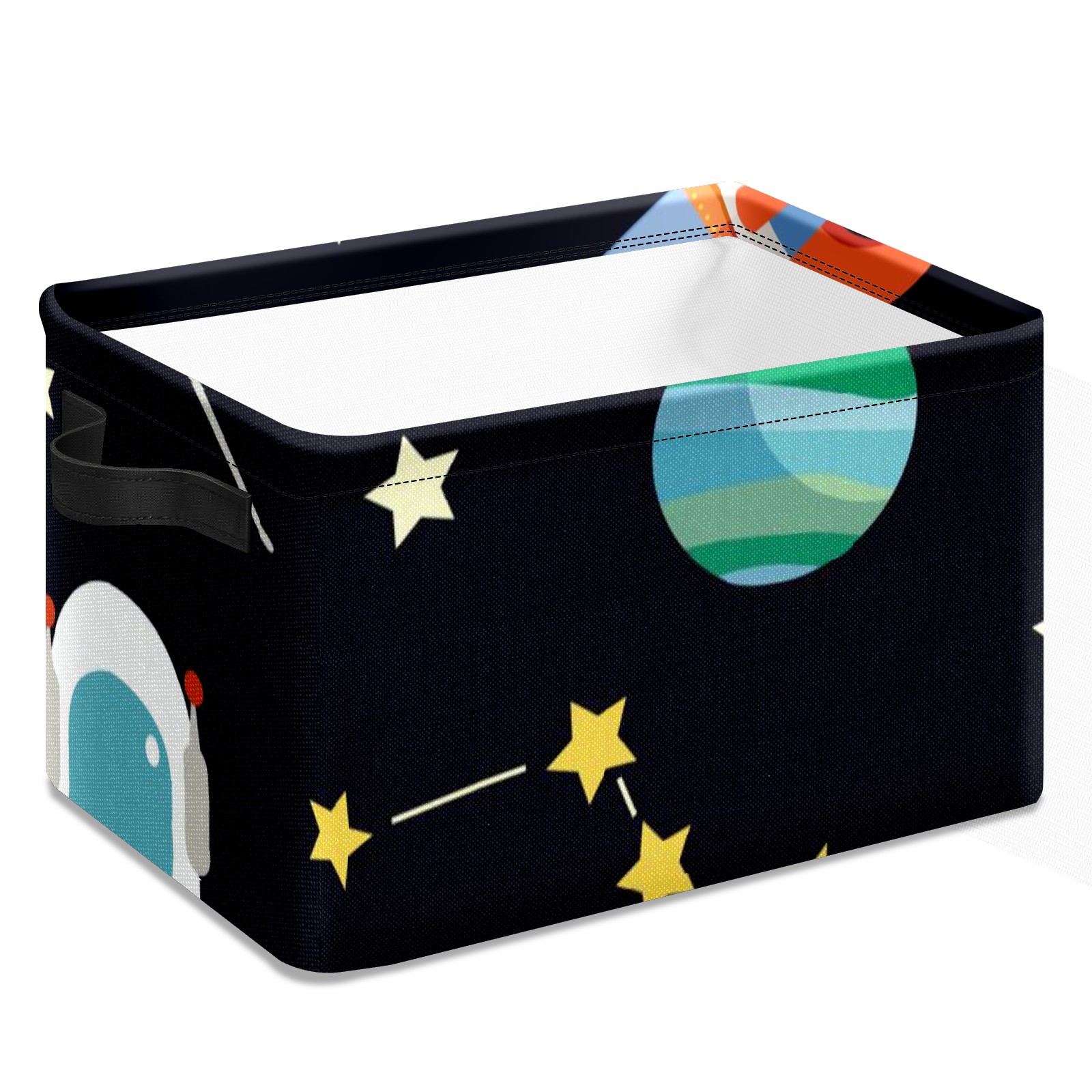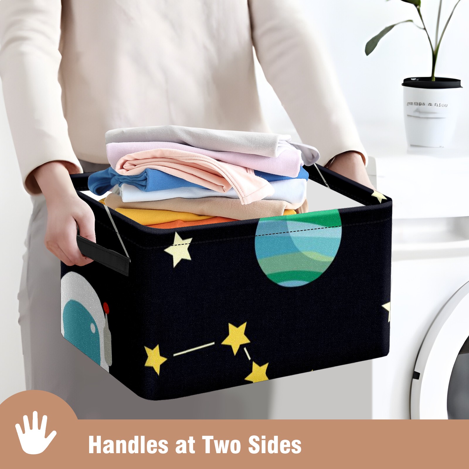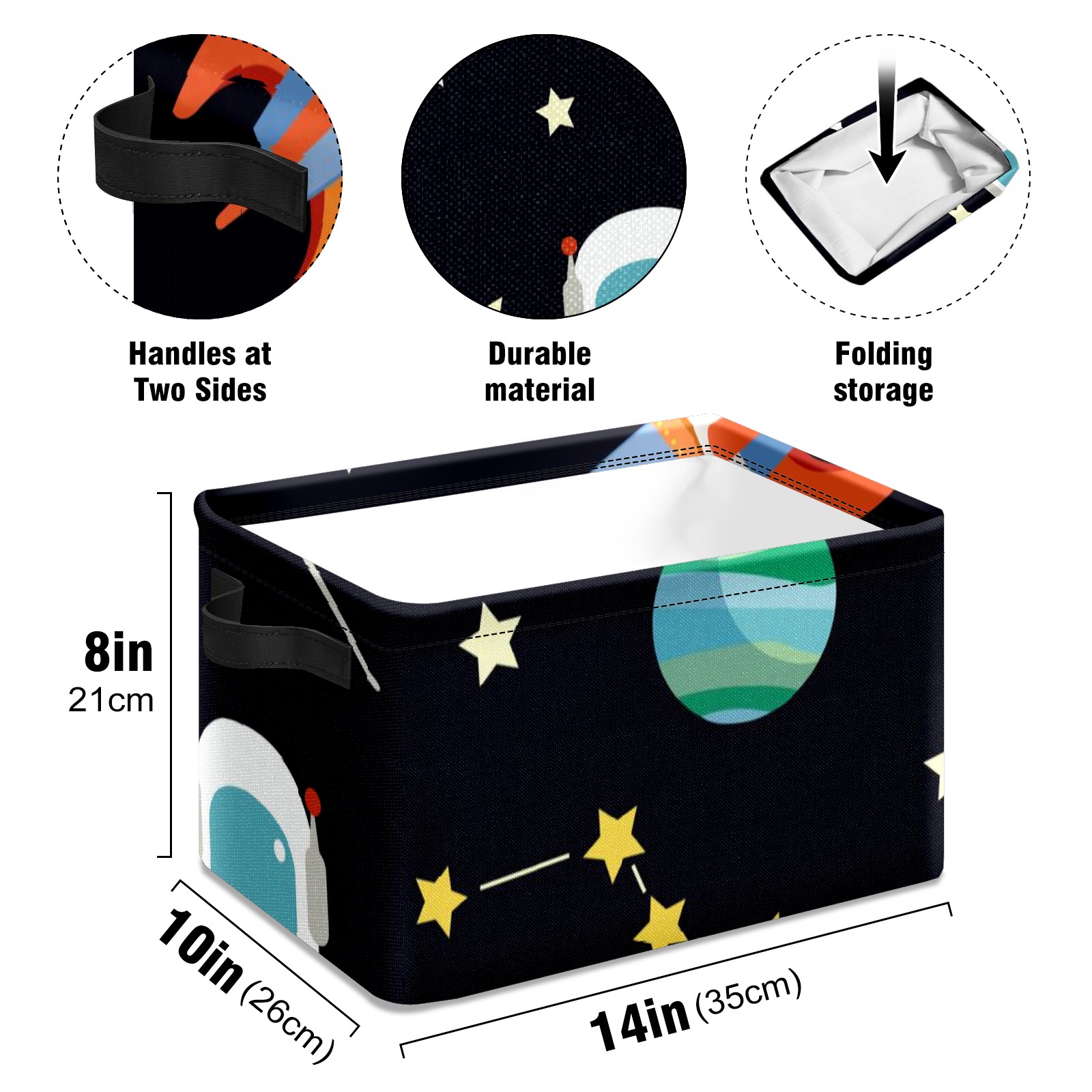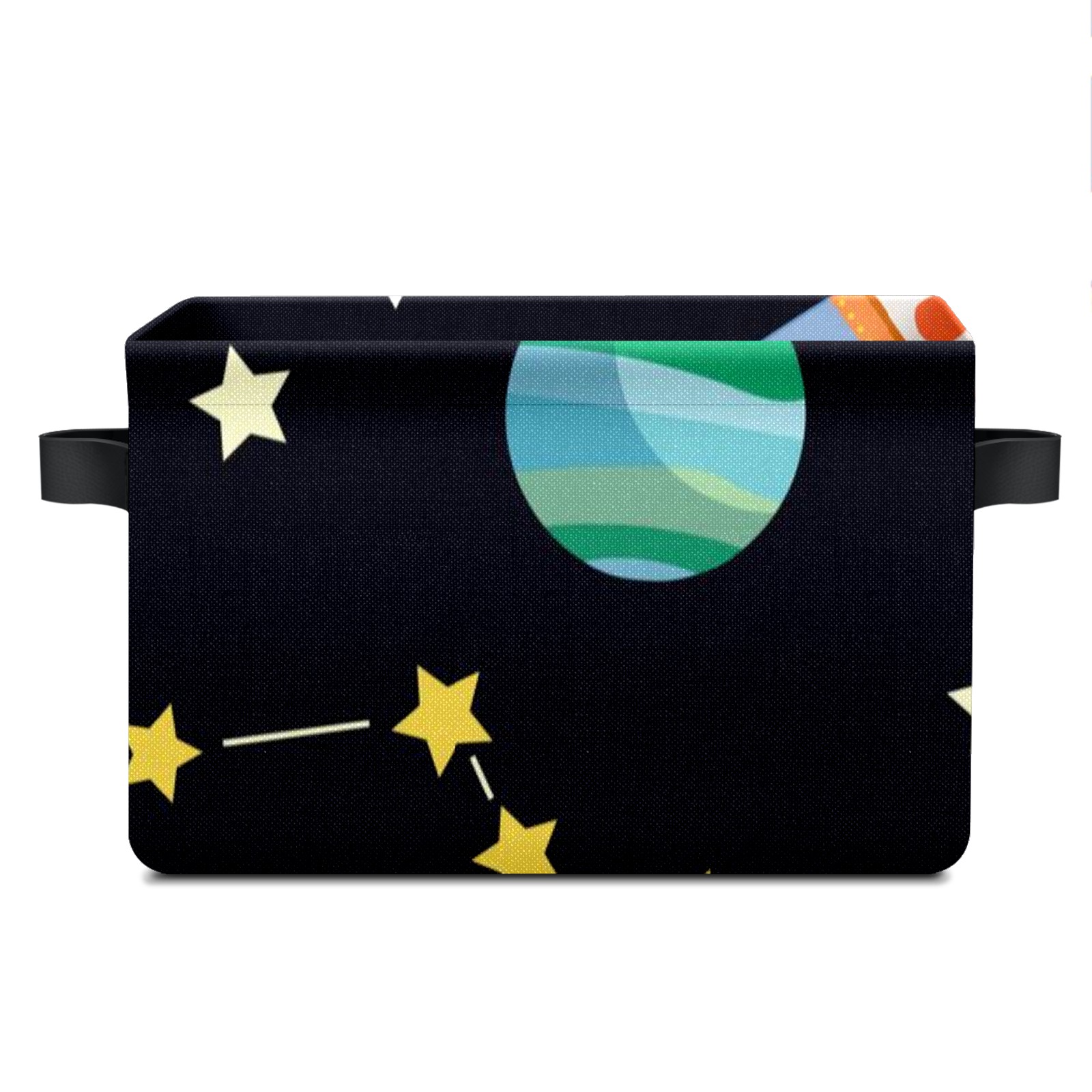 Collapsible 600D Oxford Storage Basket with Space Astronomy Planet Rocket Star UFO - Metal Frame 10"x14"x8" Reinforced Handles, Multi-Purpose Organizer