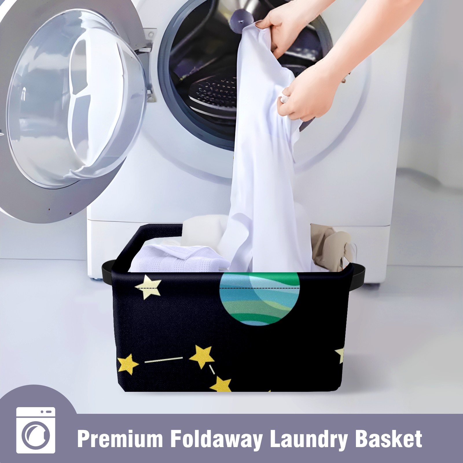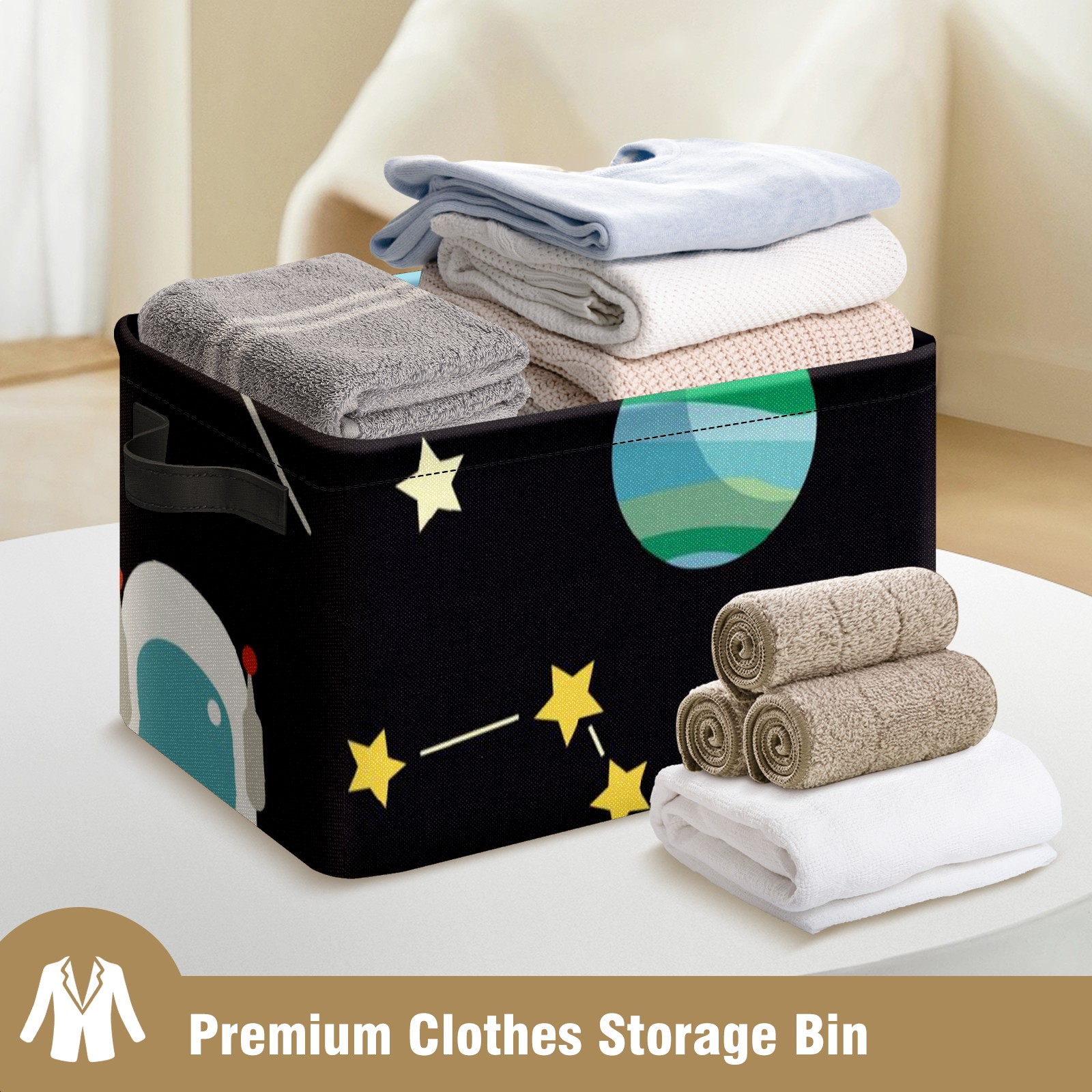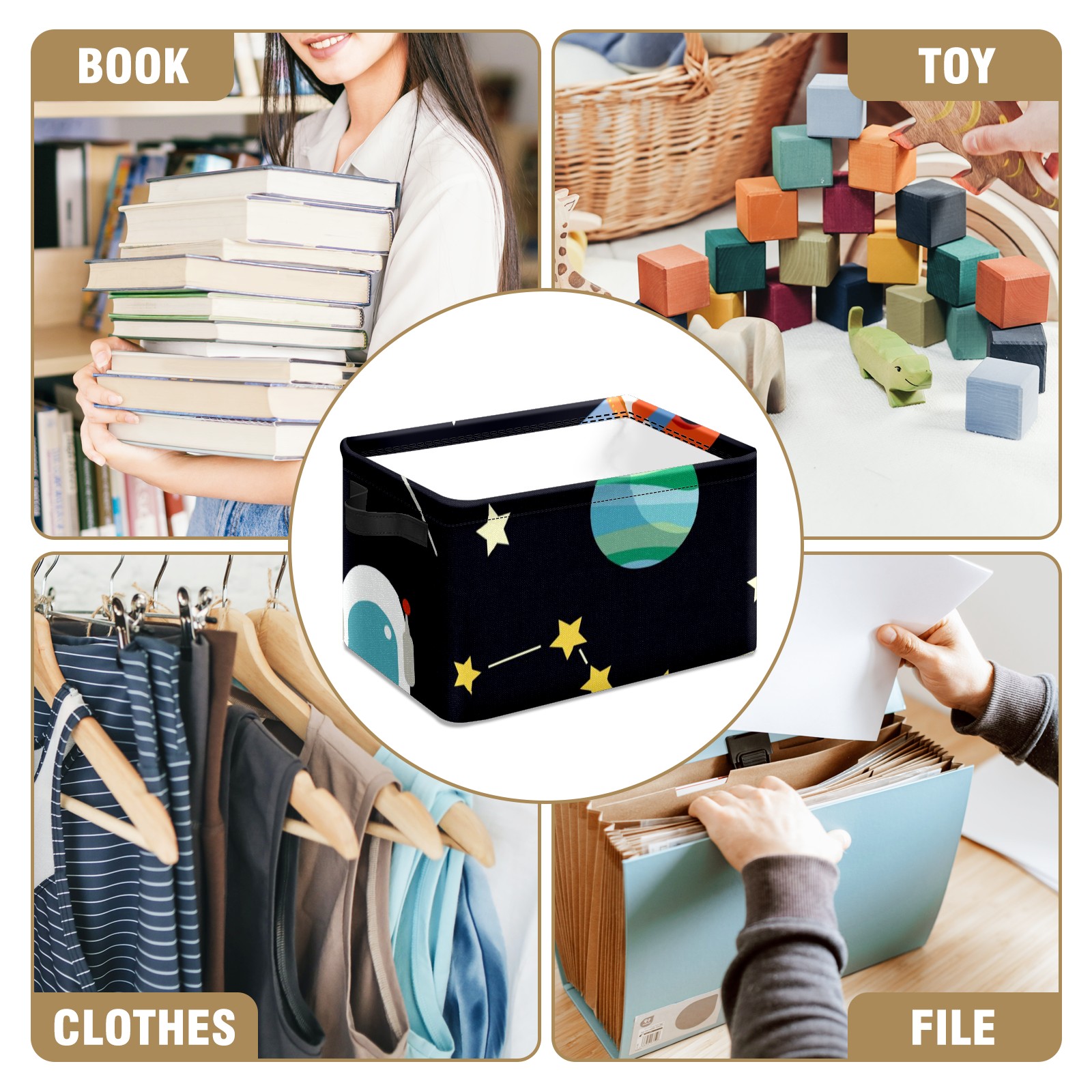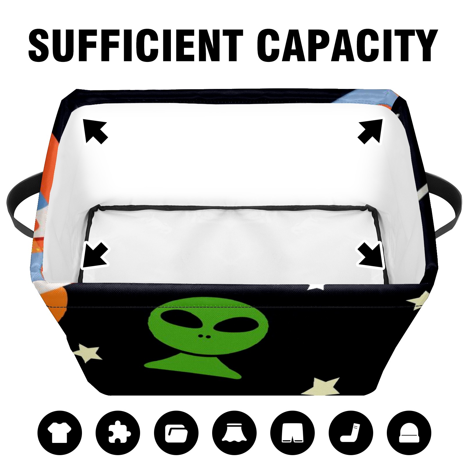 Collapsible 600D Oxford Storage Basket with Space Astronomy Planet Rocket Star UFO - Metal Frame 10"x14"x8" Reinforced Handles, Multi-Purpose Organizer