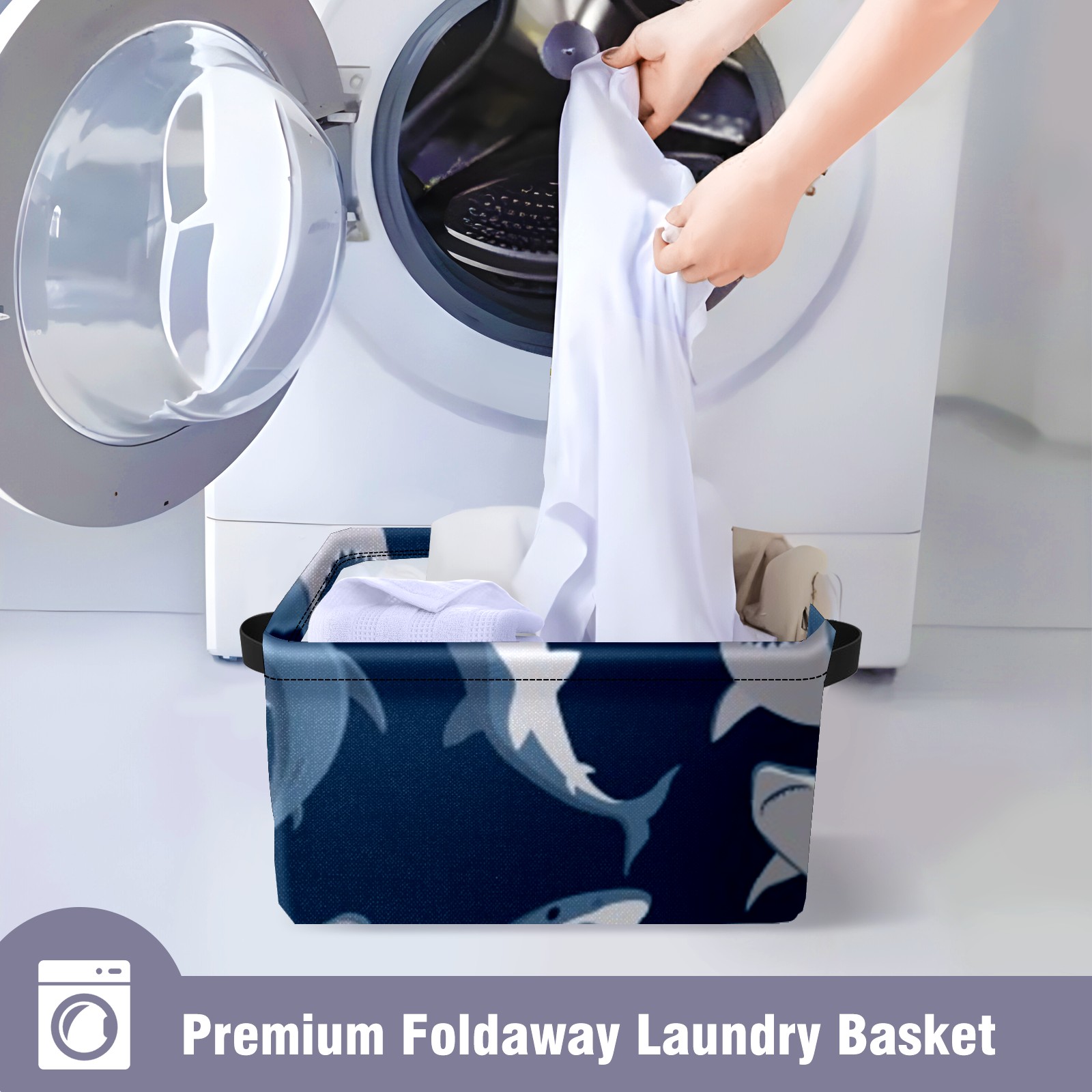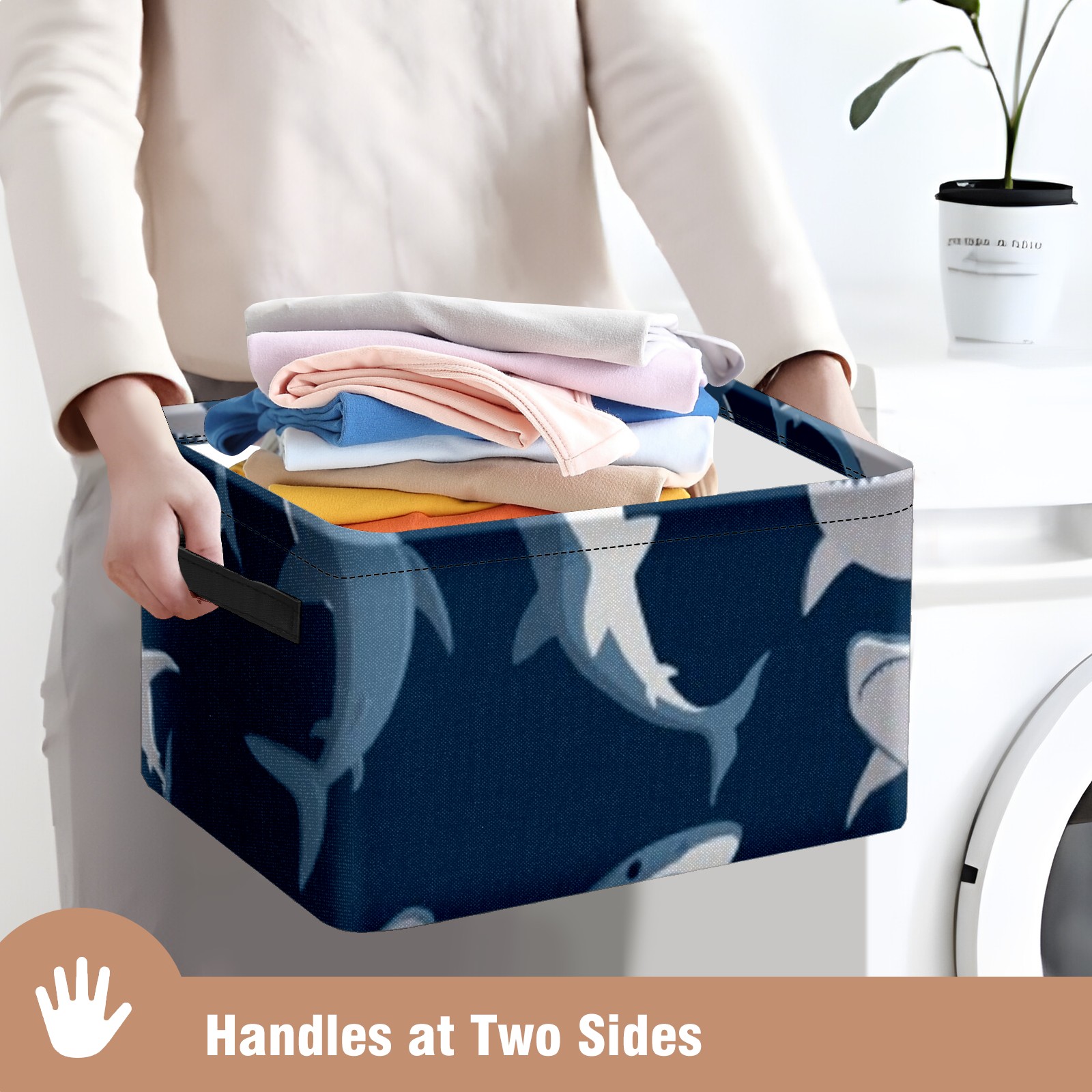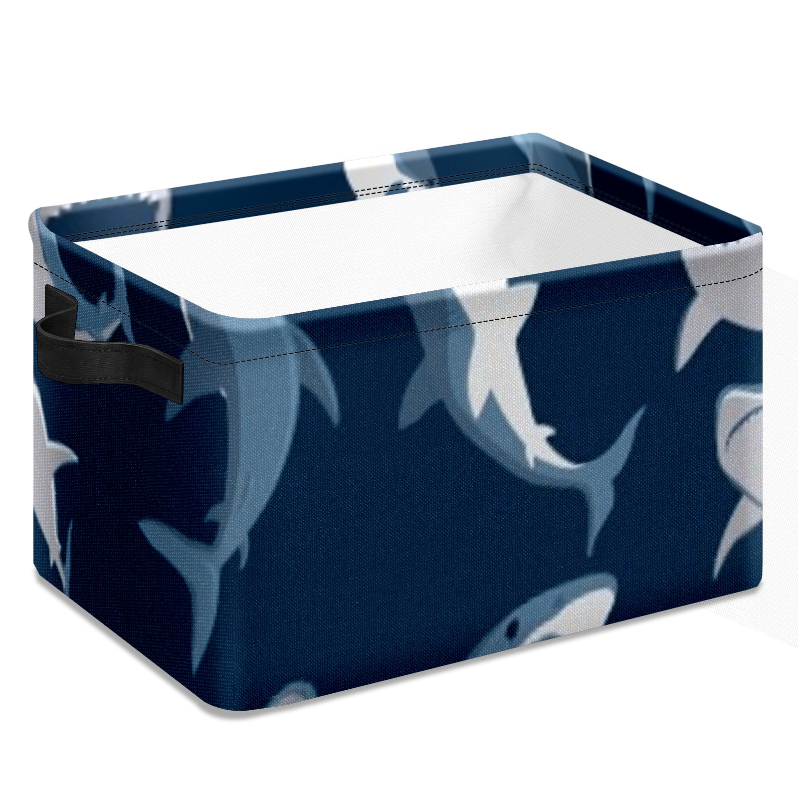 Collapsible 600D Oxford Storage Basket with Shark Pattern - Metal Frame 10"x14"x8" Reinforced Handles, Multi-Purpose Organizer