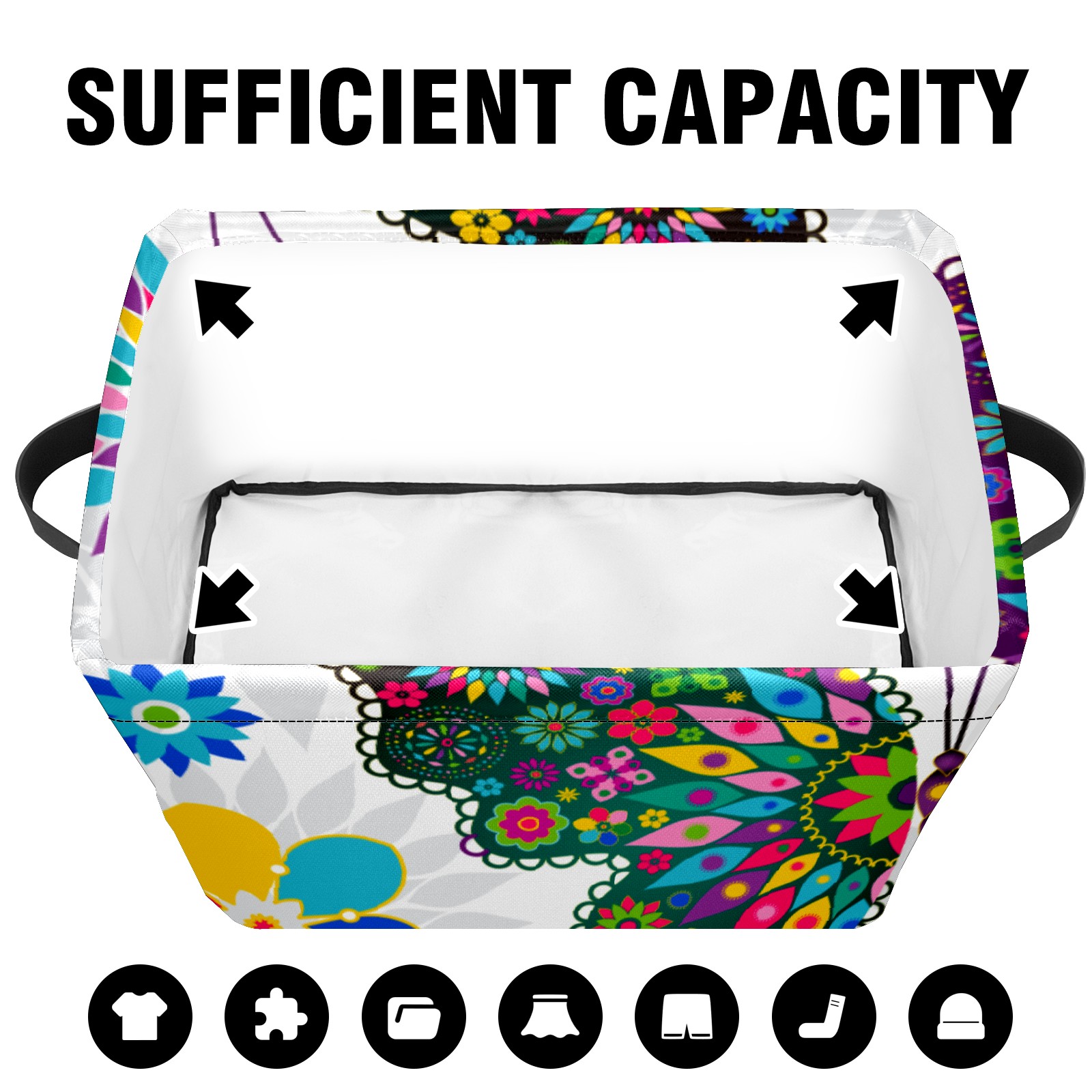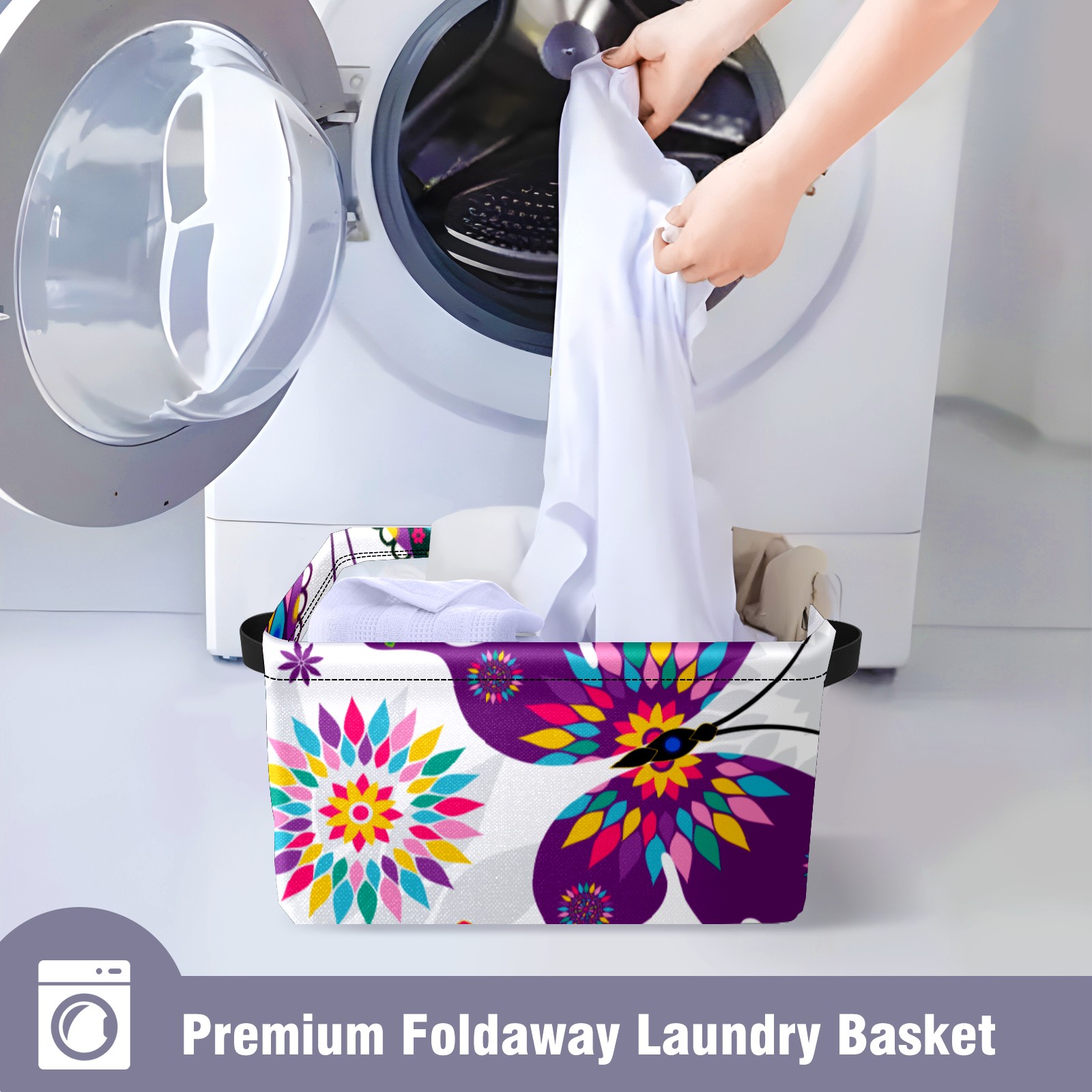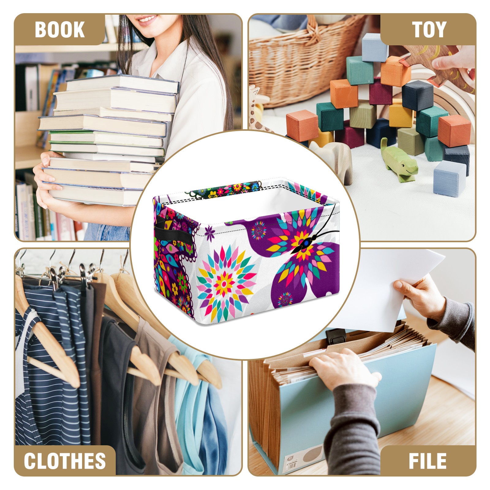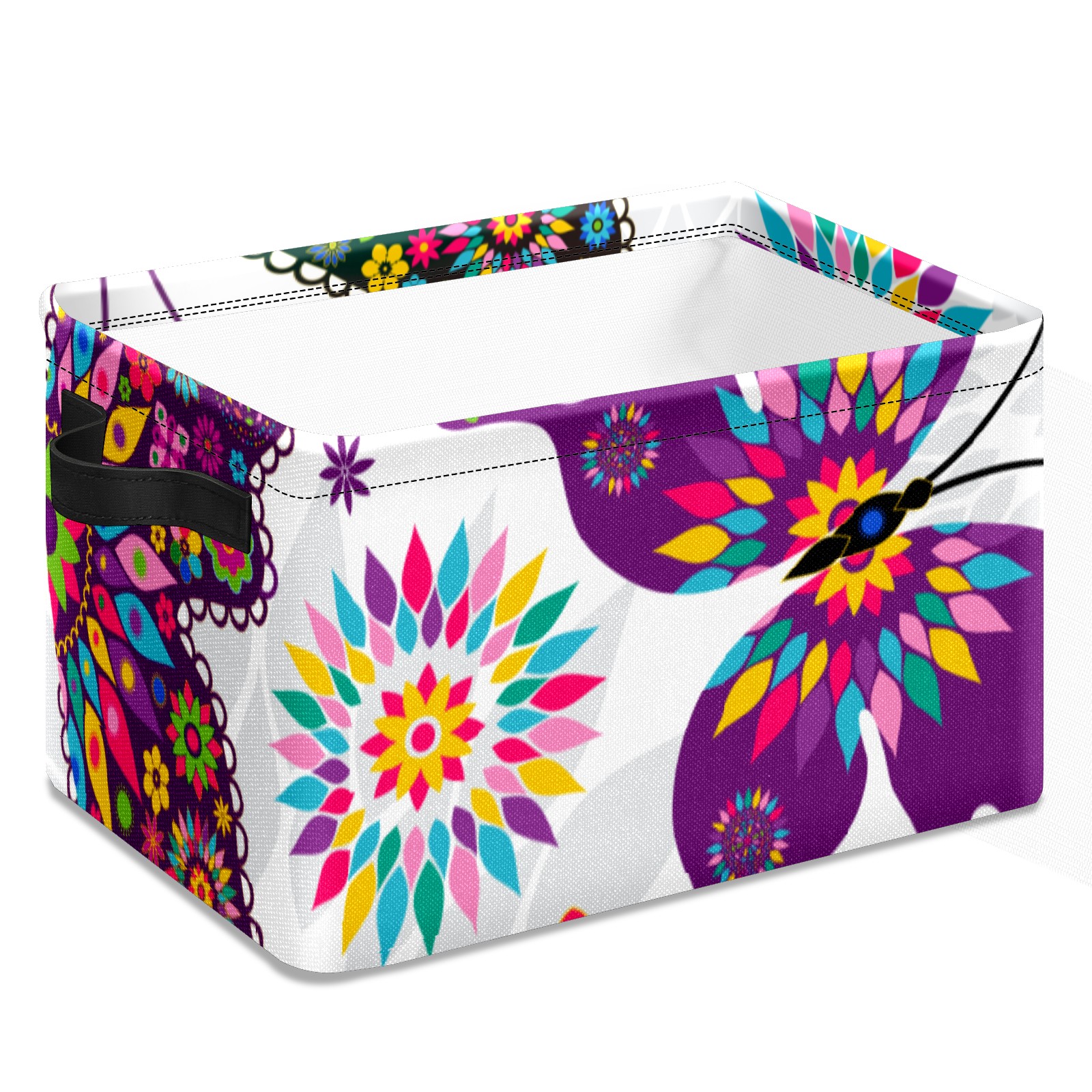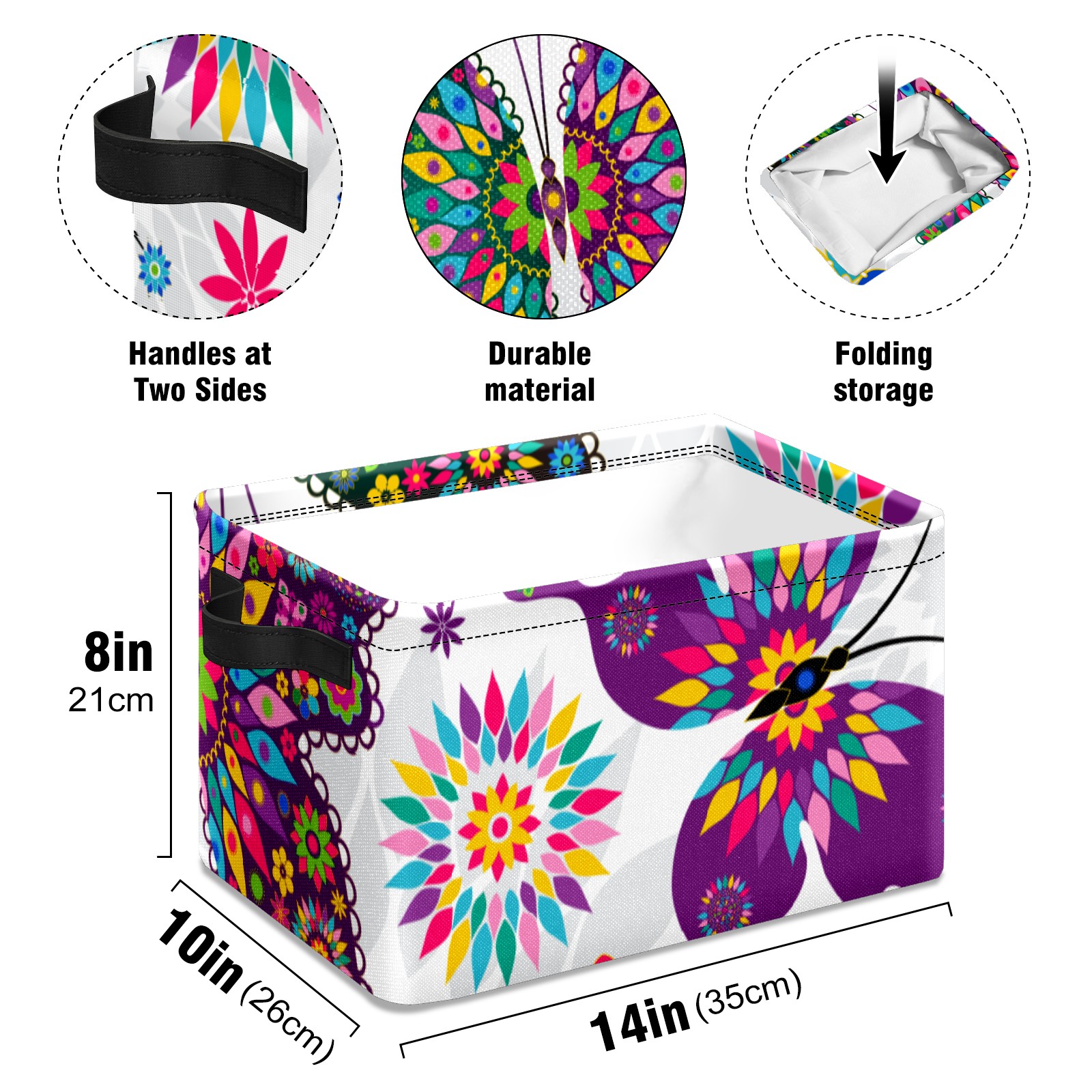 Collapsible 600D Oxford Storage Basket with Butterfly - Metal Frame 10"x14"x8" Reinforced Handles, Multi-Purpose Organizer