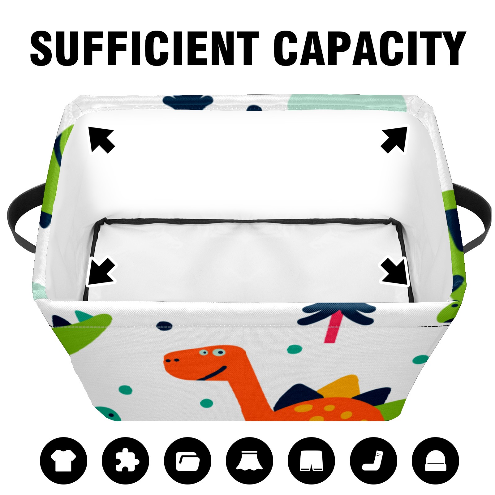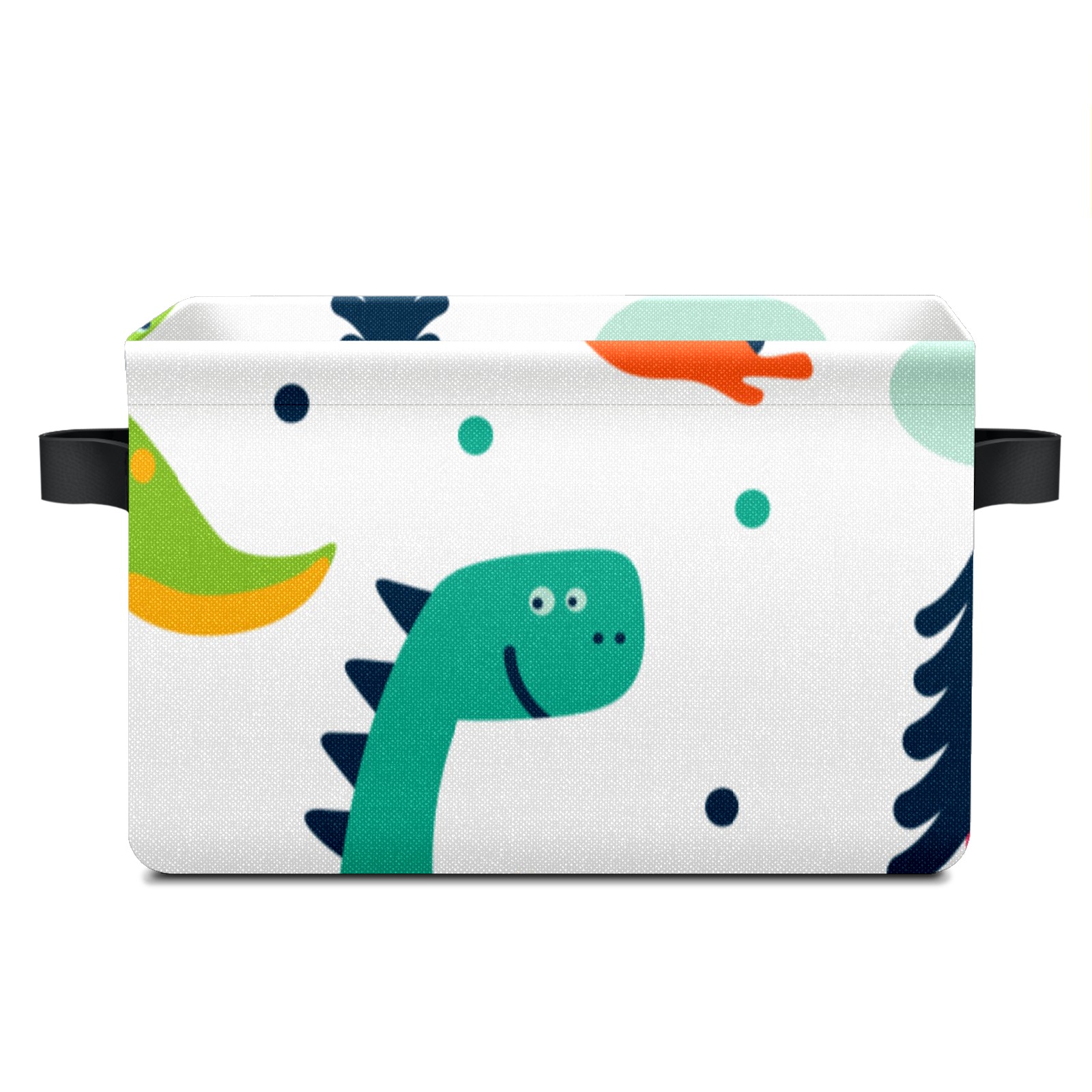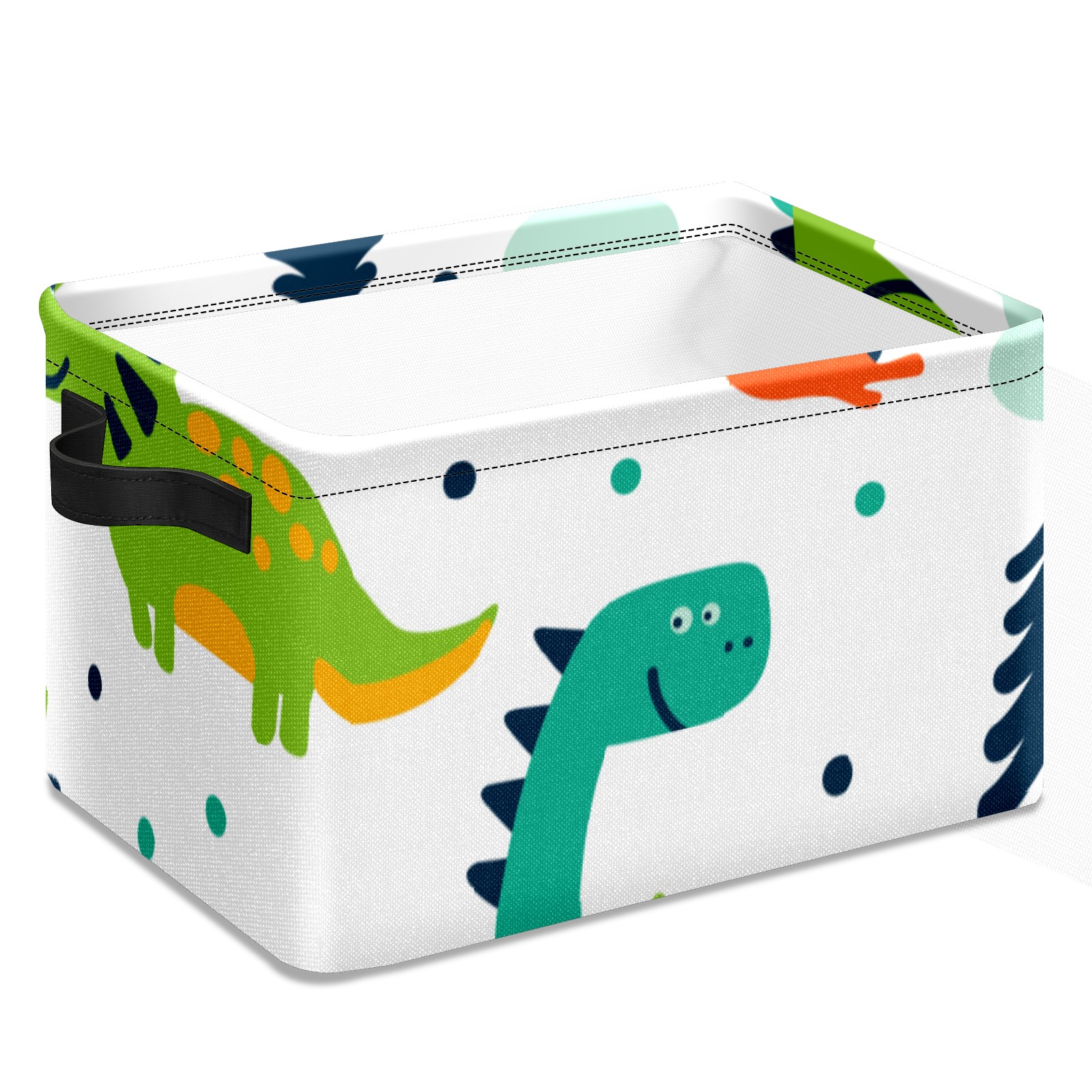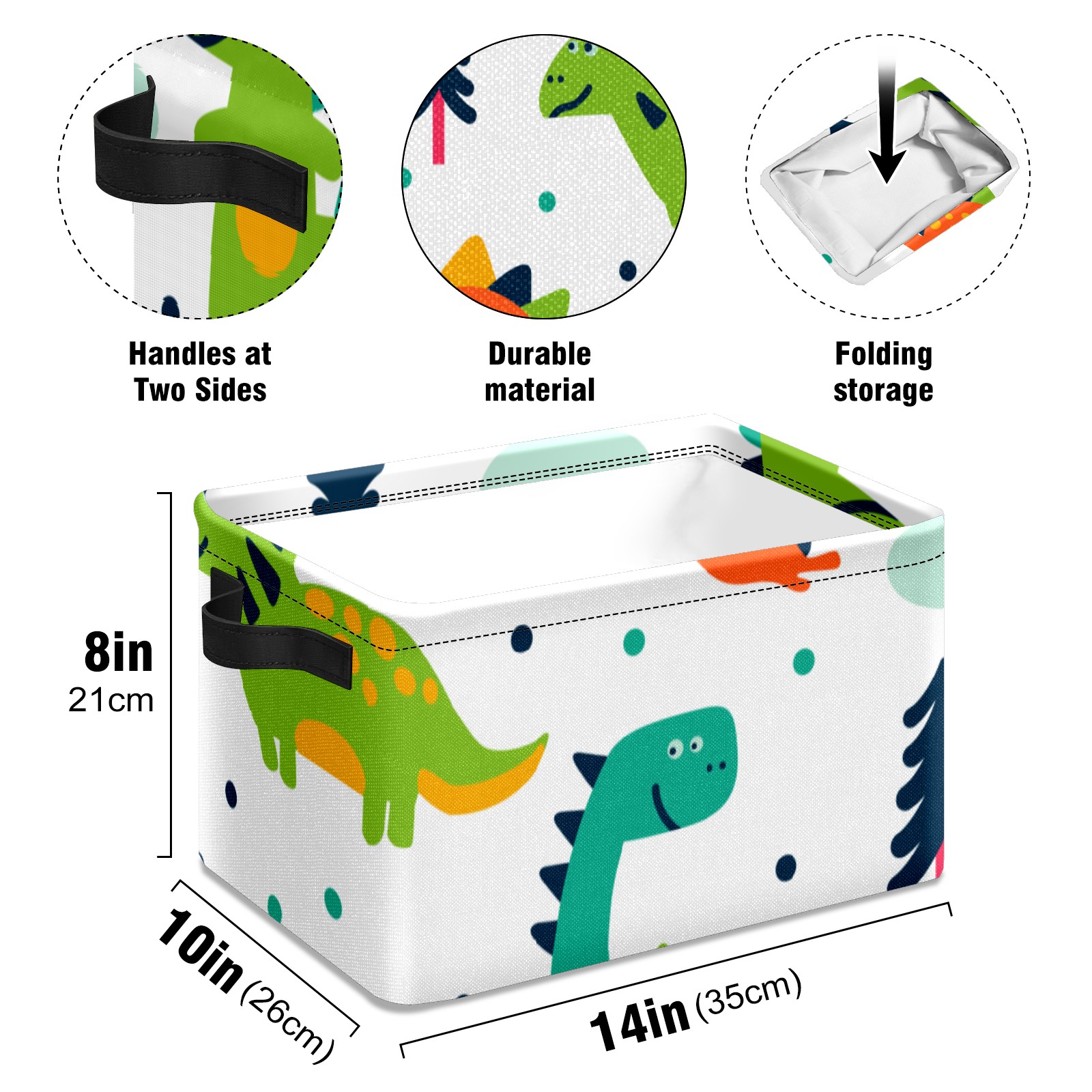 Collapsible 600D Oxford Storage Basket with Cute Cartoon Dinosaurs - Metal Frame 10"x14"x8" Reinforced Handles, Multi-Purpose Organizer