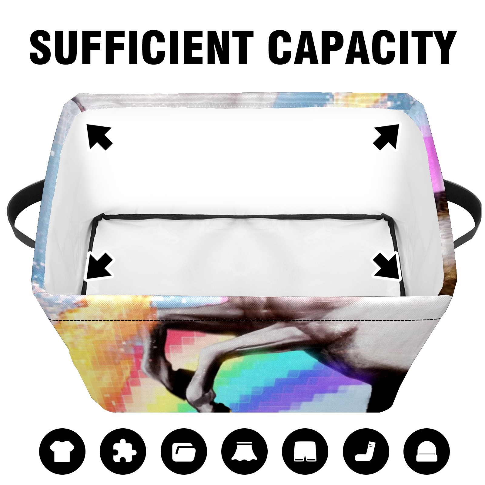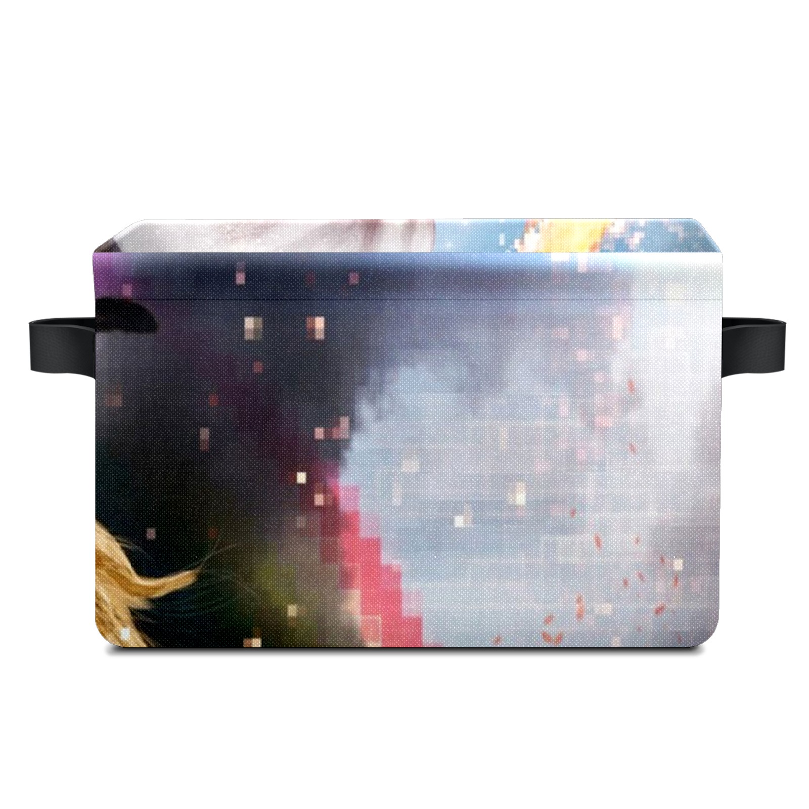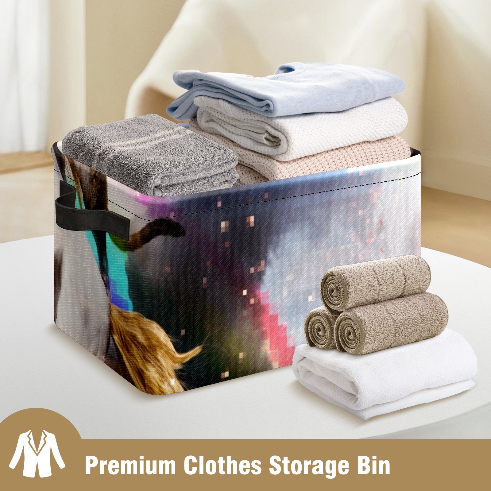 Collapsible 600D Oxford Storage Basket with Fantasy Cat Riding A Unicorn - Metal Frame 10"x14"x8" Reinforced Handles, Multi-Purpose Organizer