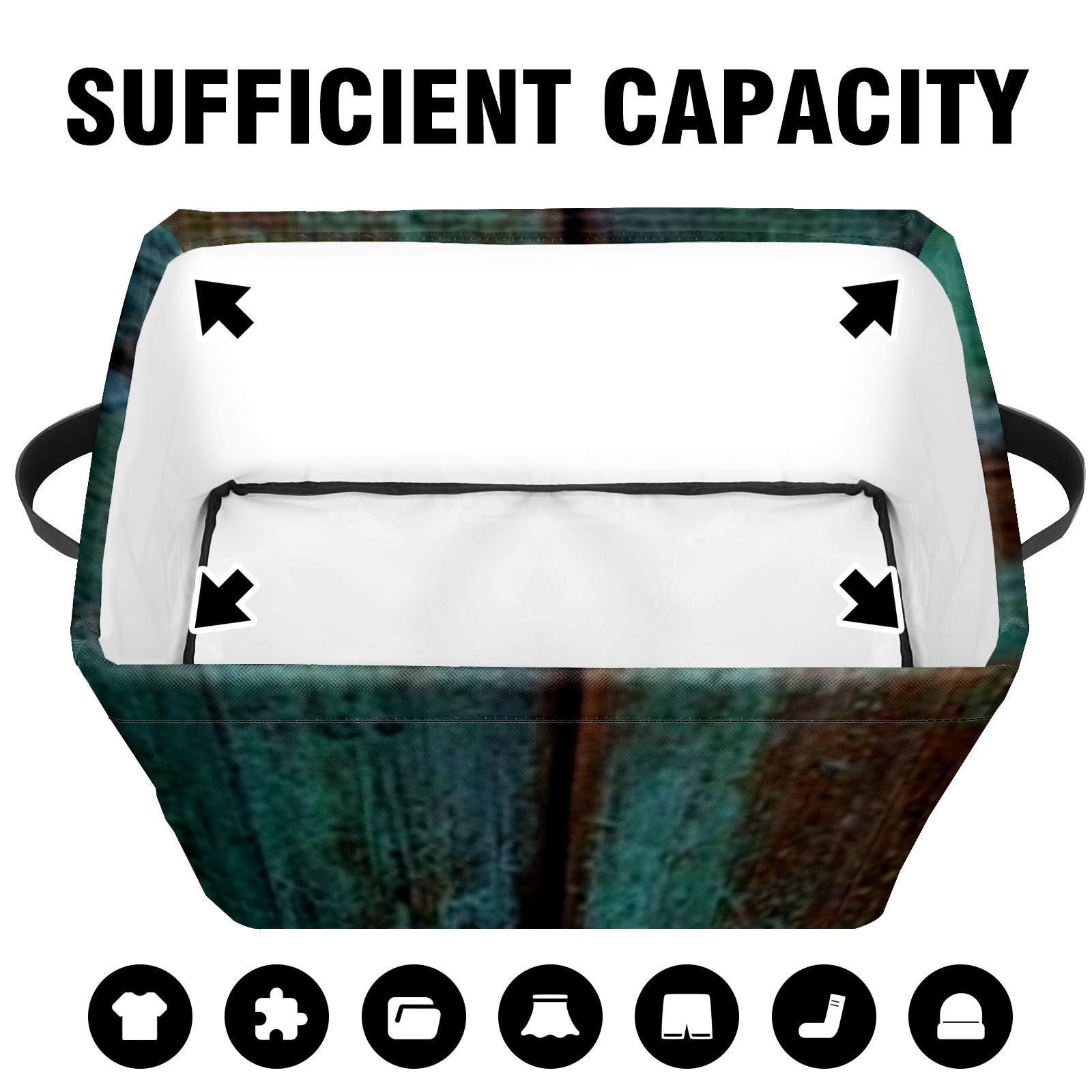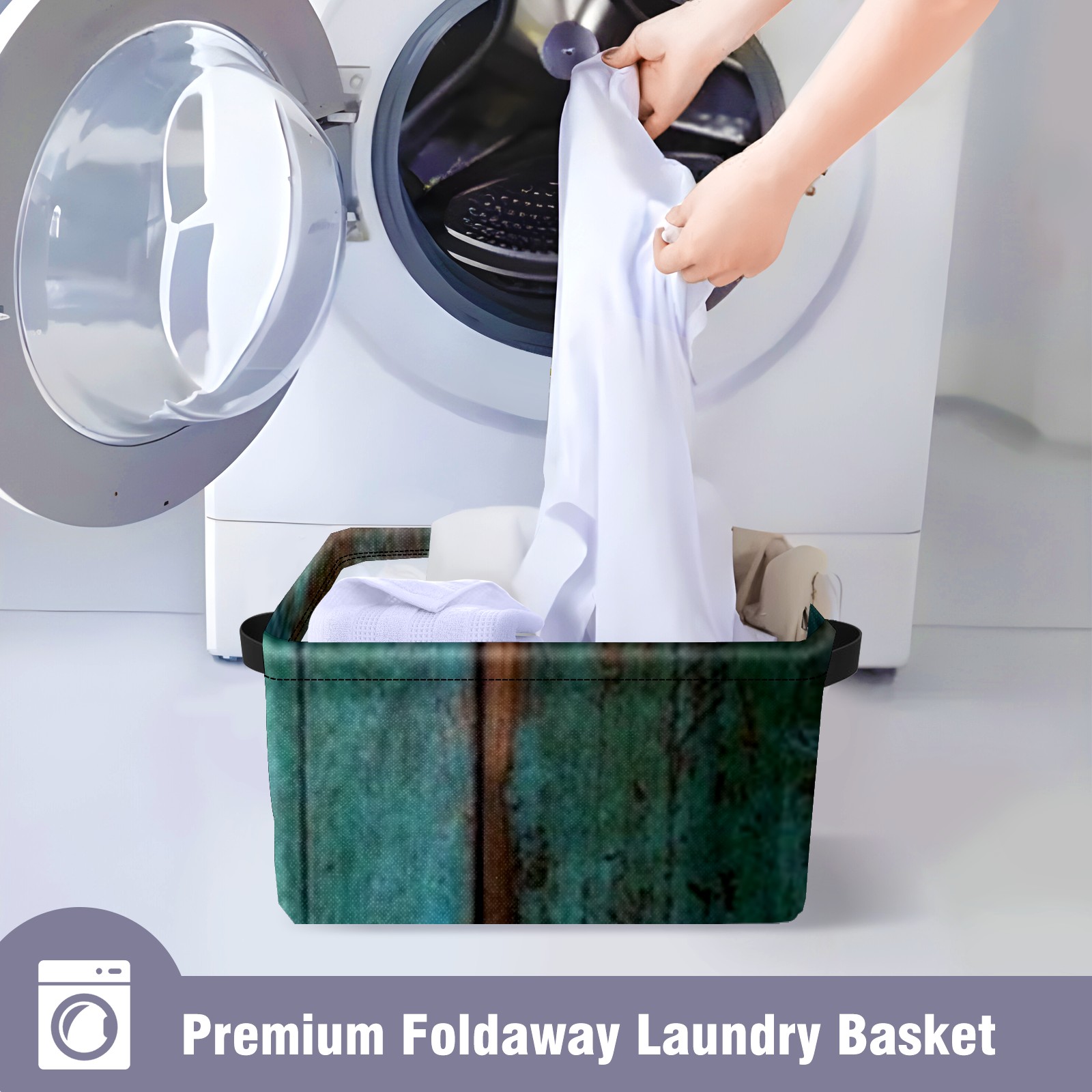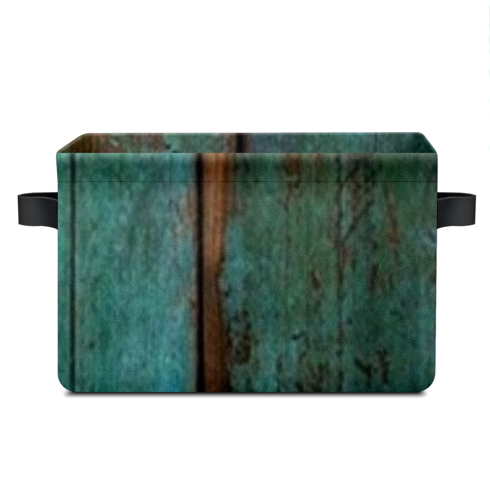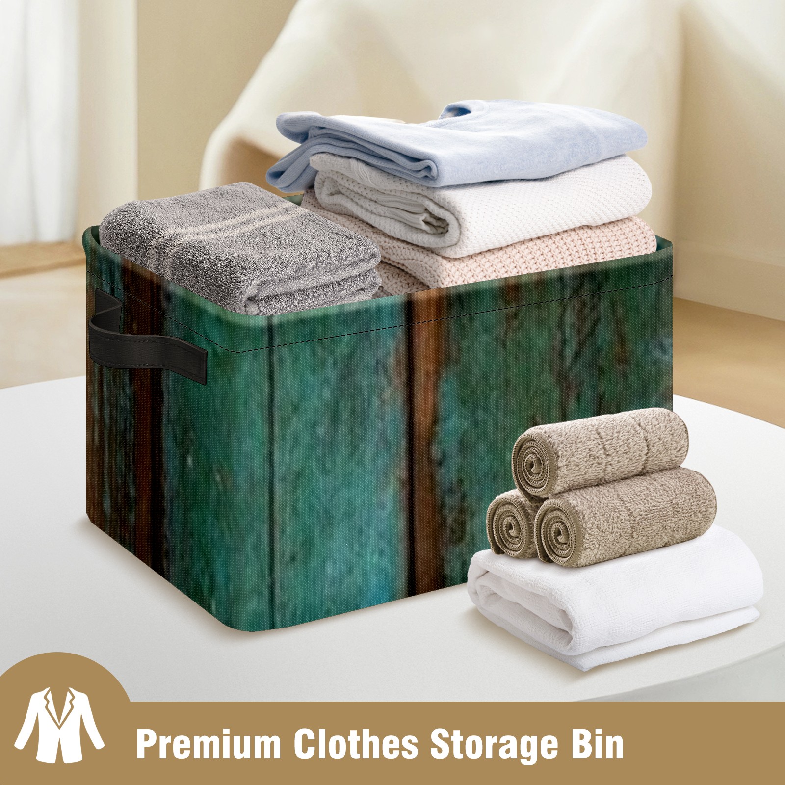 Collapsible 600D Oxford Storage Basket with Rustic Distressed Teal Green - Metal Frame 10"x14"x8" Reinforced Handles, Multi-Purpose Organizer