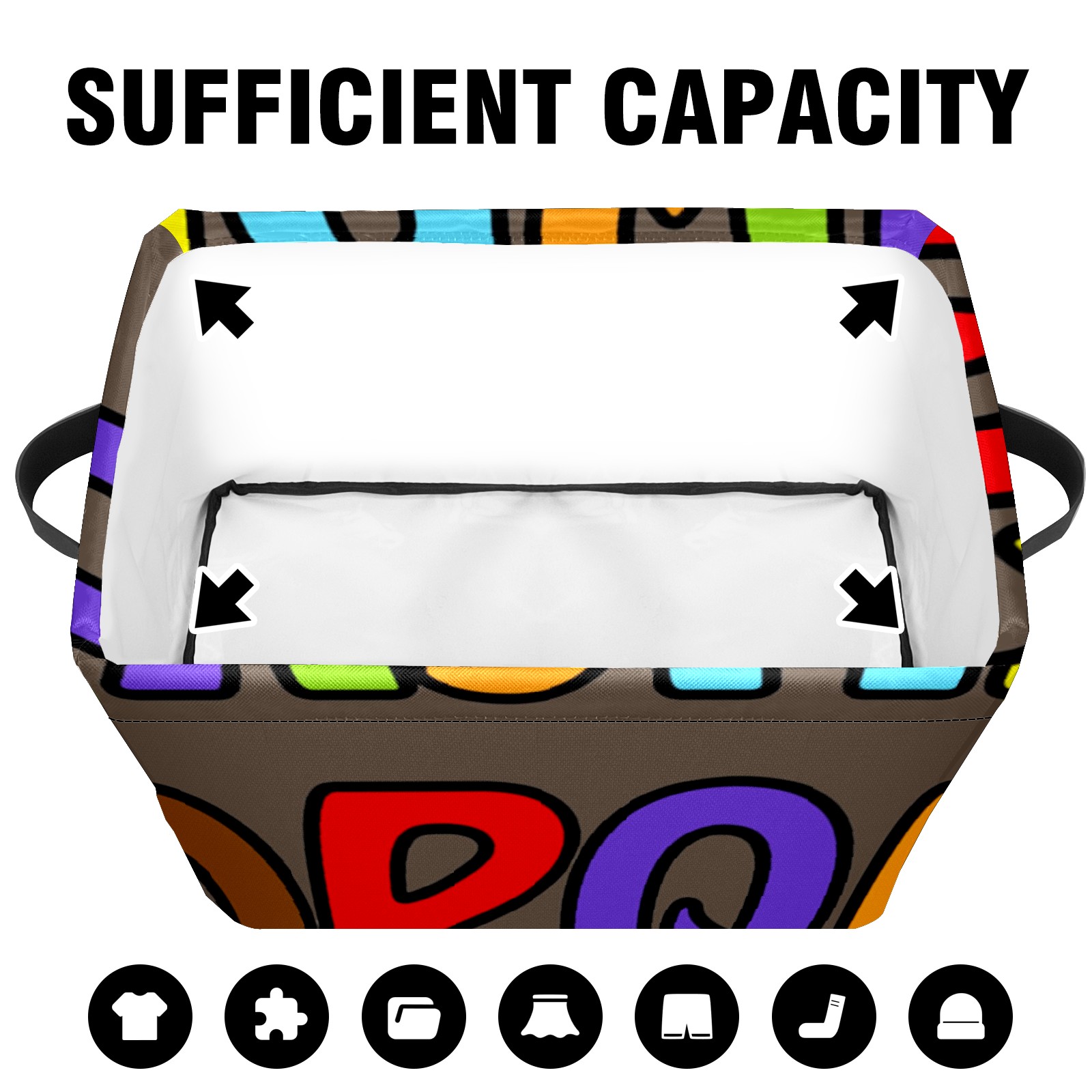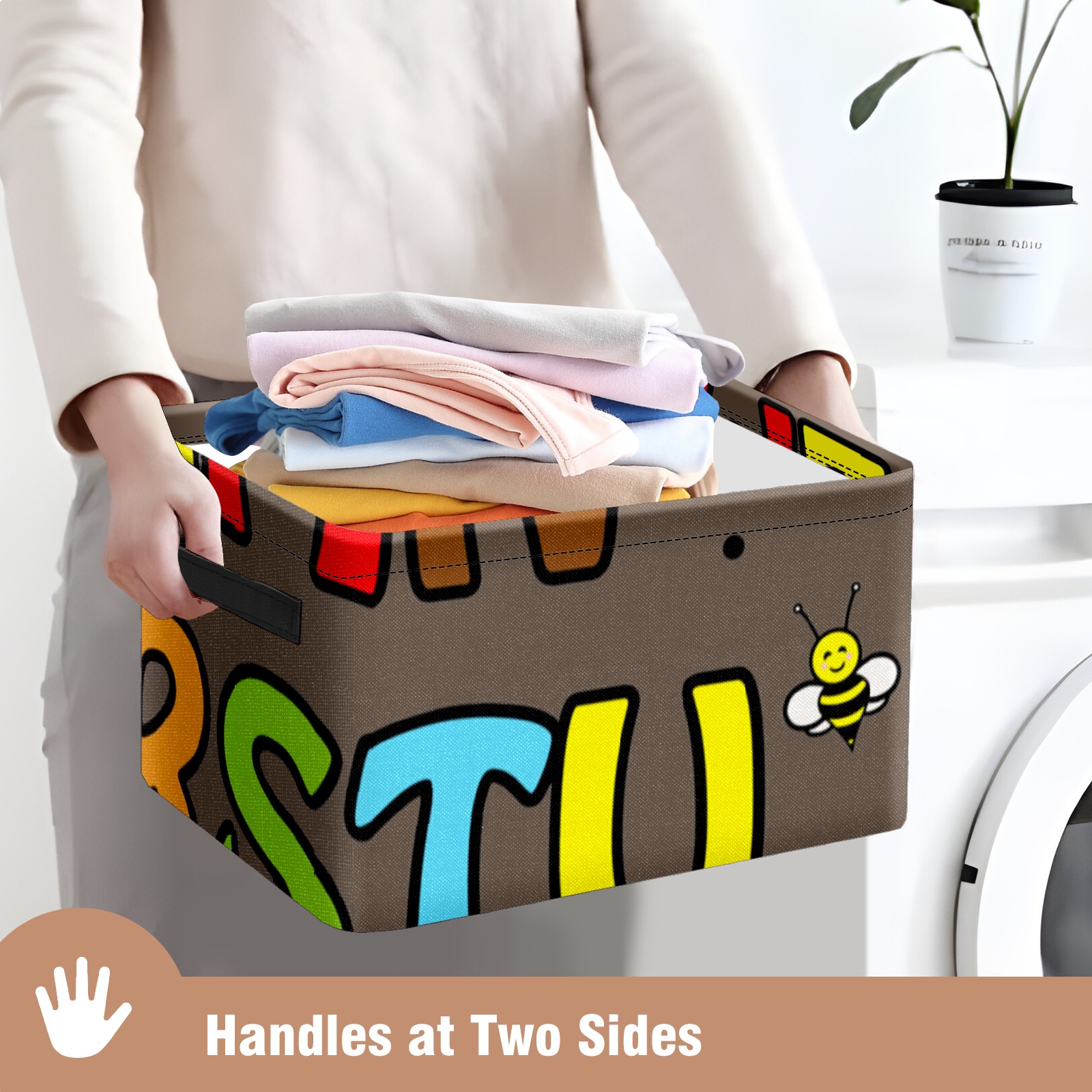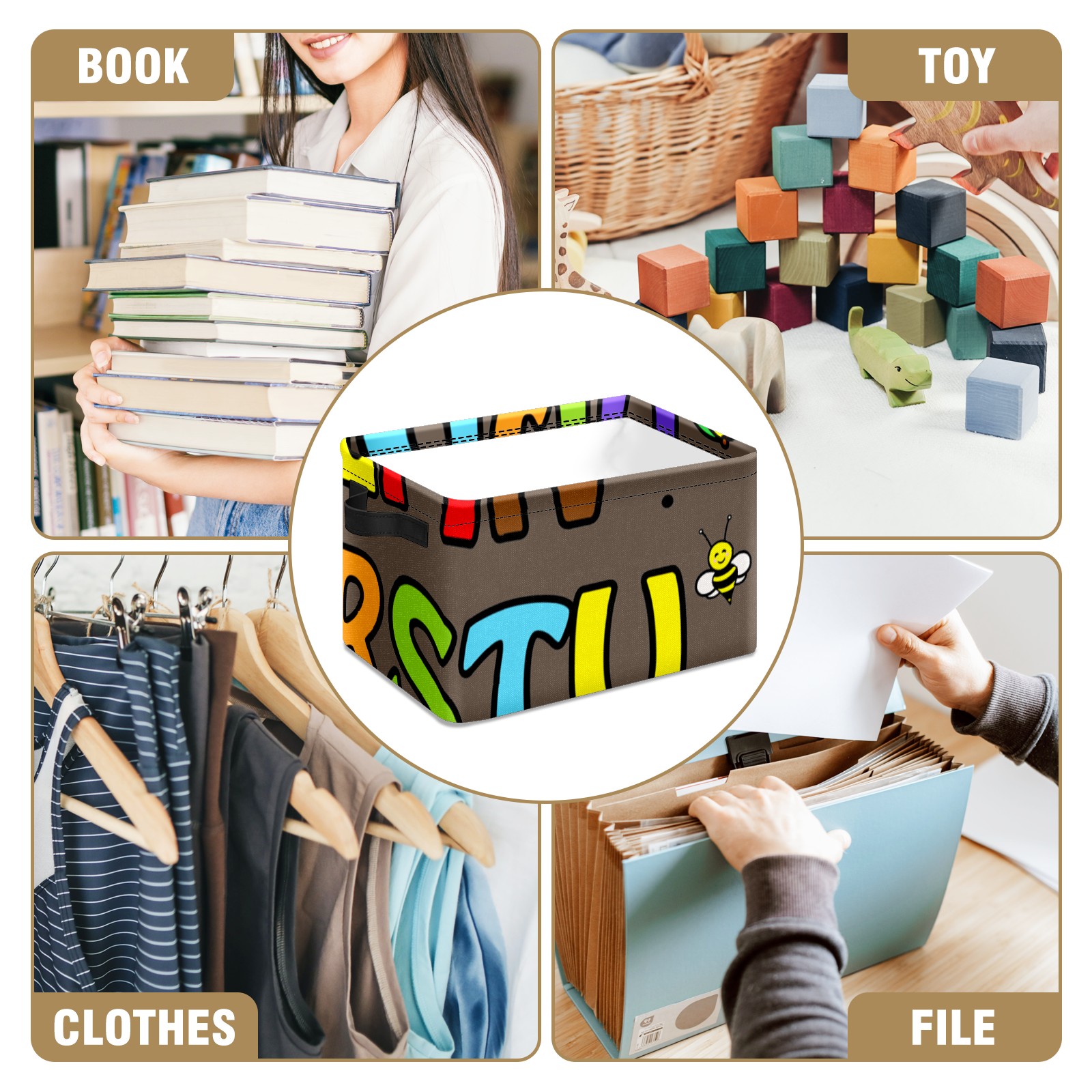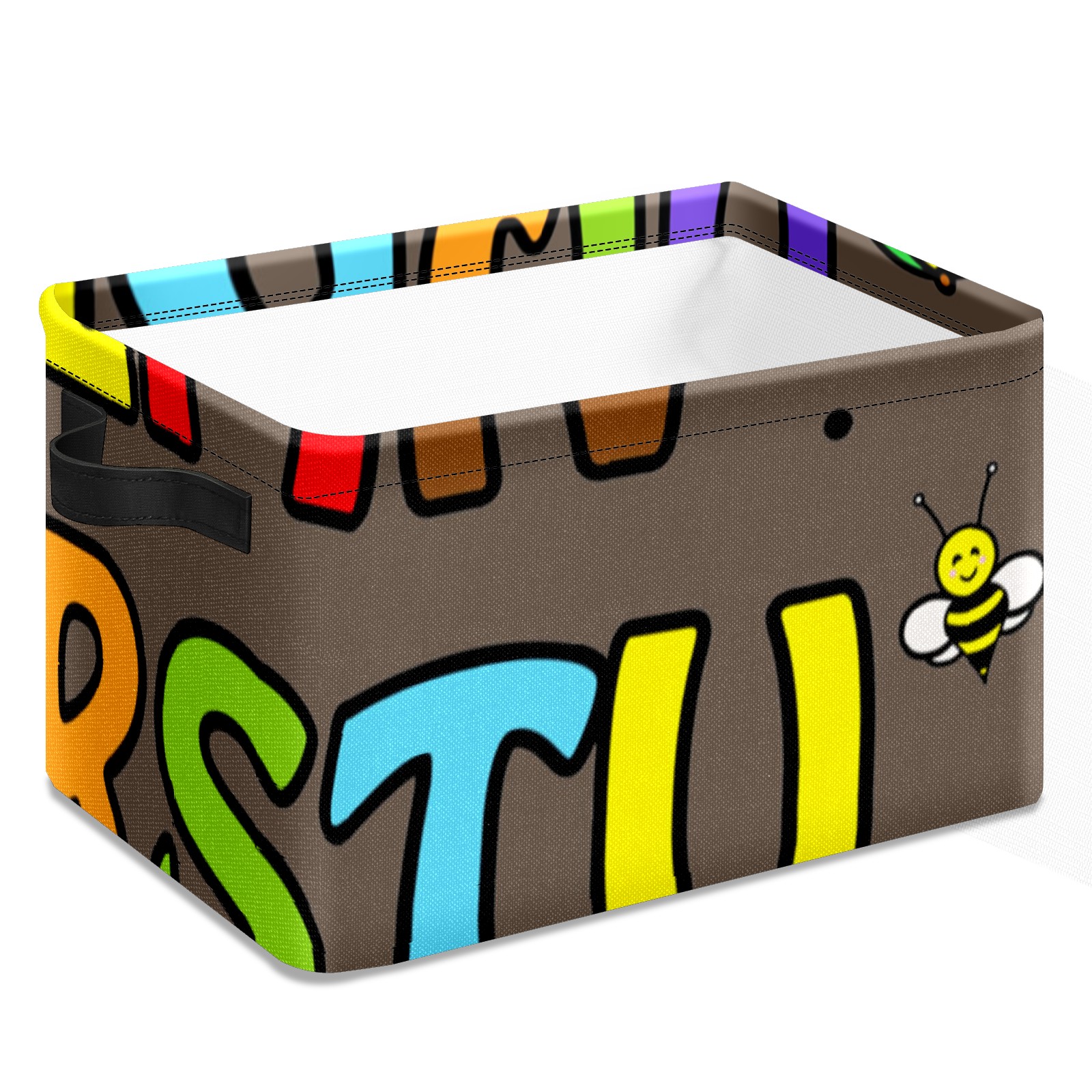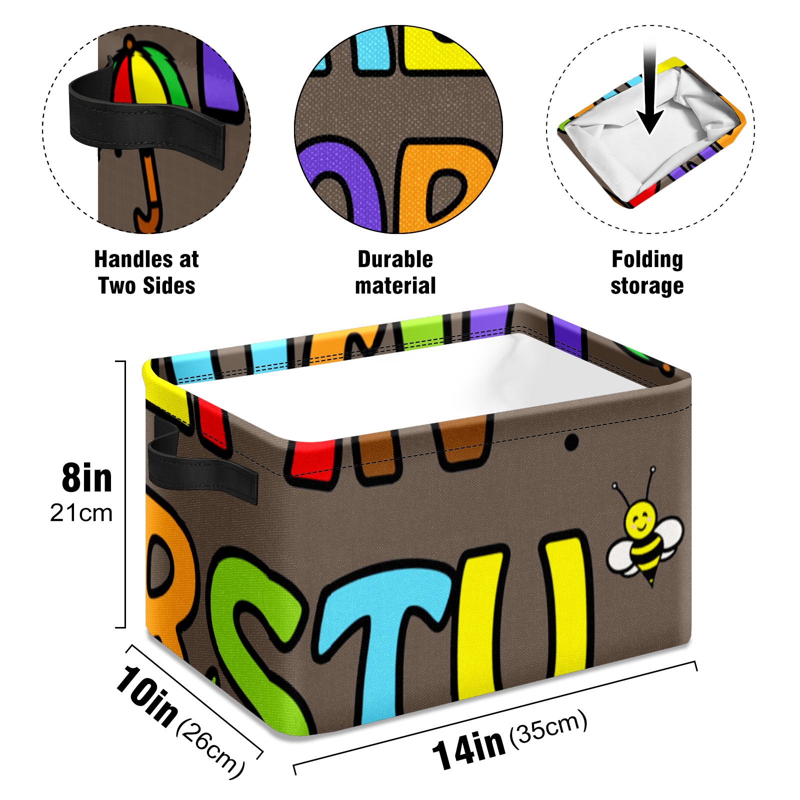 Collapsible 600D Oxford Storage Basket with Cartoon Educational Alphabet - Metal Frame 10"x14"x8" Reinforced Handles, Multi-Purpose Organizer