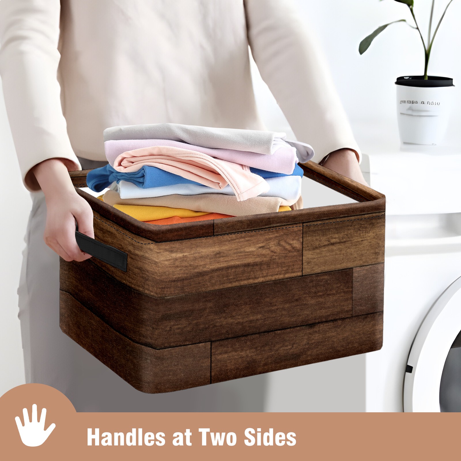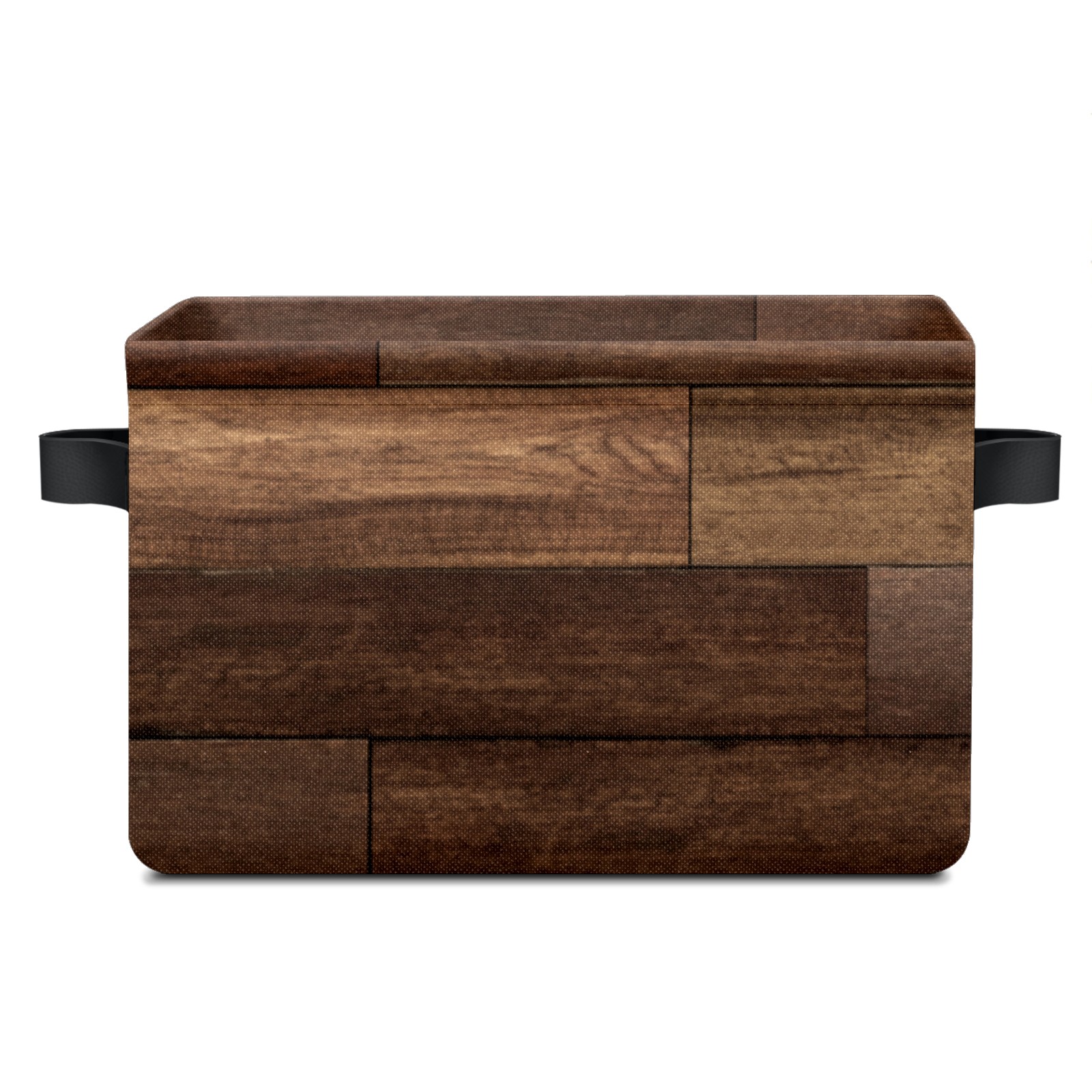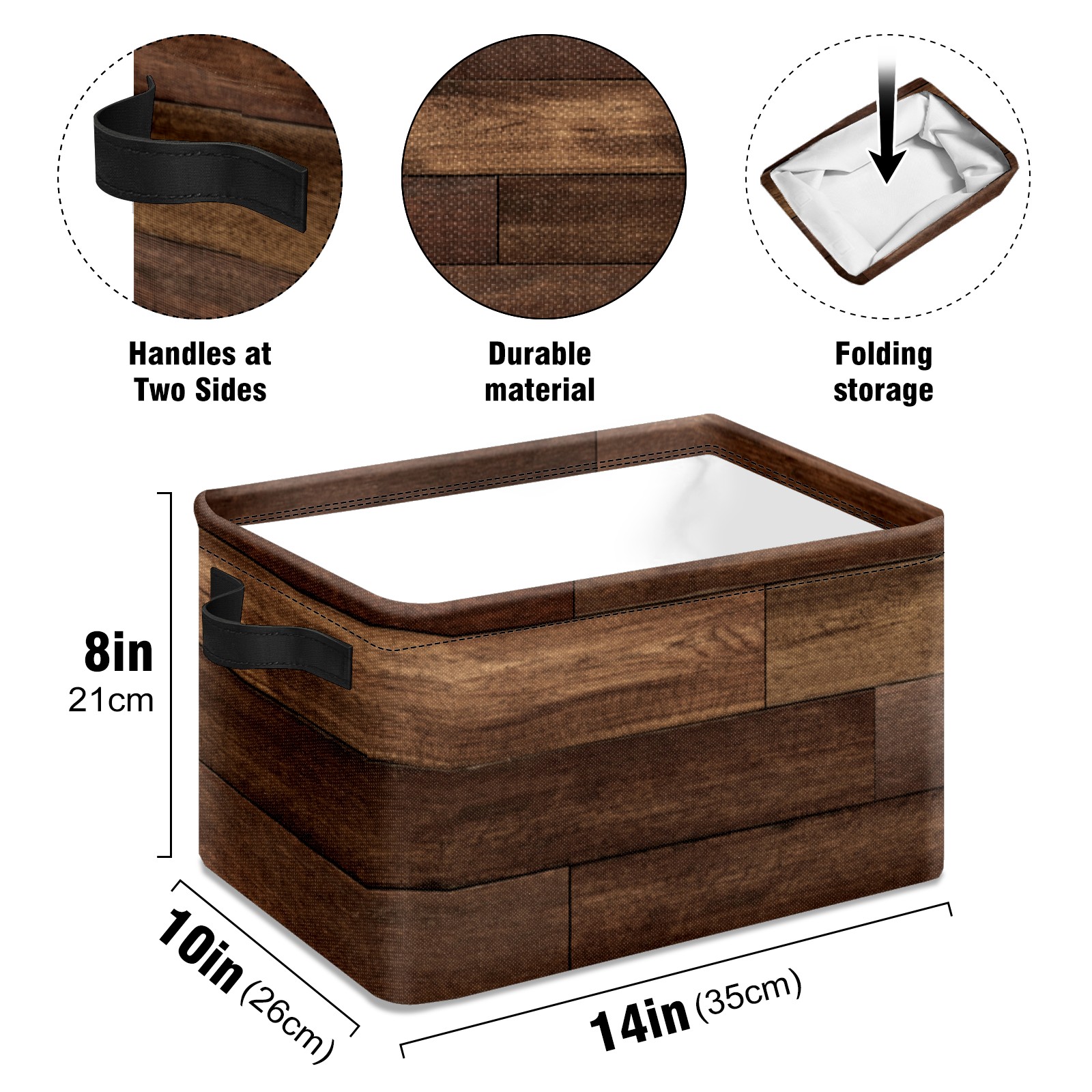 Collapsible 600D Oxford Storage Basket with Retro Wood Floors - Metal Frame 10"x14"x8" Reinforced Handles, Multi-Purpose Organizer
