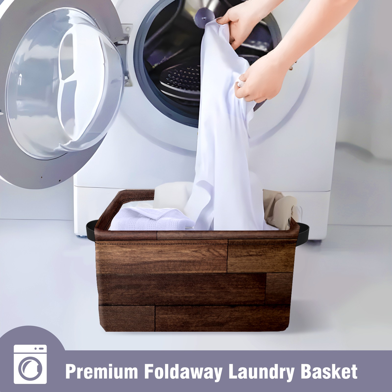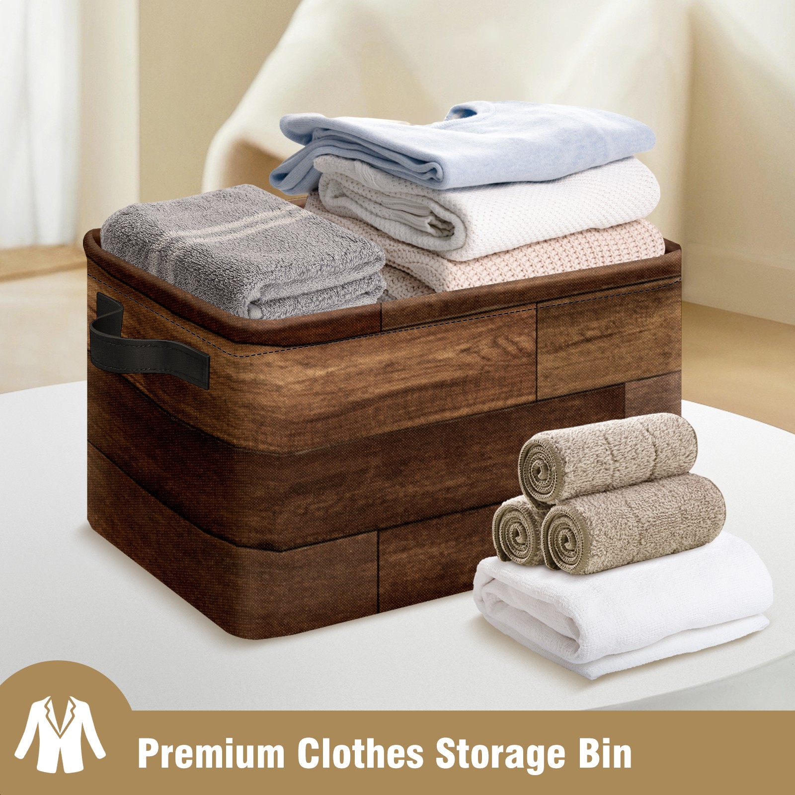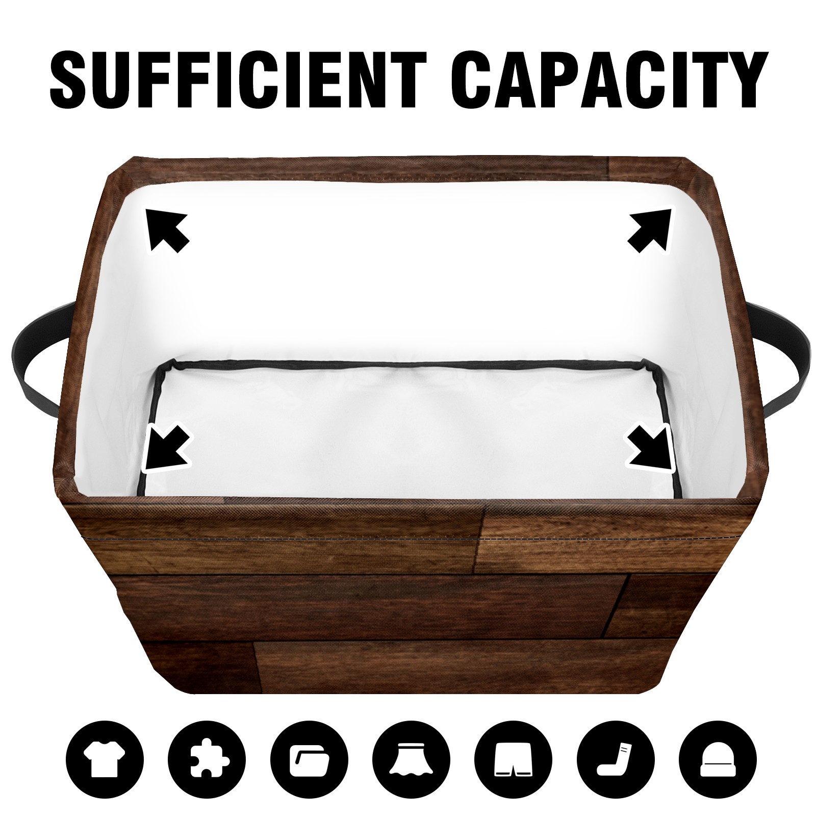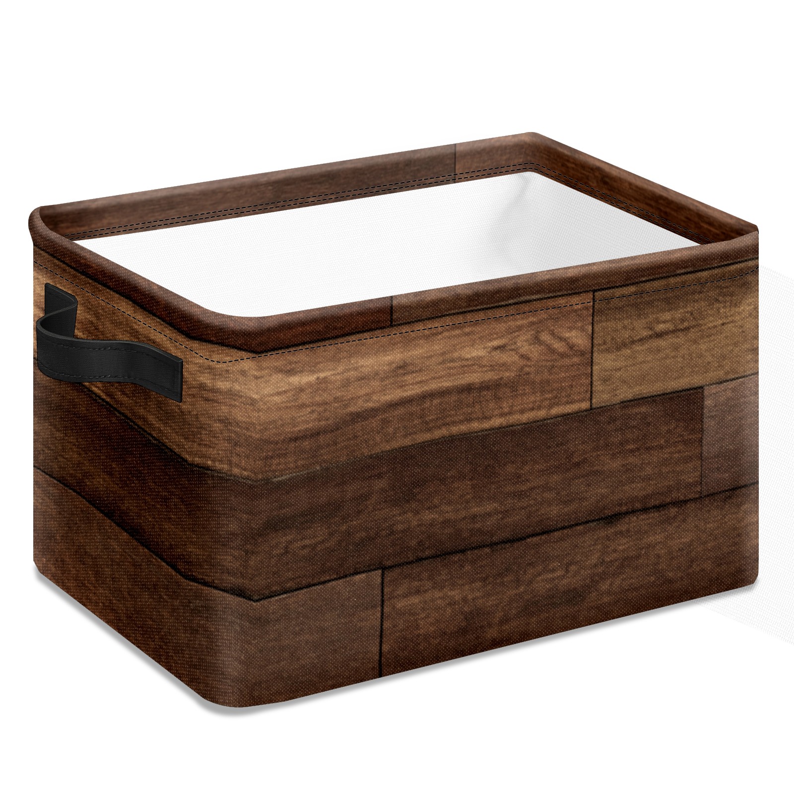 Collapsible 600D Oxford Storage Basket with Retro Wood Floors - Metal Frame 10"x14"x8" Reinforced Handles, Multi-Purpose Organizer