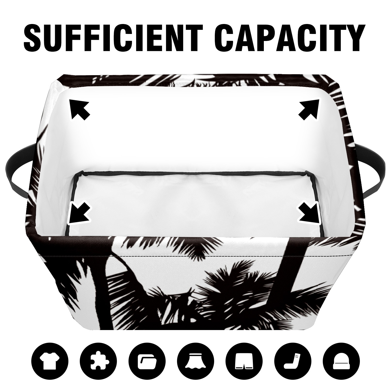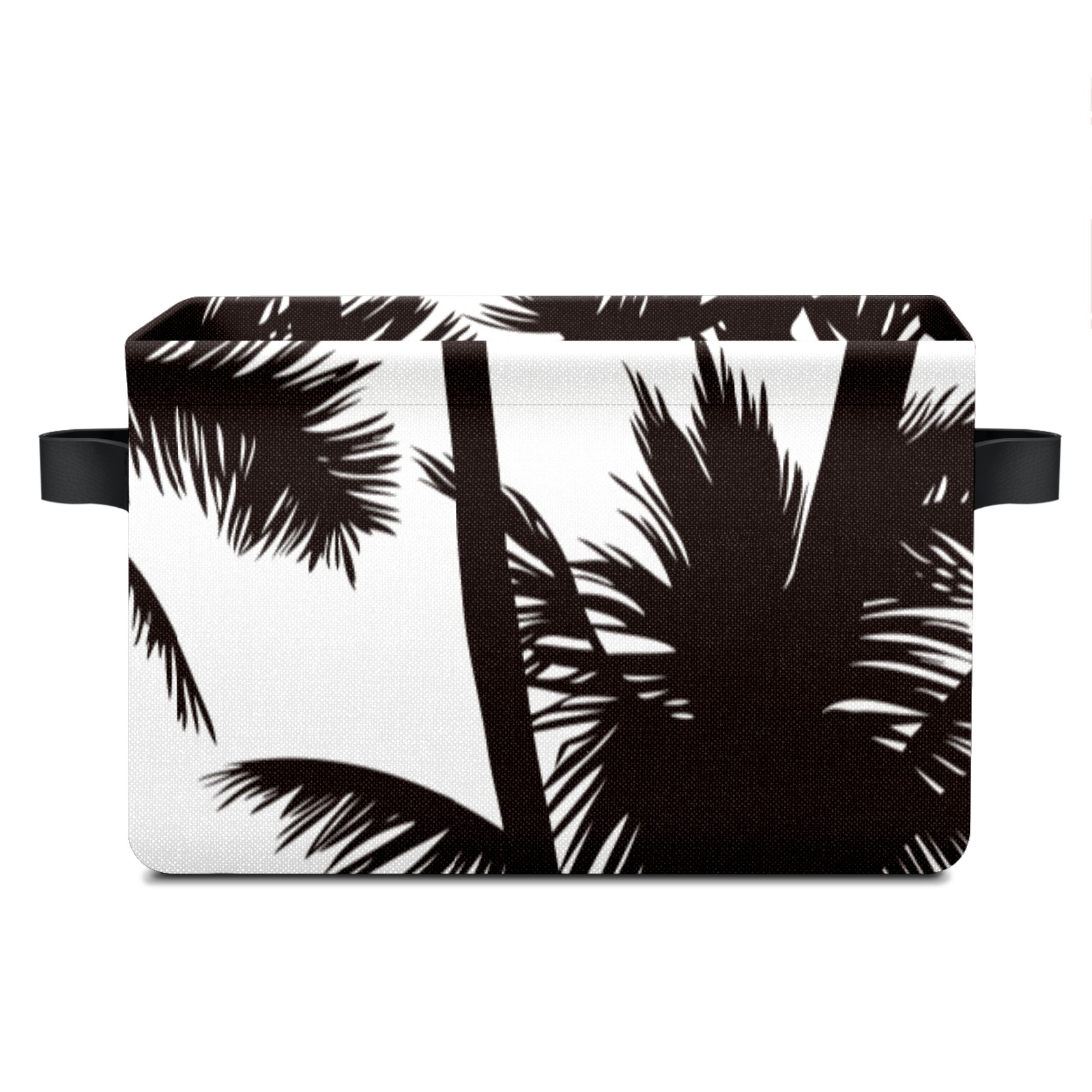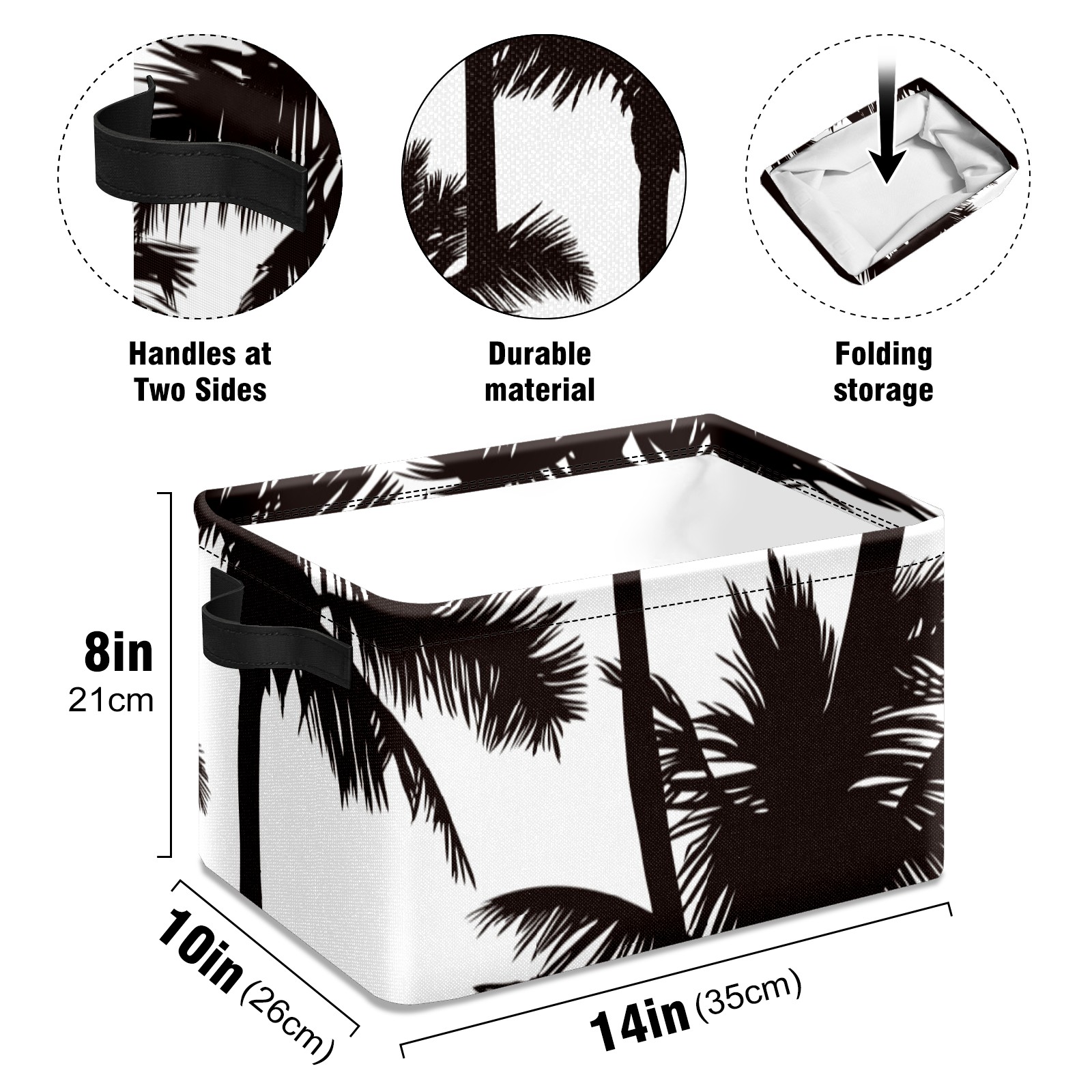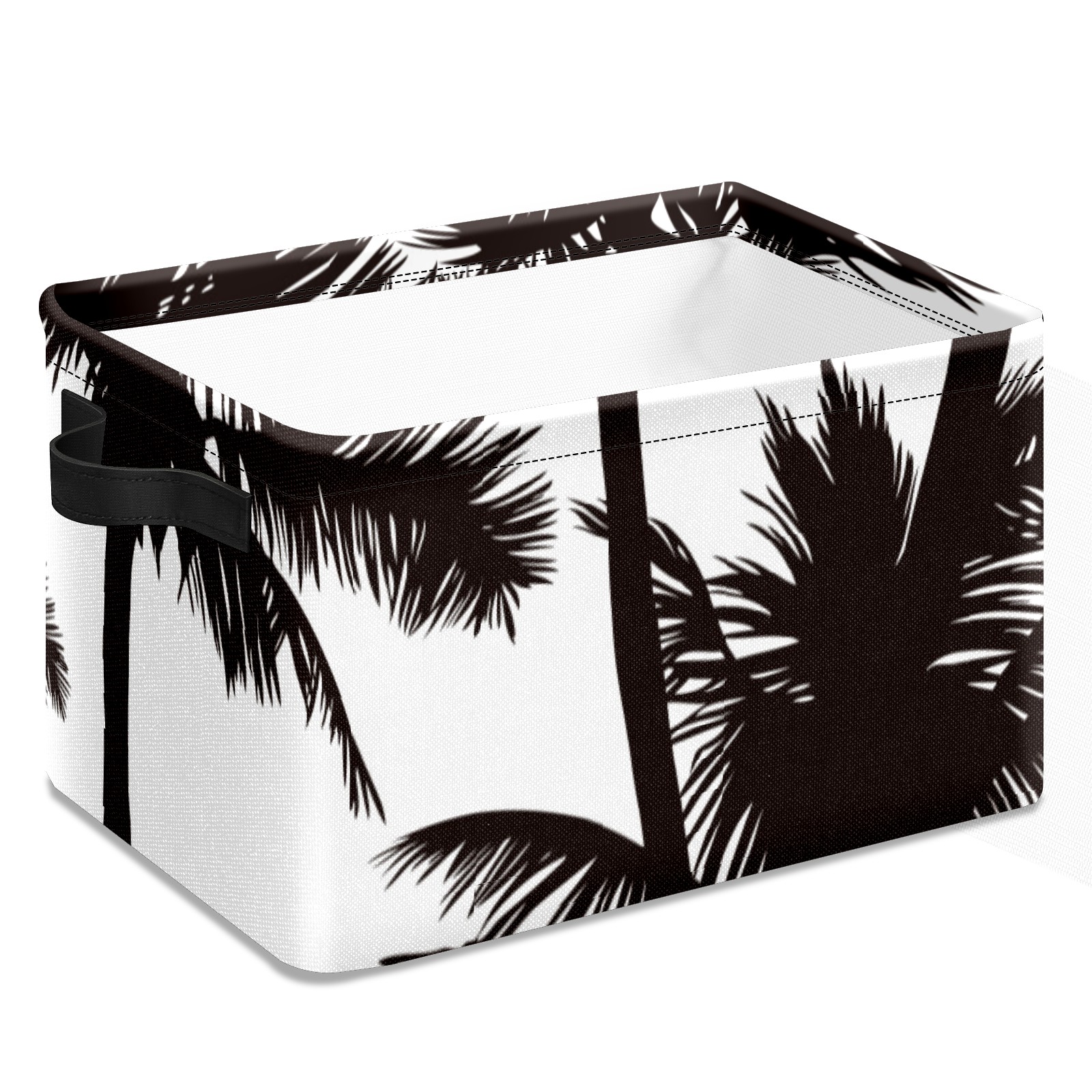 Collapsible 600D Oxford Storage Basket with Tropical Black White Palm Tree - Metal Frame 10"x14"x8" Reinforced Handles, Multi-Purpose Organizer
