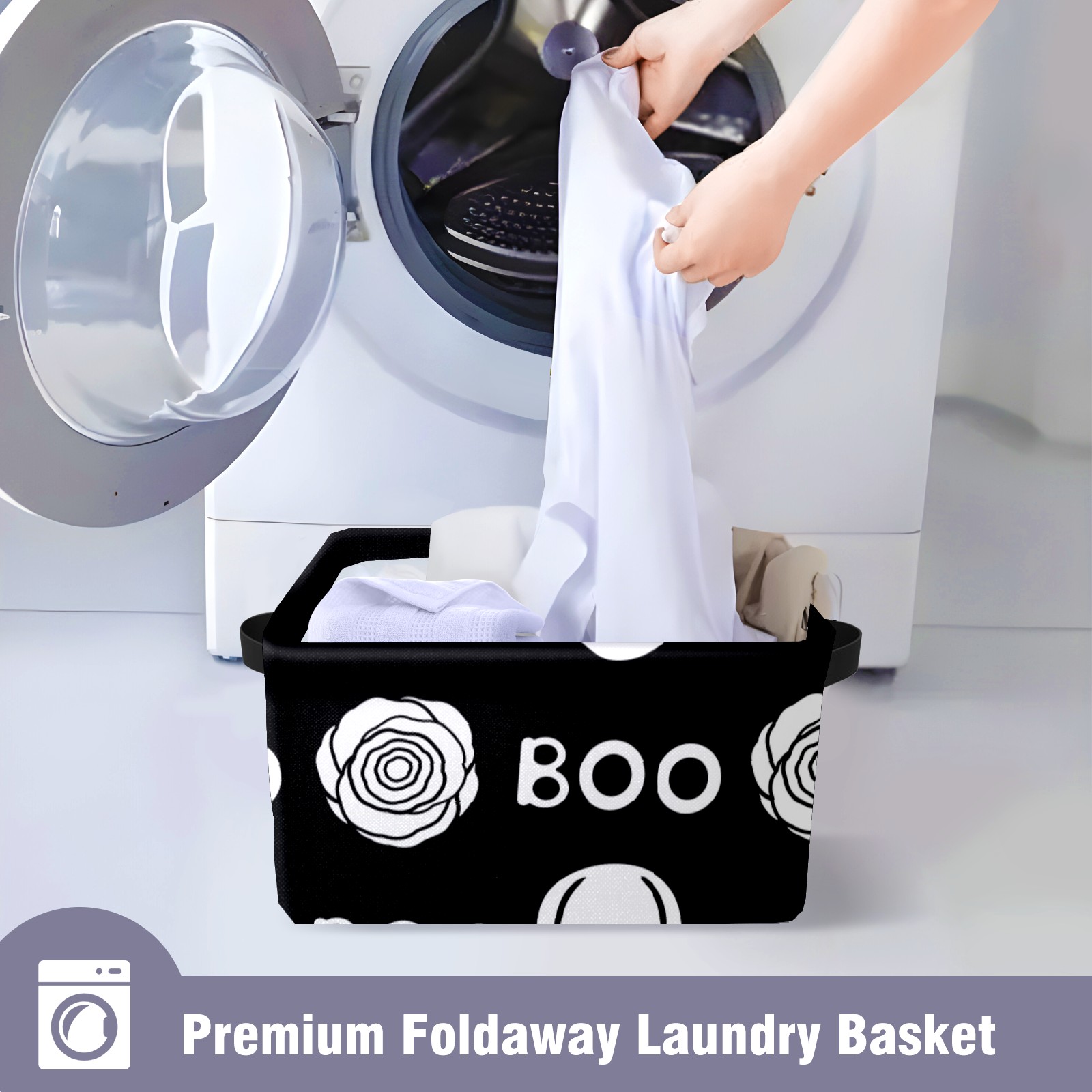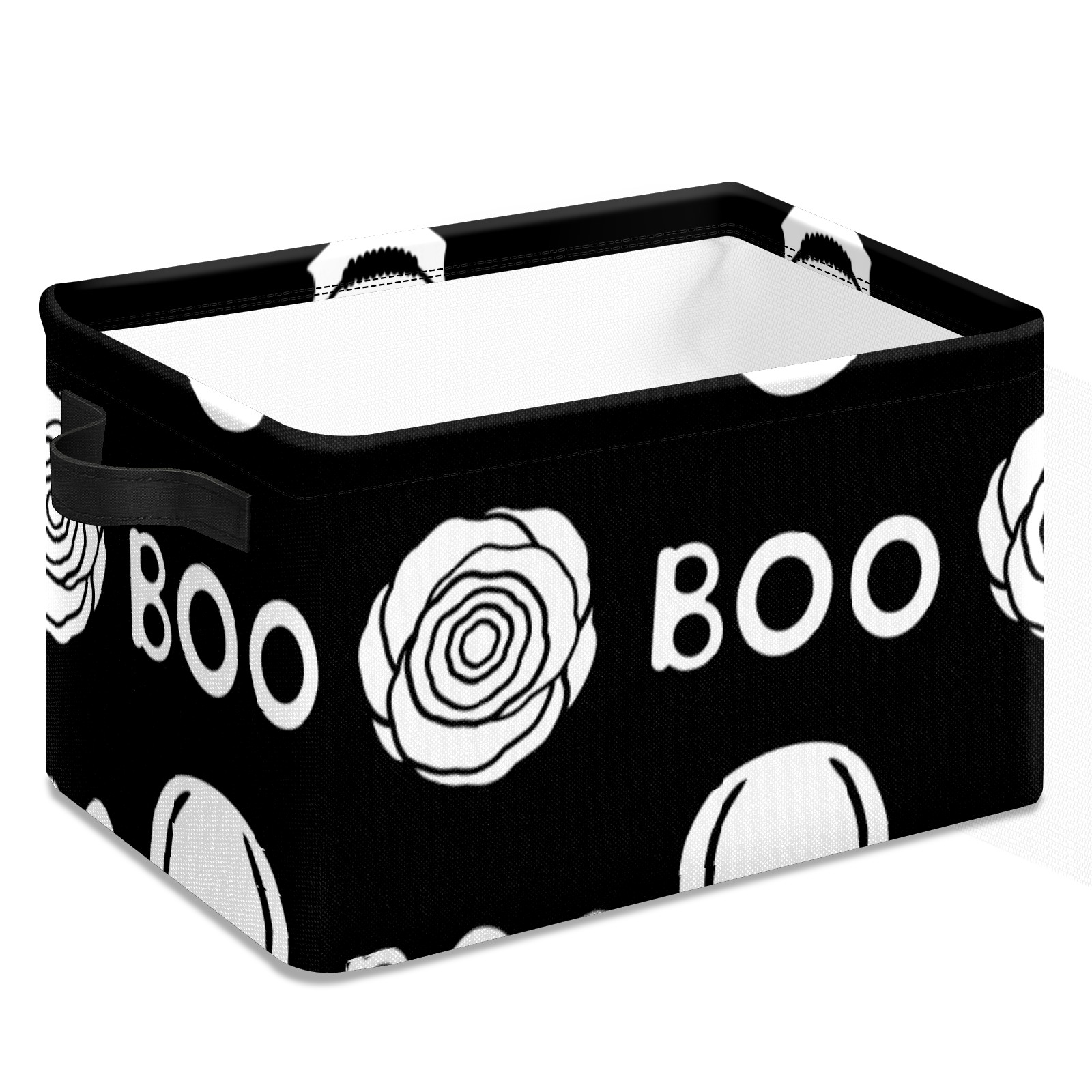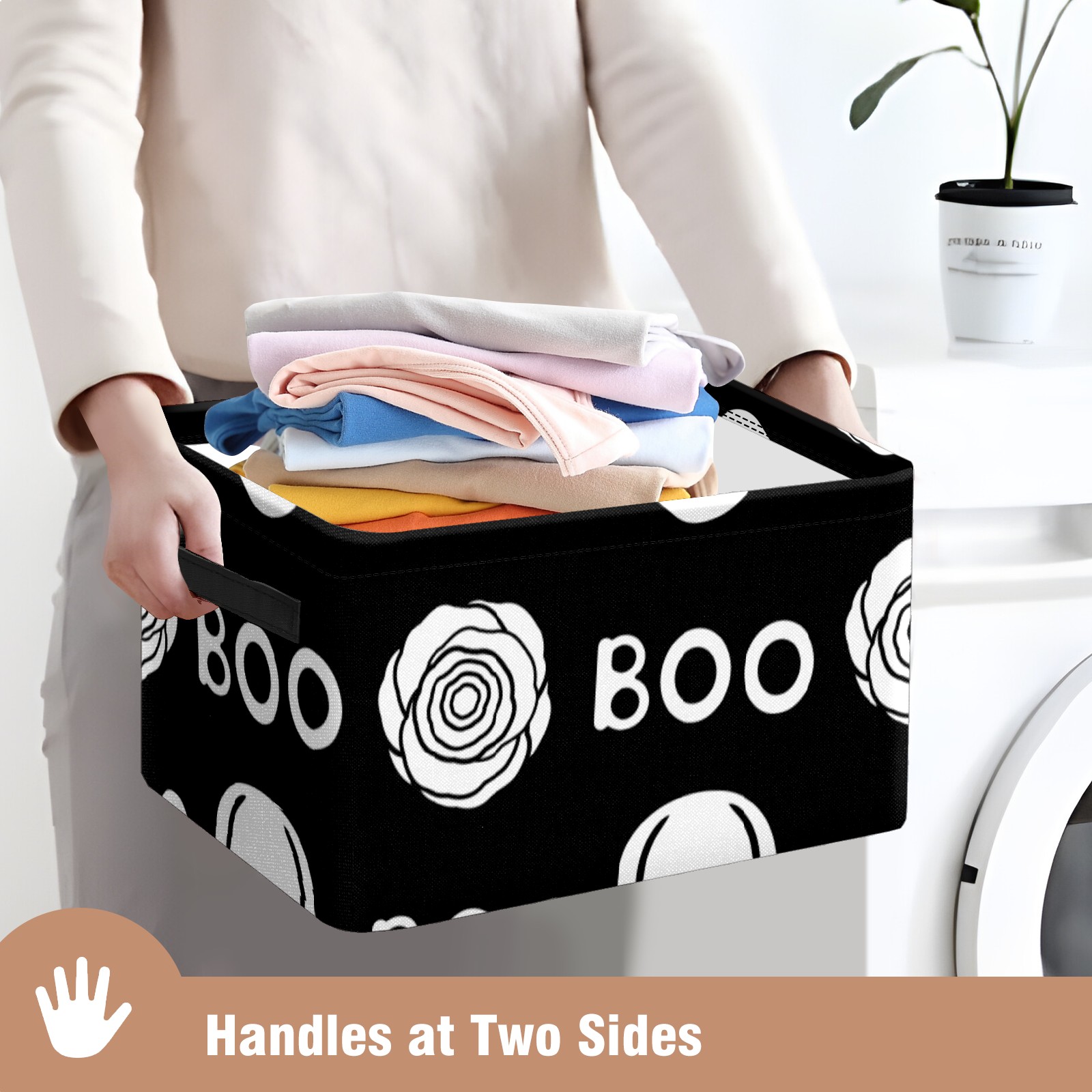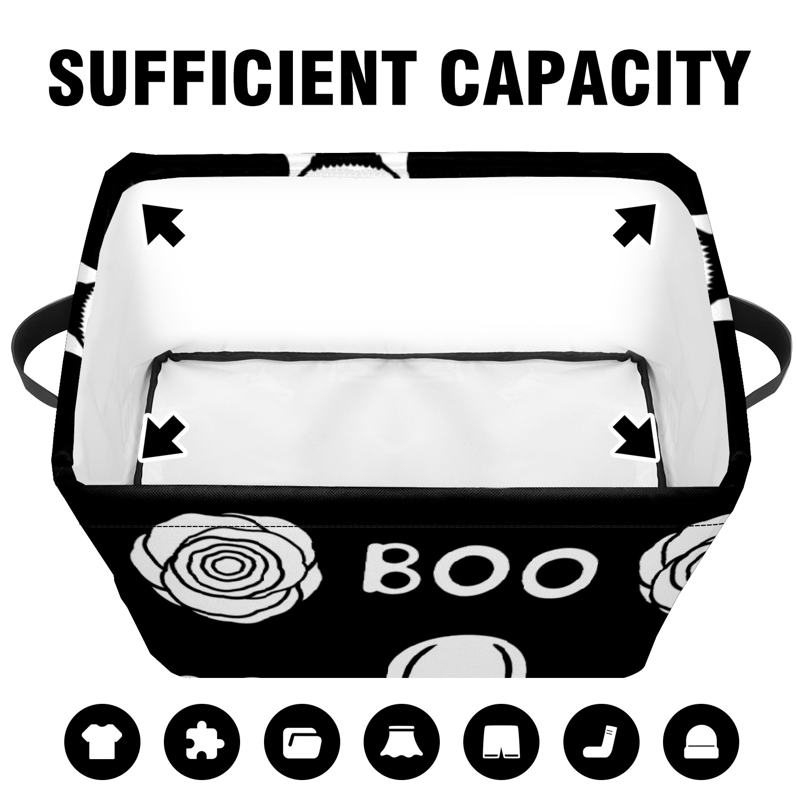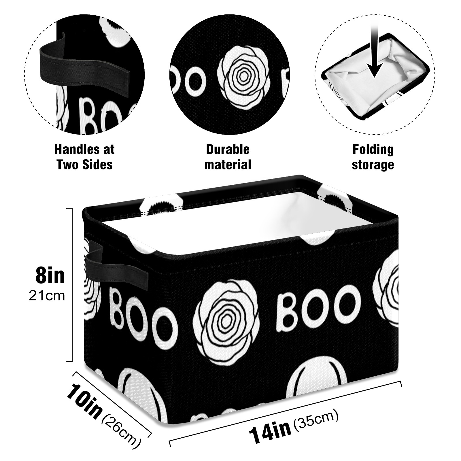 Collapsible 600D Oxford Storage Basket with Halloween Skull Rose - Metal Frame 10"x14"x8" Reinforced Handles, Multi-Purpose Organizer
