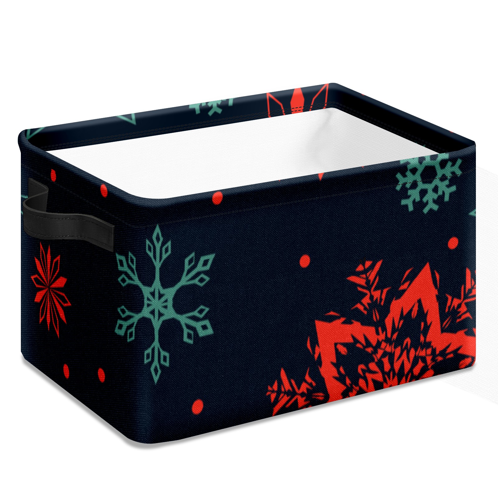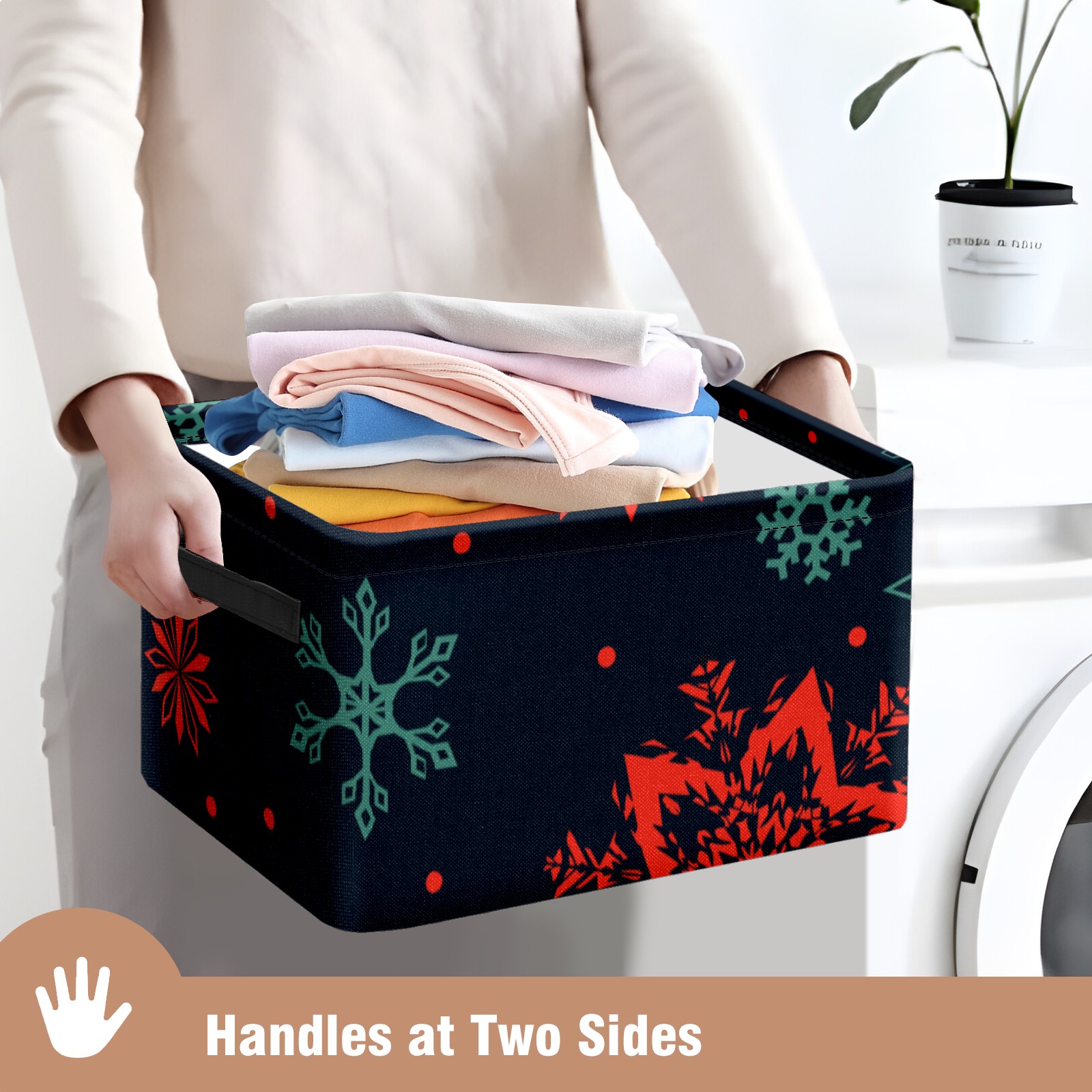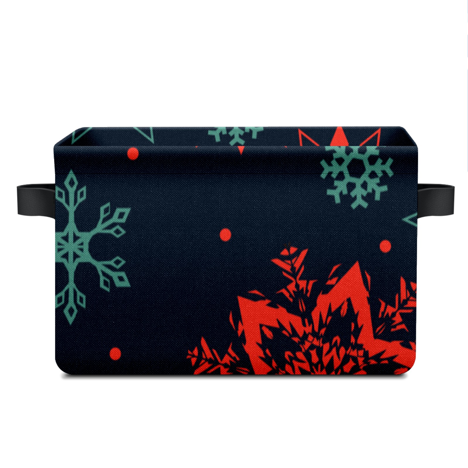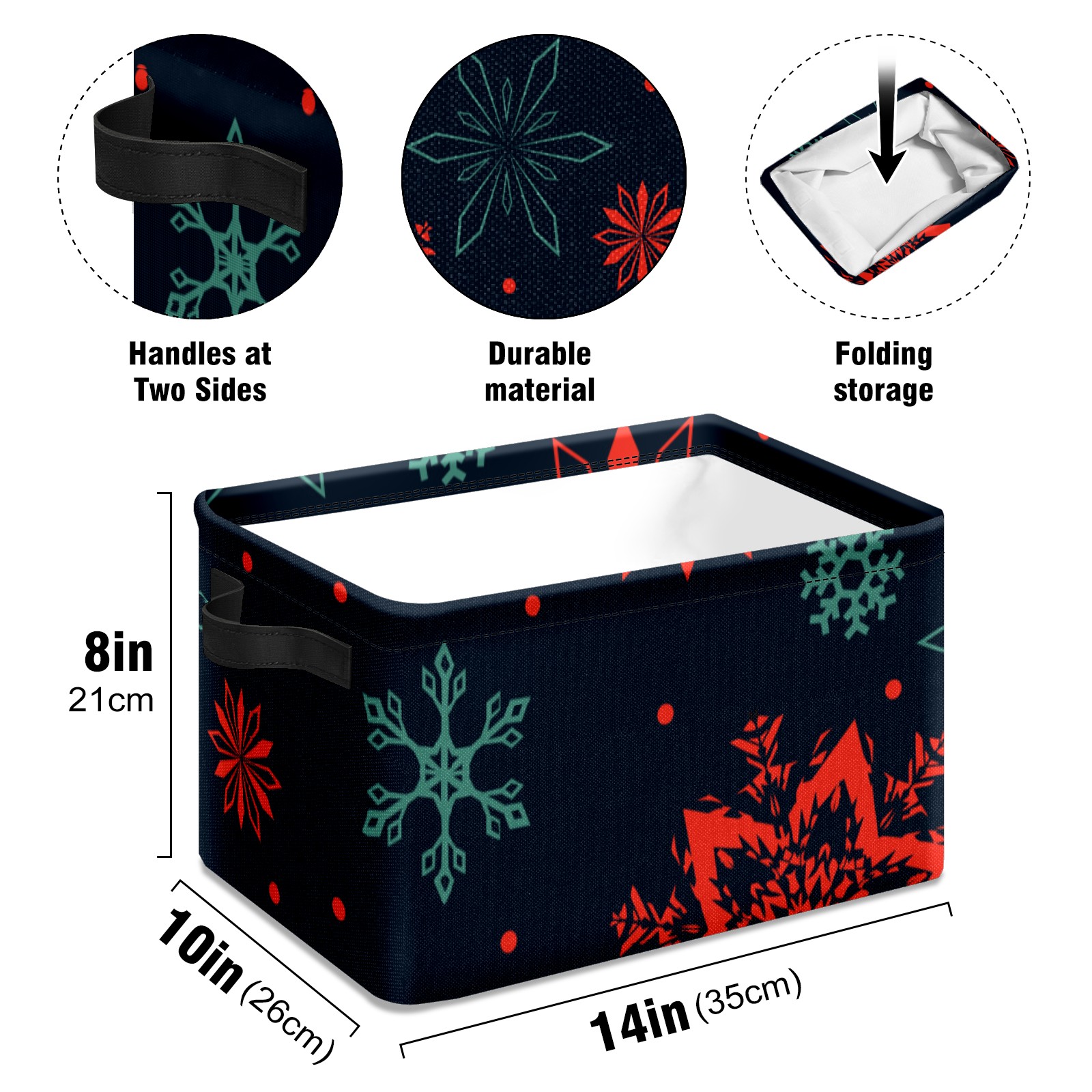 Collapsible 600D Oxford Storage Basket with Christmas Art Snowflake - Metal Frame 10"x14"x8" Reinforced Handles, Multi-Purpose Organizer