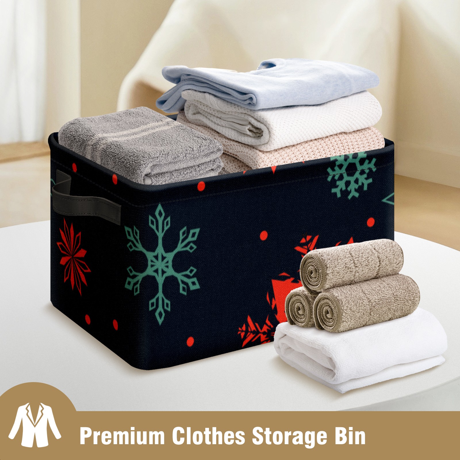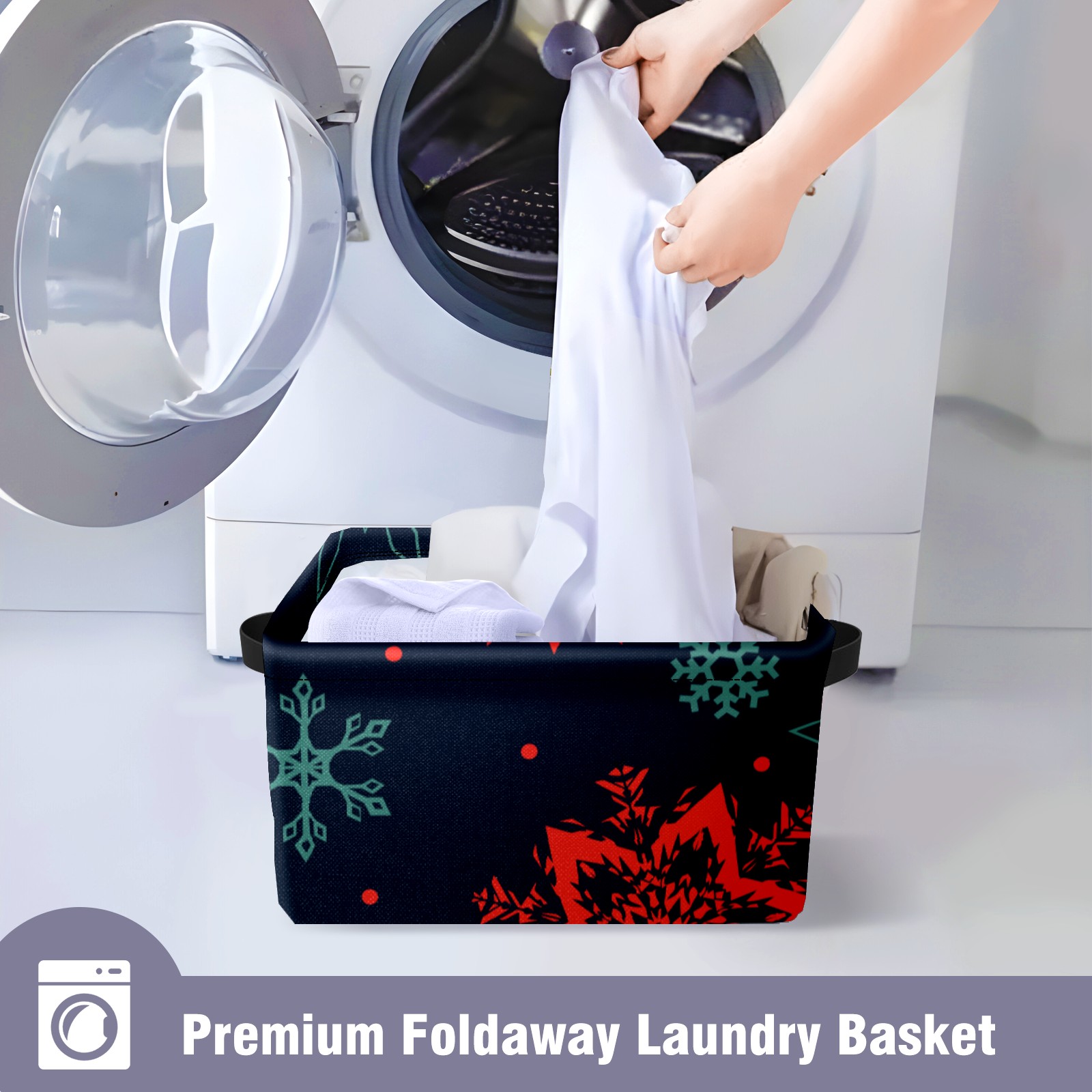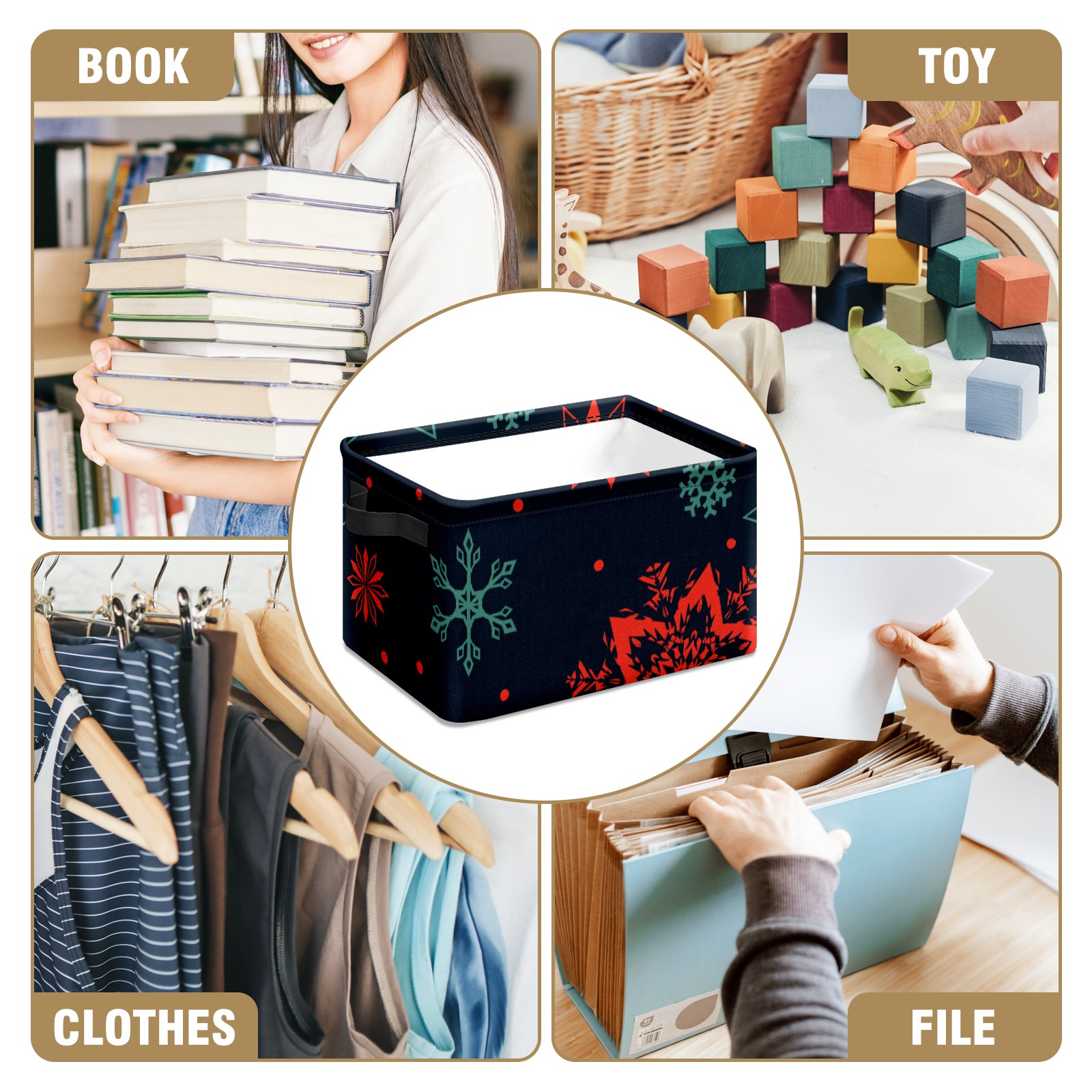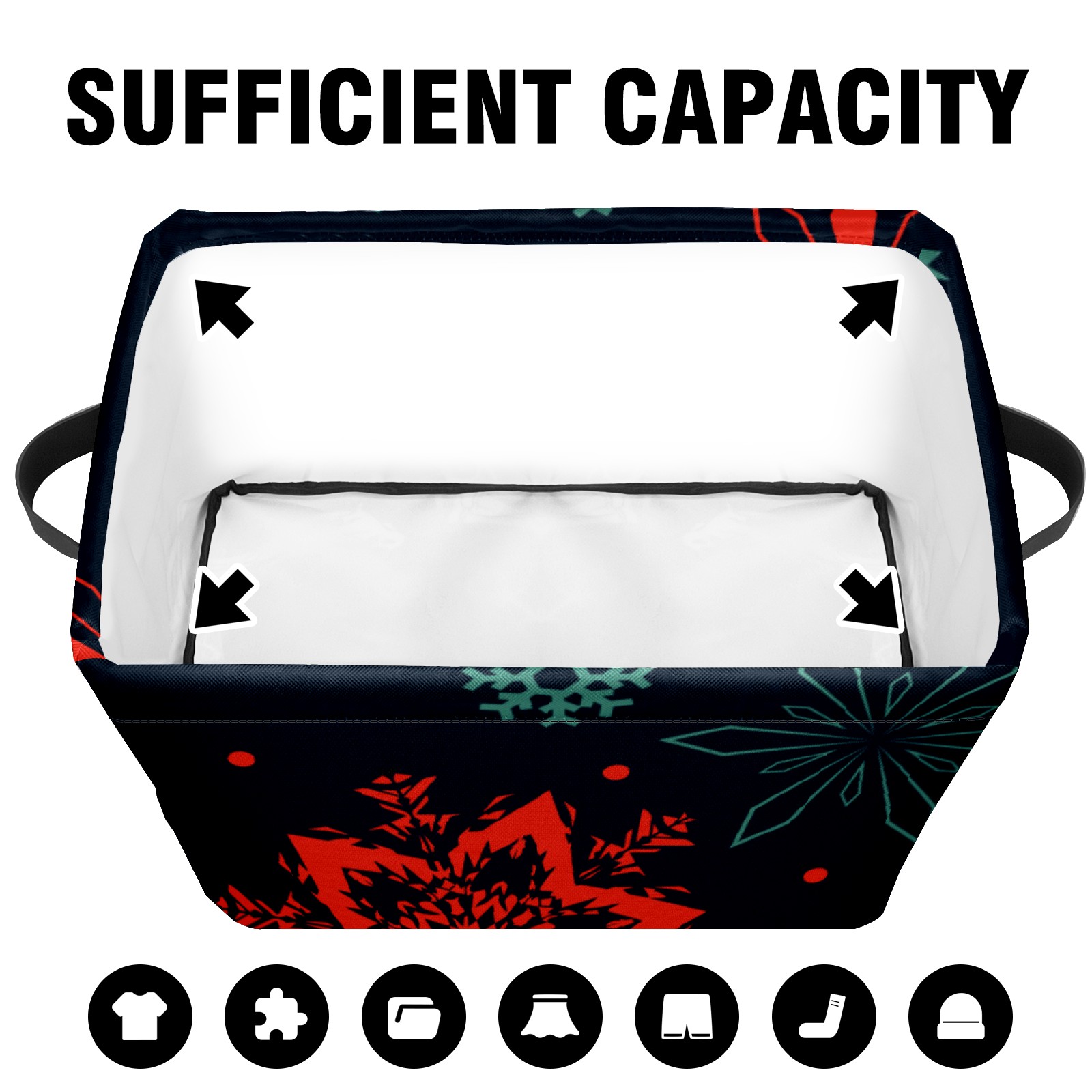Collapsible 600D Oxford Storage Basket with Christmas Art Snowflake - Metal Frame 10"x14"x8" Reinforced Handles, Multi-Purpose Organizer