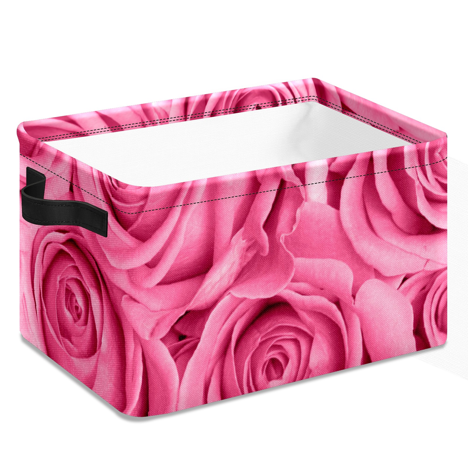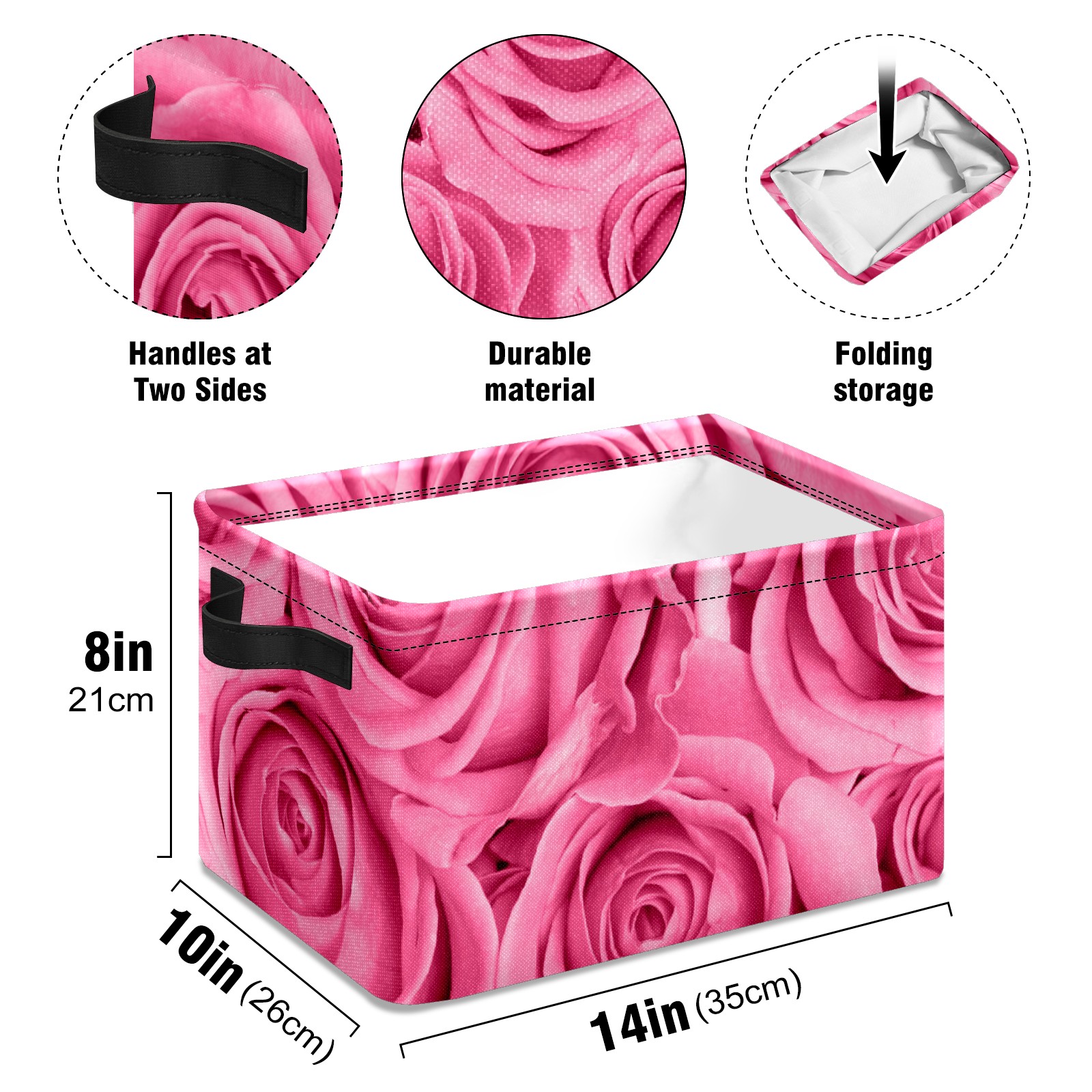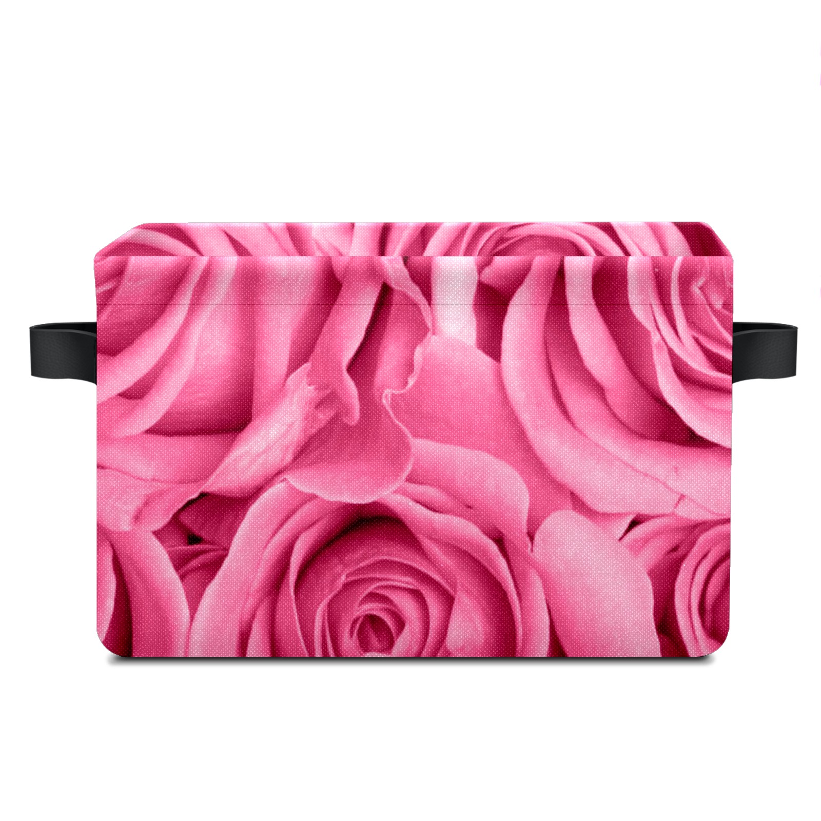 Collapsible 600D Oxford Storage Basket with Pink Rose Love - Metal Frame 10"x14"x8" Reinforced Handles, Multi-Purpose Organizer