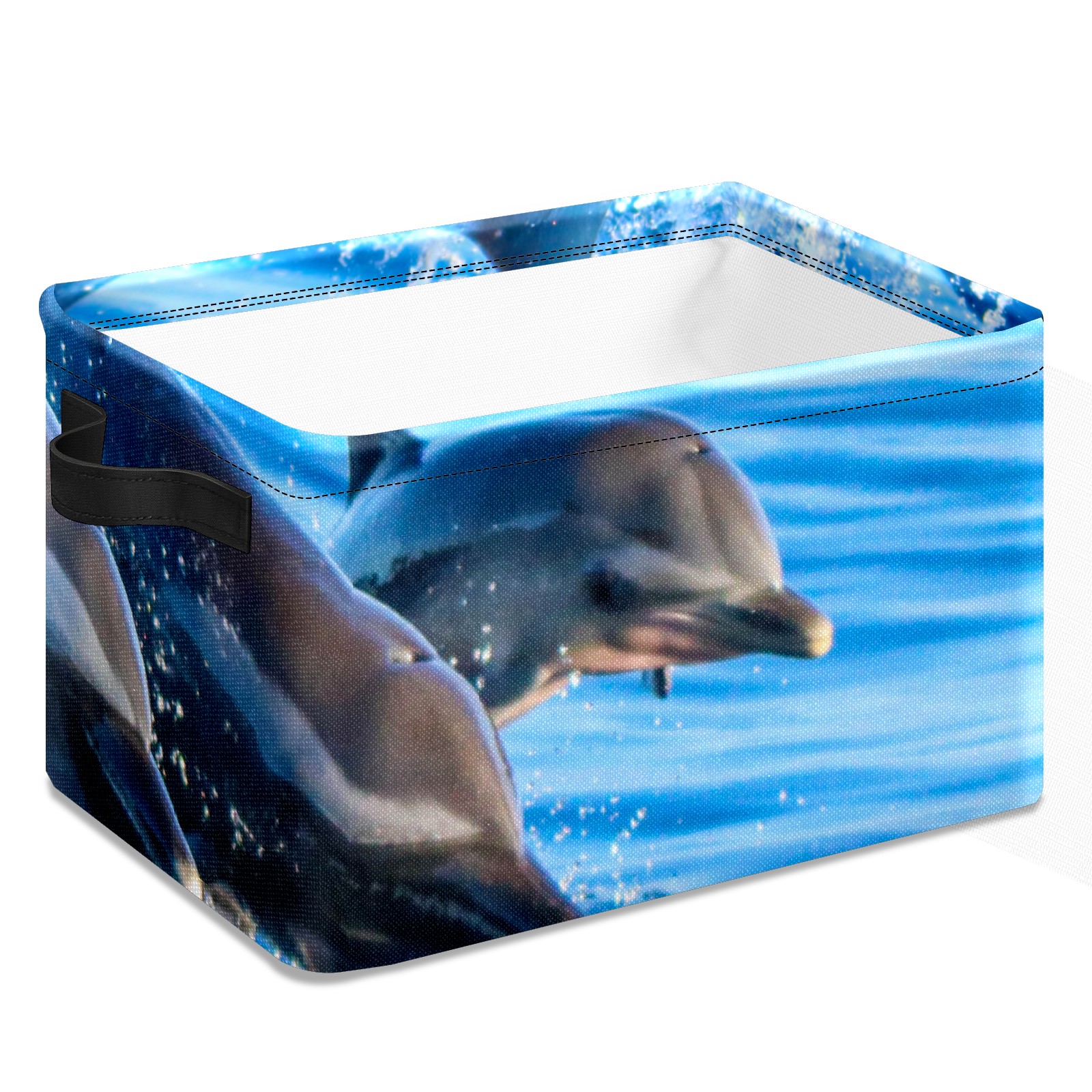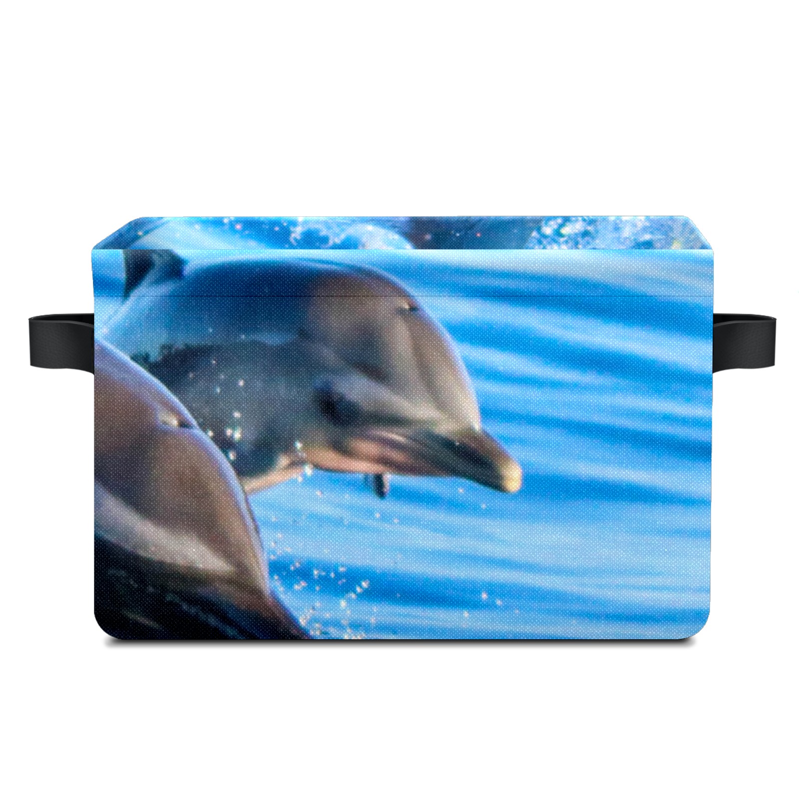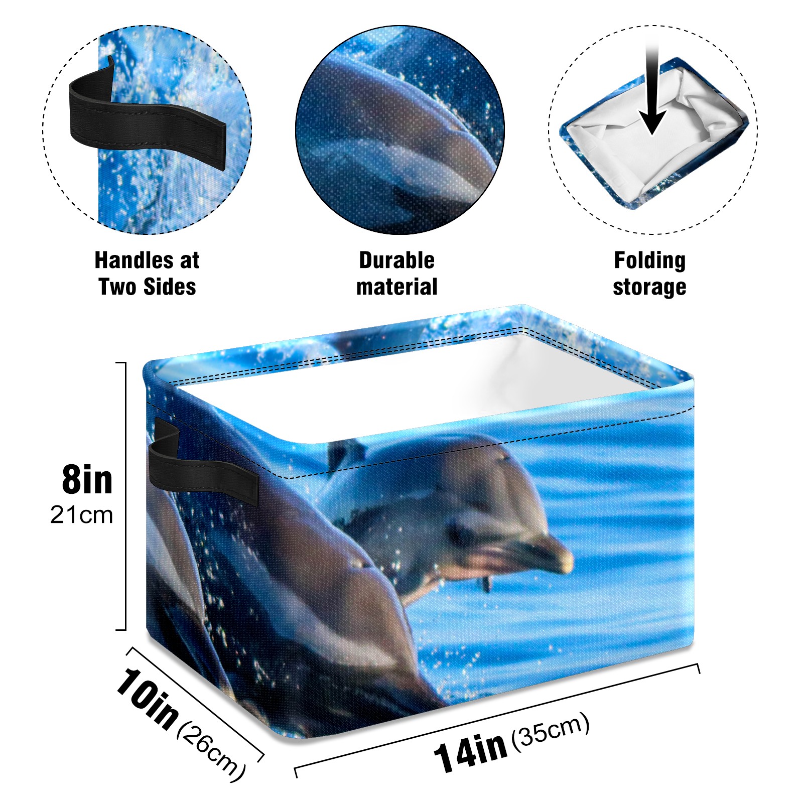 Collapsible 600D Oxford Storage Basket with Lovely Dolphin Swimming - Metal Frame 10"x14"x8" Reinforced Handles, Multi-Purpose Organizer