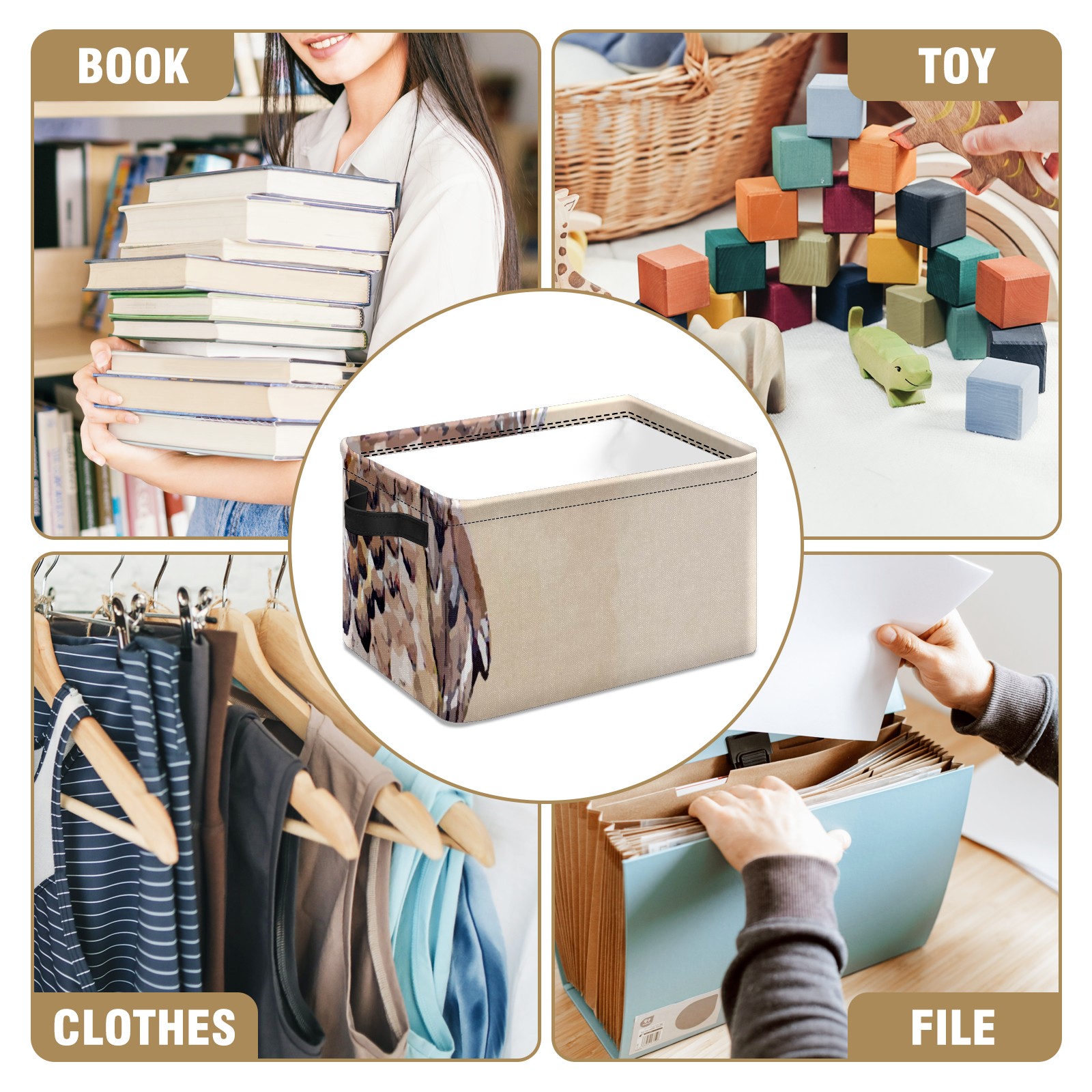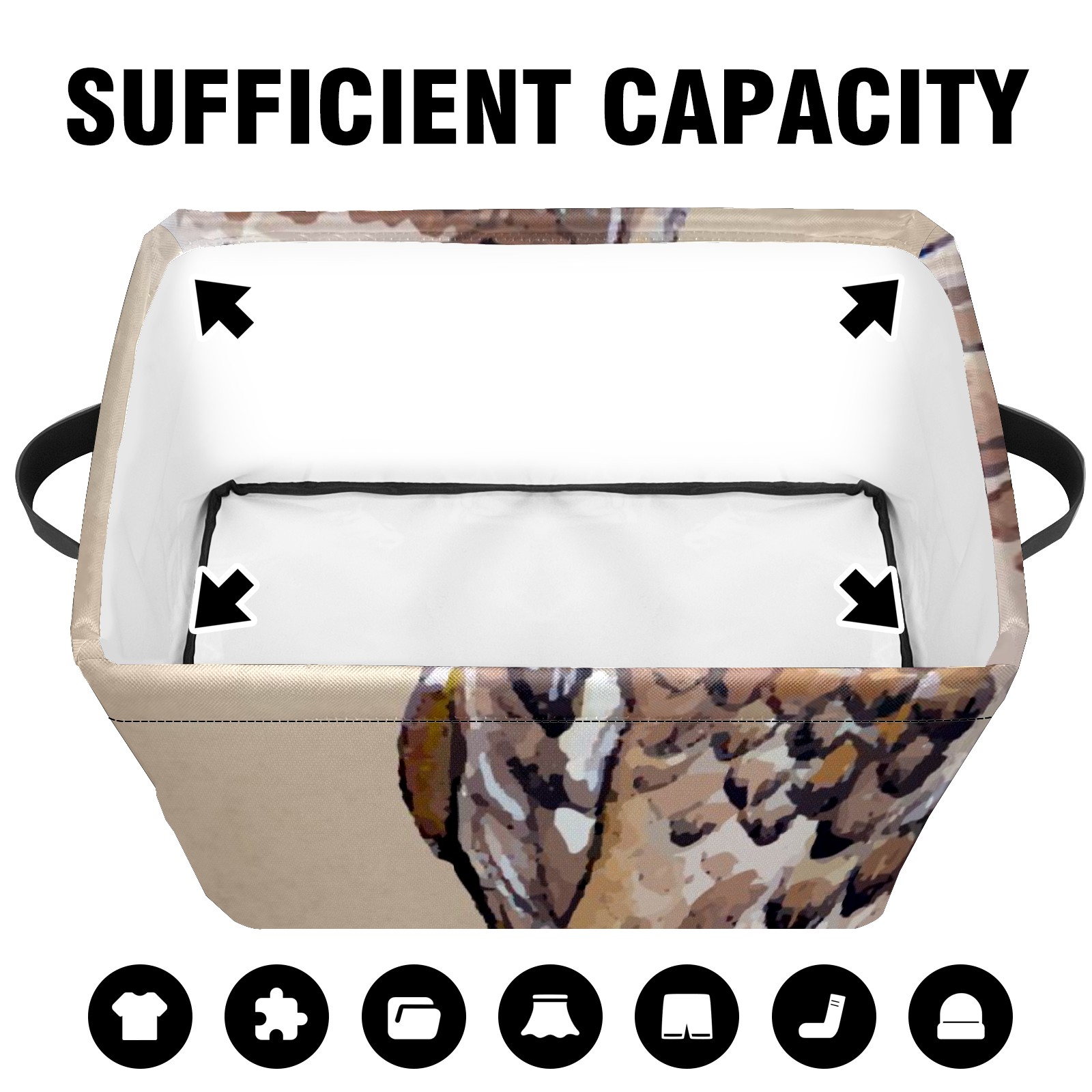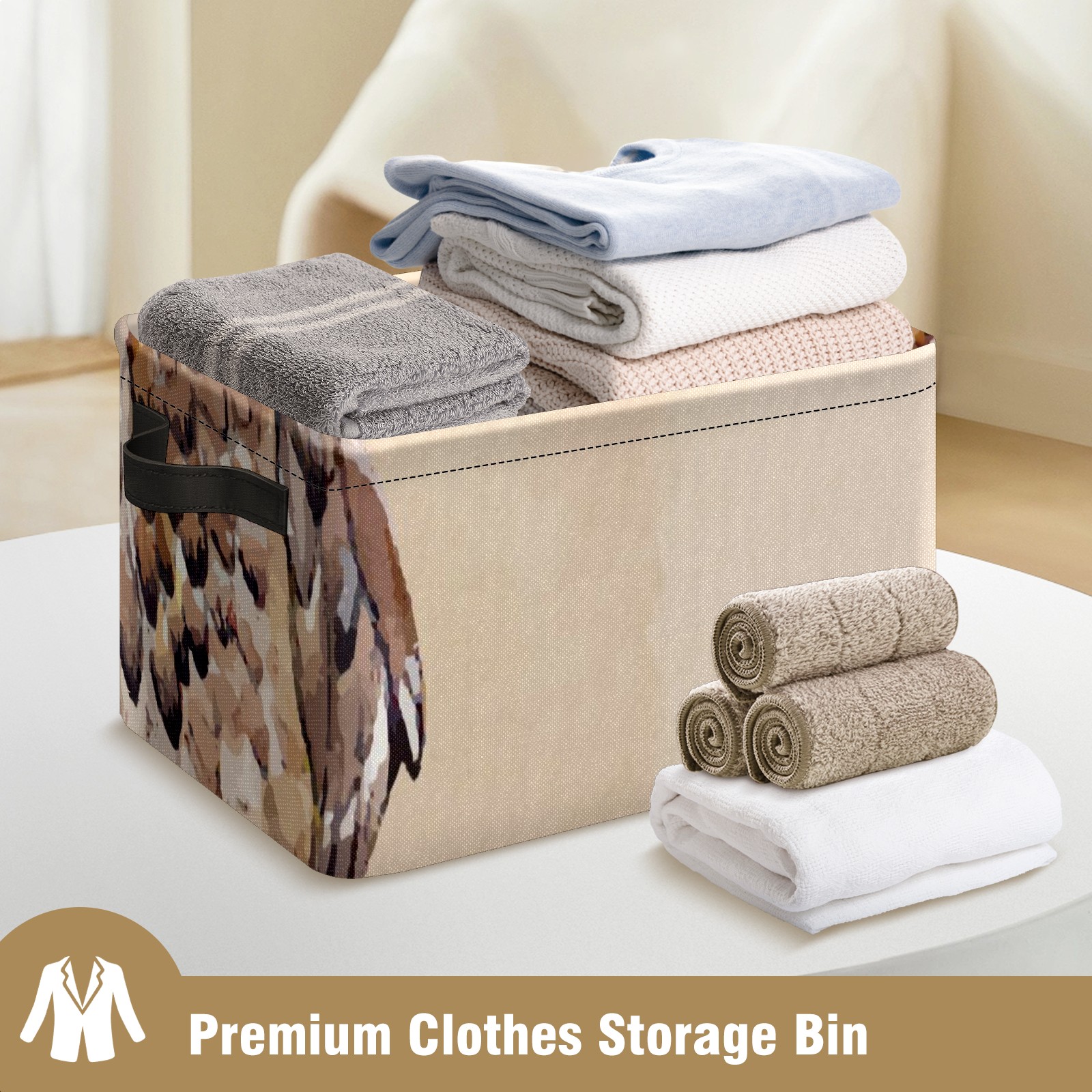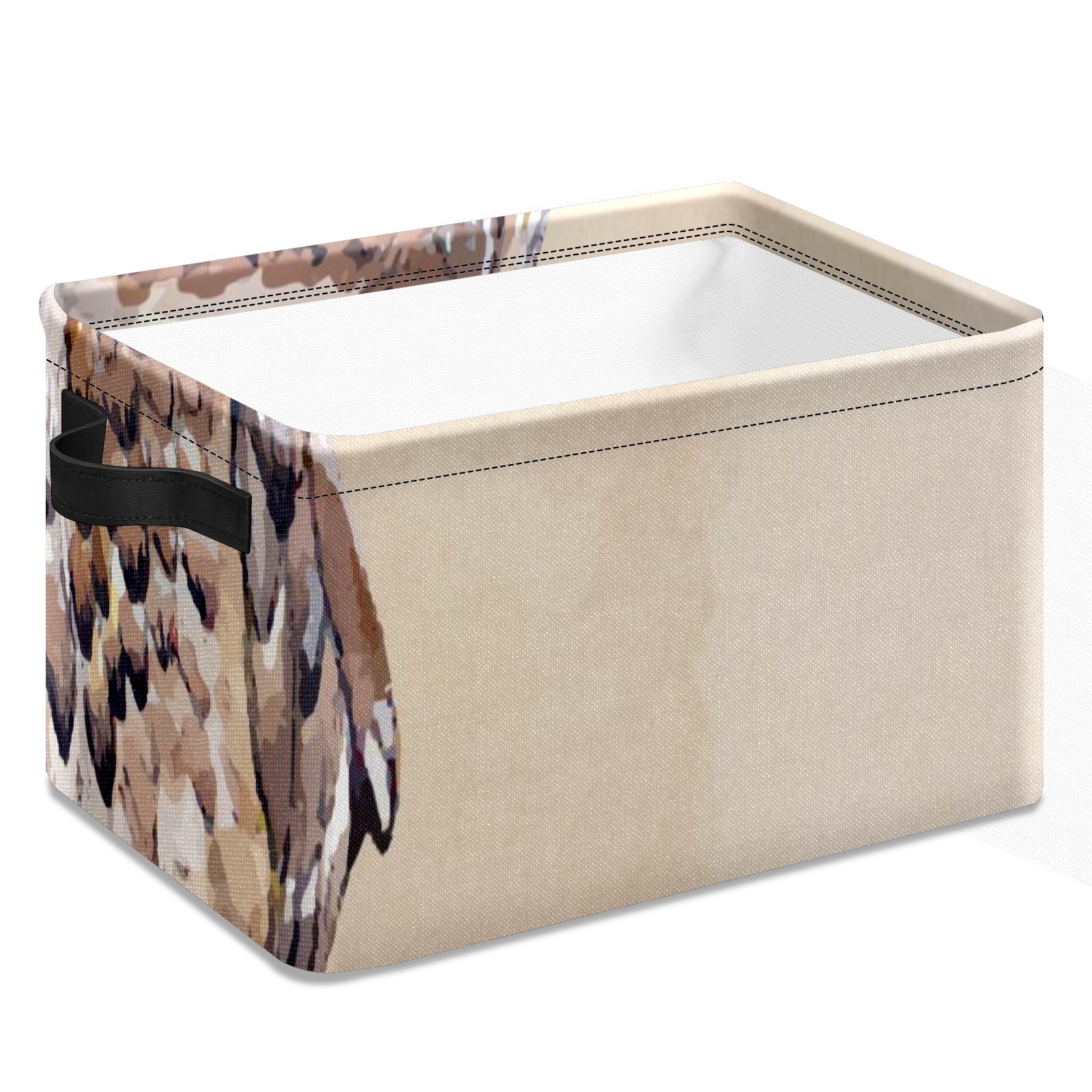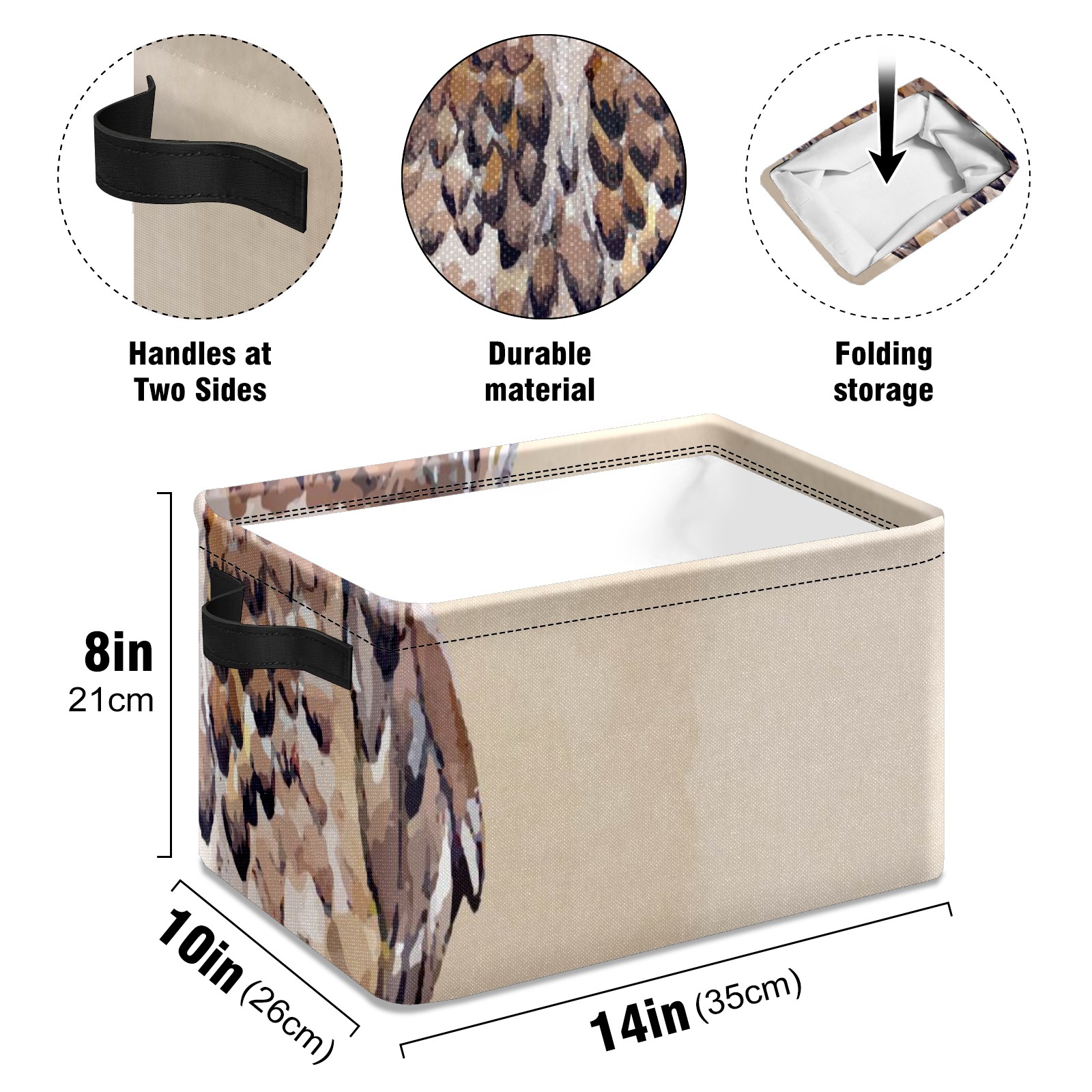 Collapsible 600D Oxford Storage Basket with Beautiful-hand-drawn-owl-01 - Metal Frame 10"x14"x8" Reinforced Handles, Multi-Purpose Organizer