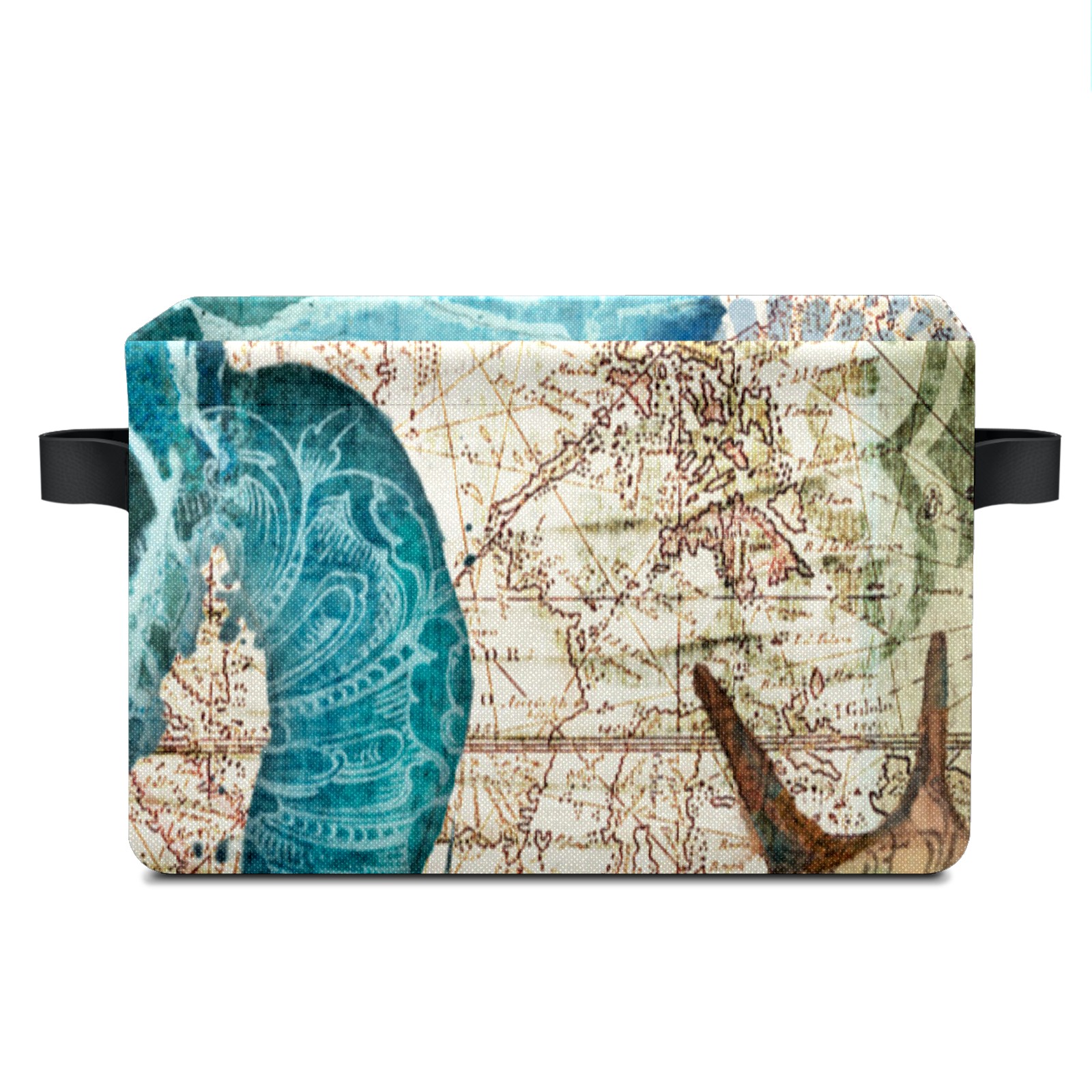 Collapsible 600D Oxford Storage Basket with Cartoon Cute Green Sea Turtle - Metal Frame 10"x14"x8" Reinforced Handles, Multi-Purpose Organizer