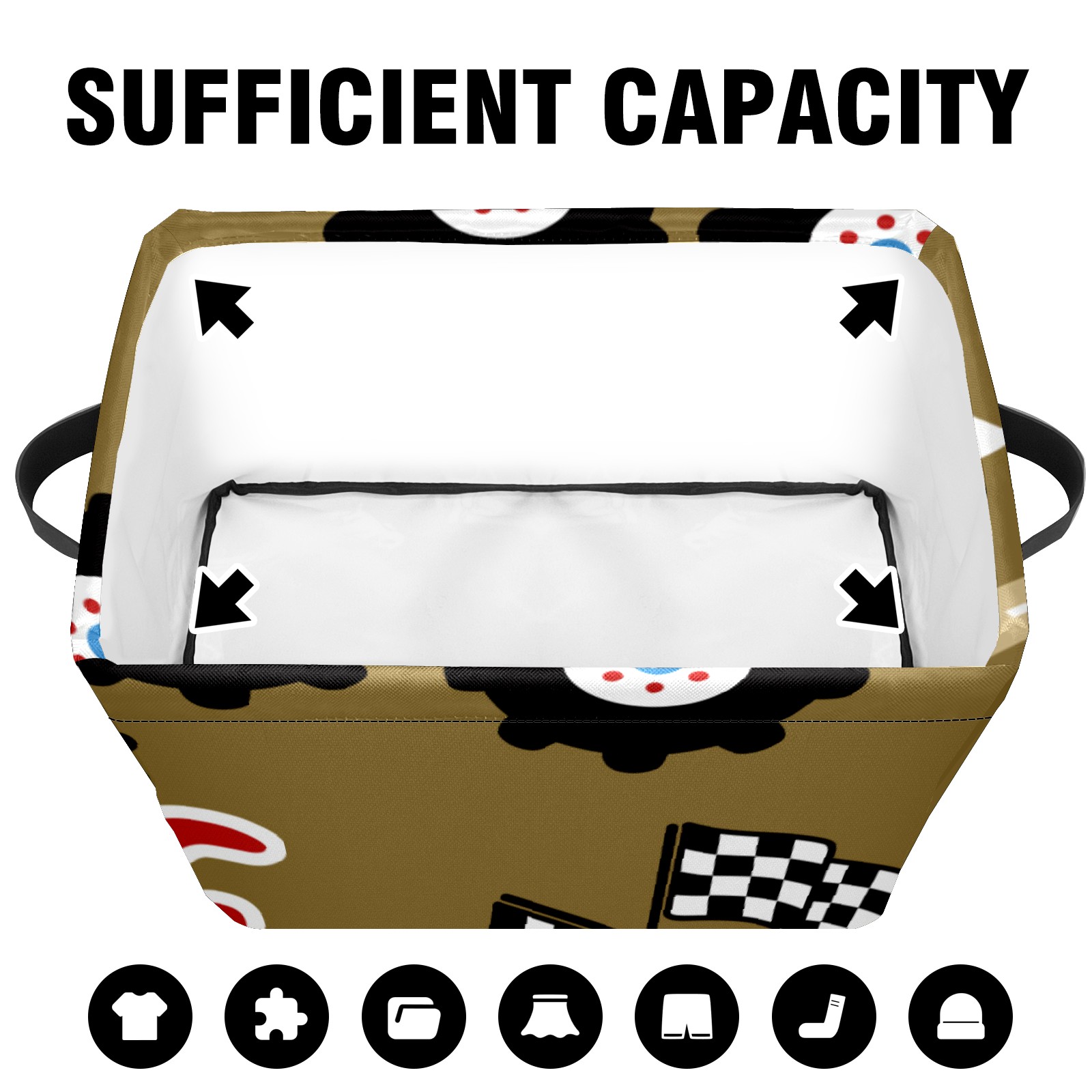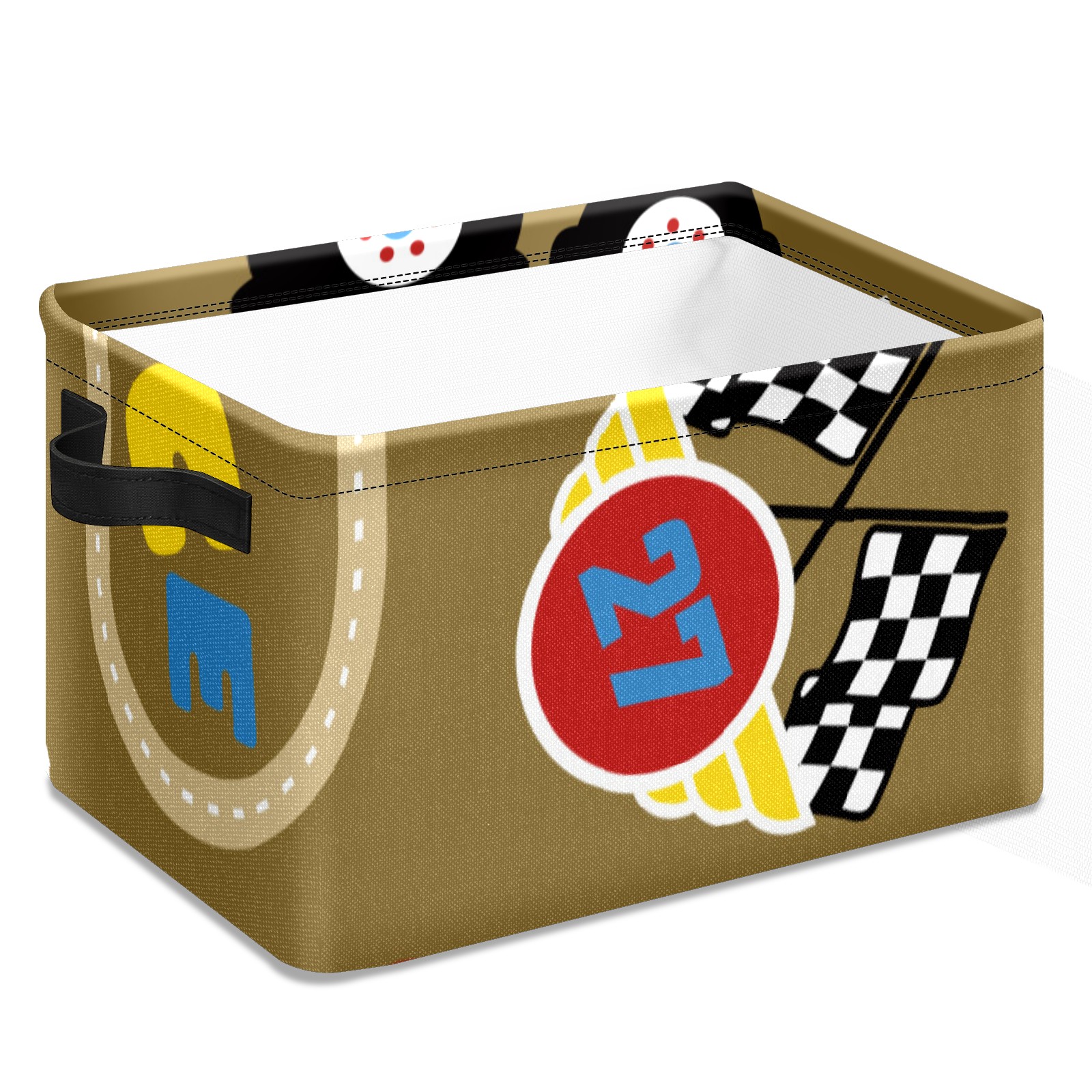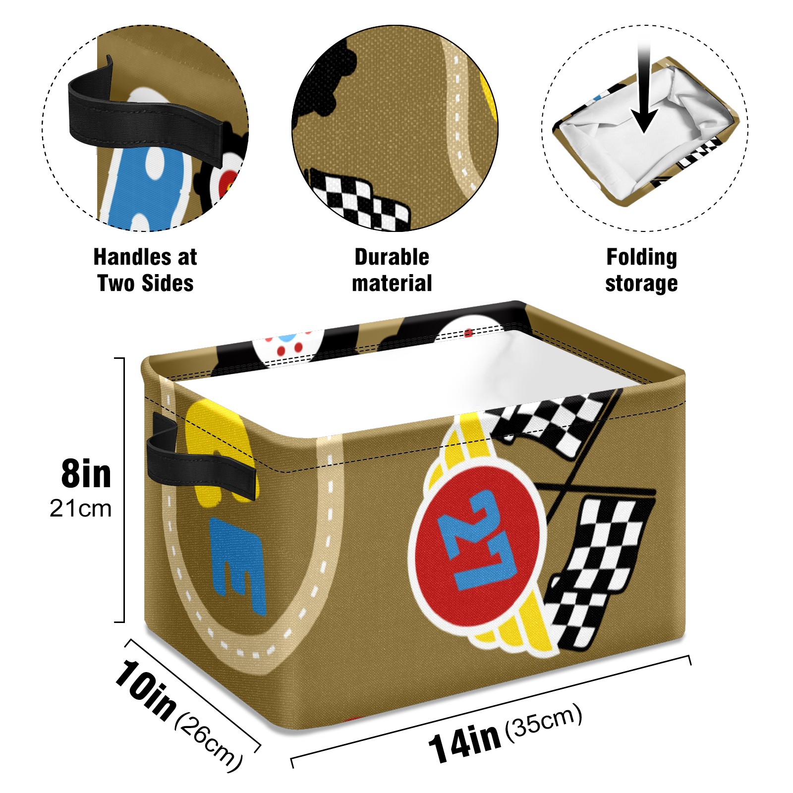 Collapsible 600D Oxford Storage Basket with Vintage Retro Cartoon Monster Trucks Pattern - Metal Frame 10"x14"x8" Reinforced Handles, Multi-Purpose Organizer